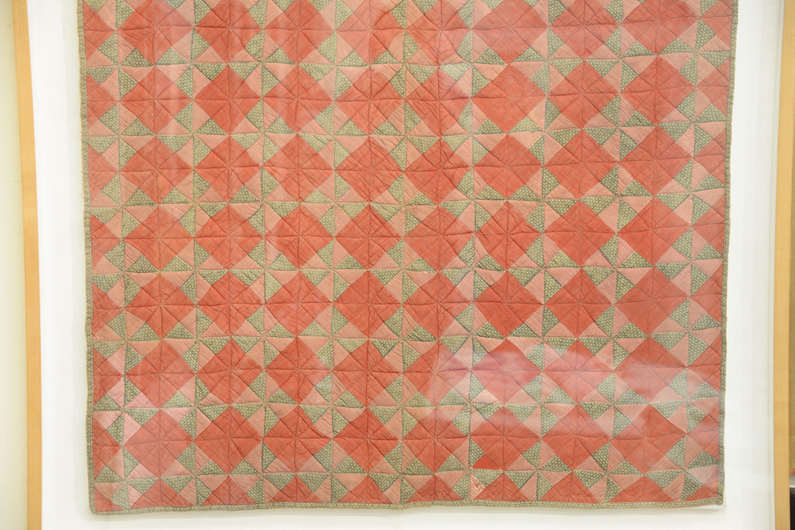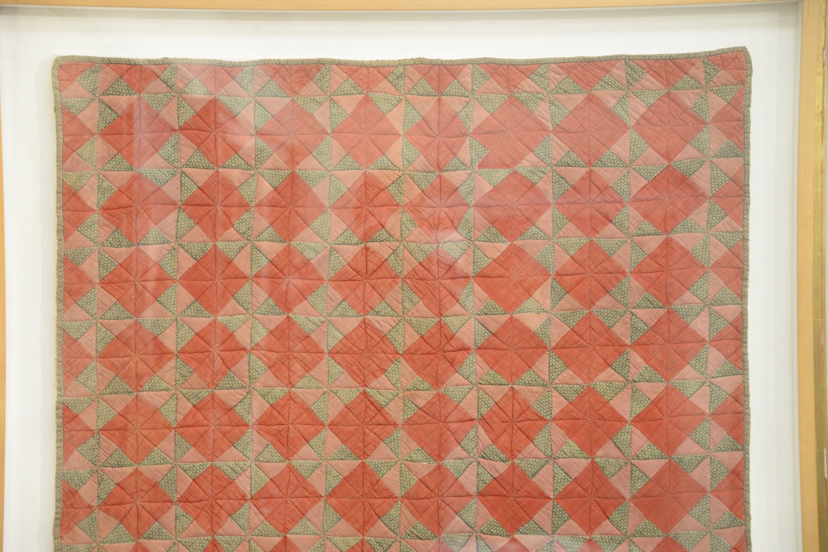 Lot 313: American Baby Crib Cotton Quilt, red diamond square pattern, frame size 36 x 36 x 1 1/2 image size 32 x 33.
