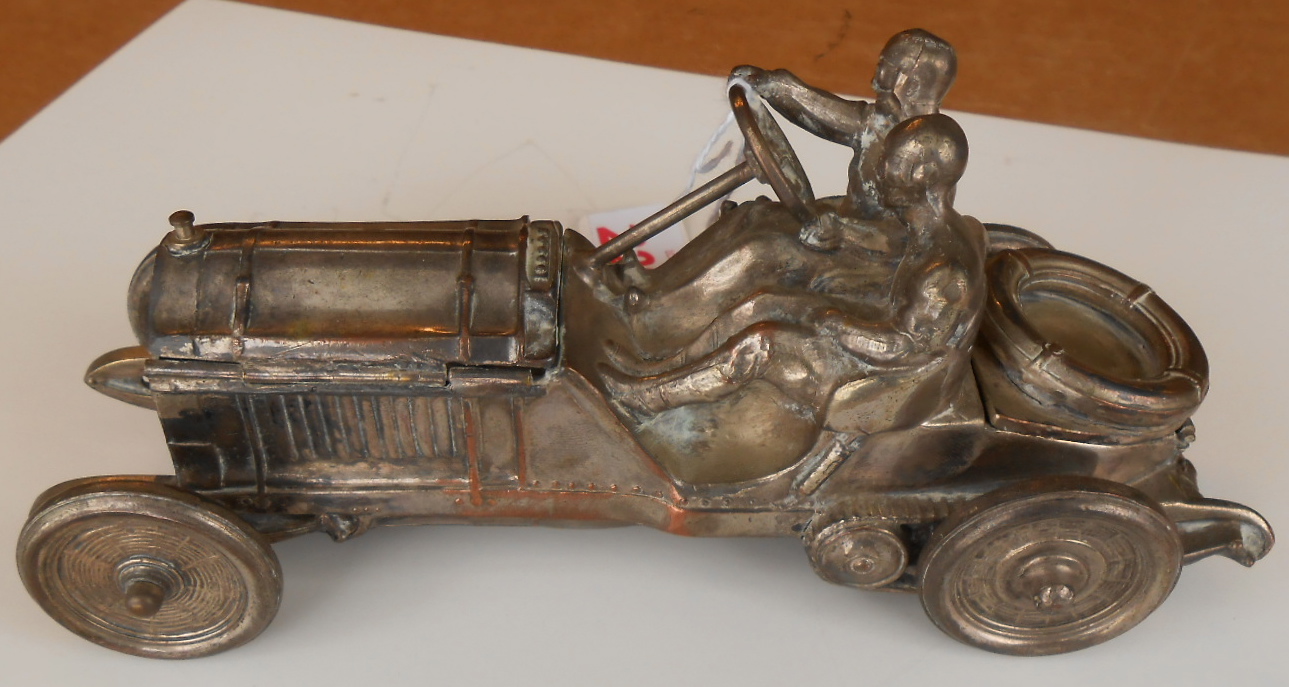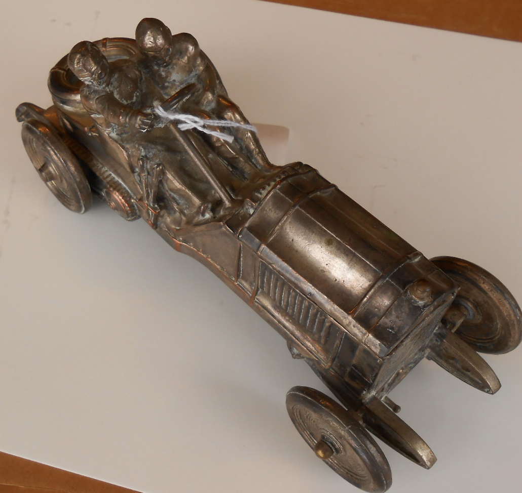 Ca 1908 Brasier desk sculpture, hood and rear open, cast bronze, 9 inches lg