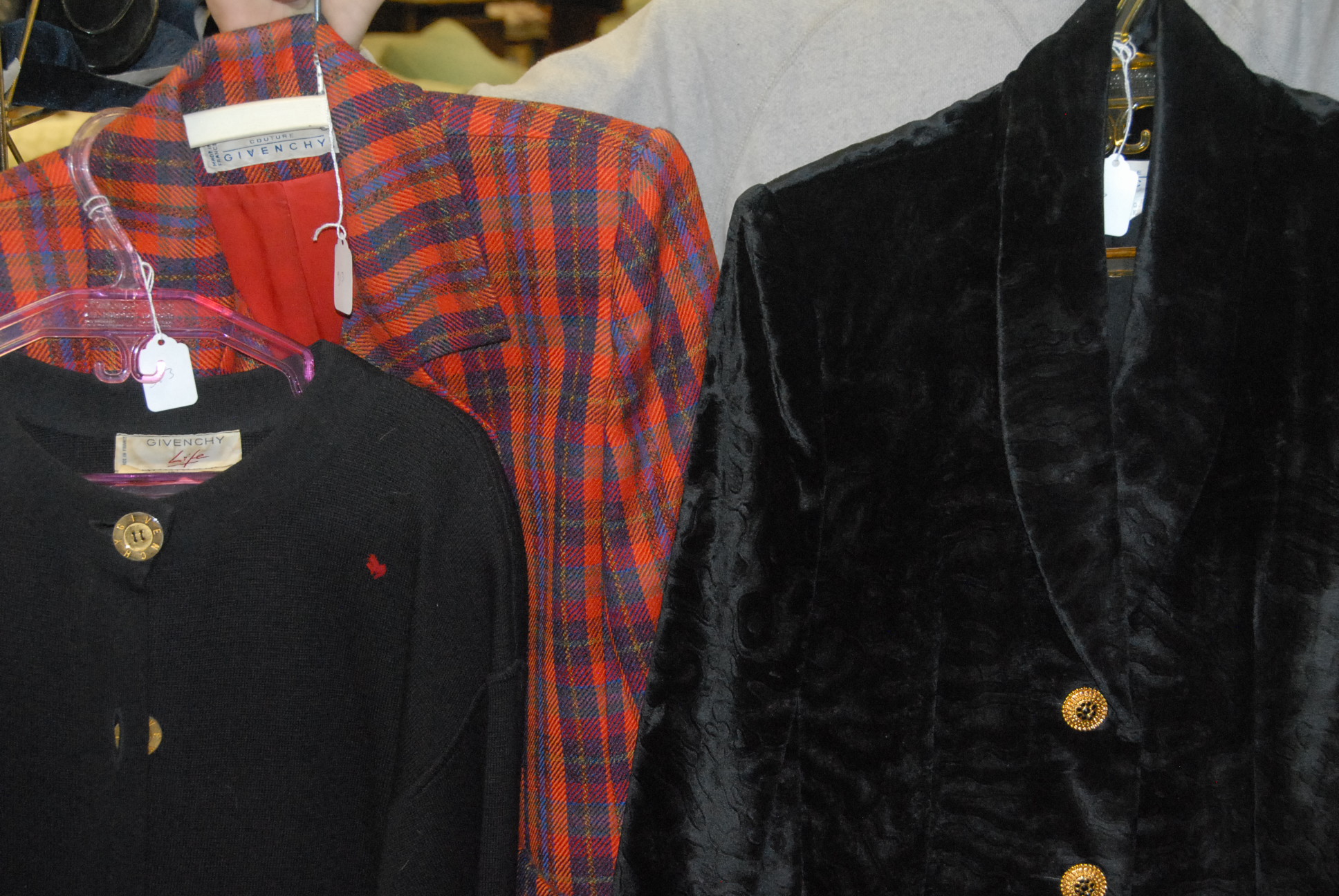 Lot 313: Five piece lot of Givenchy clothes to include dresses, jackets, and skirt.