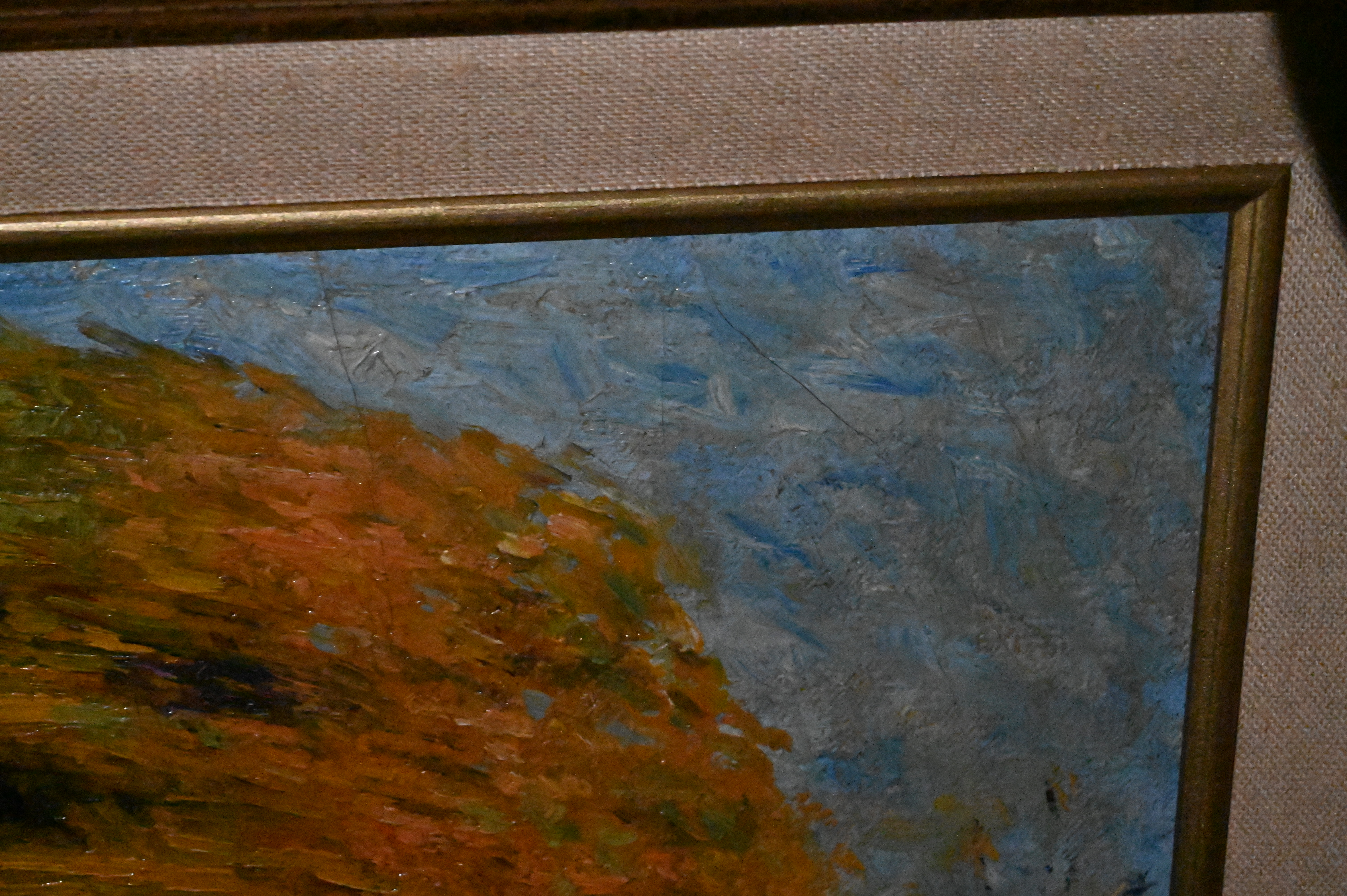 Presents well, craquelure concentrating in sky. Some possible inpainting to tree leaves.