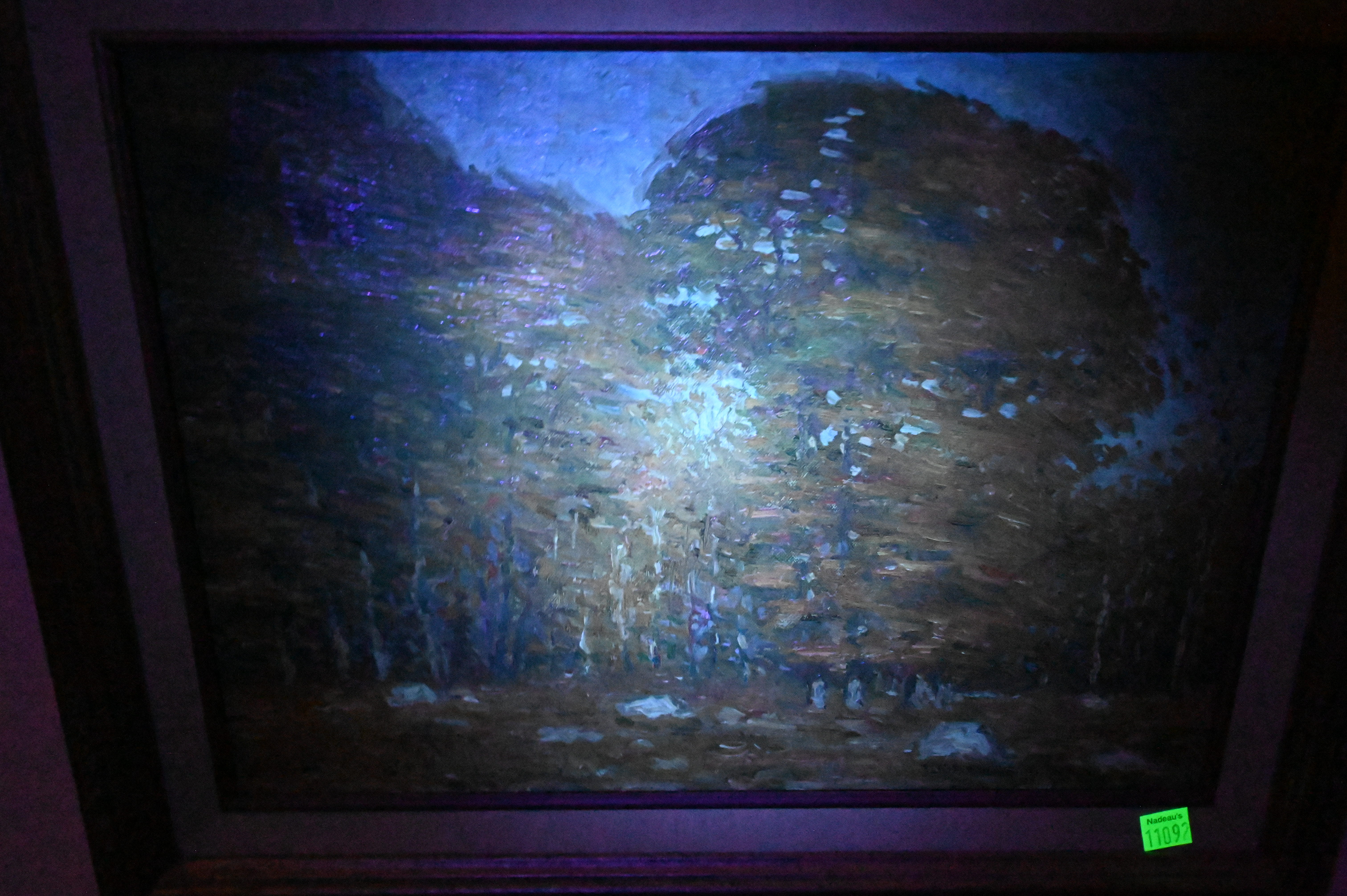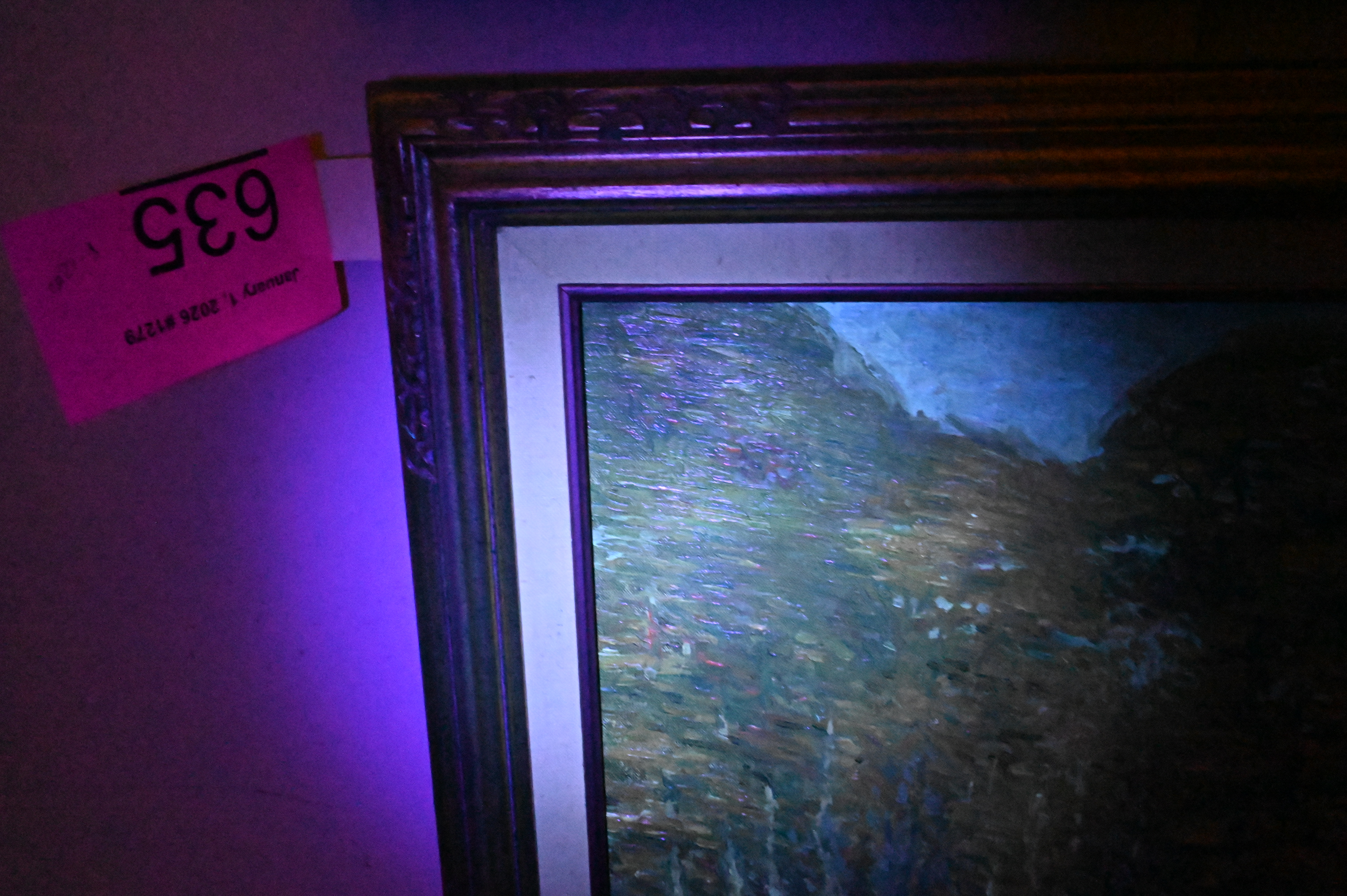 This report is provided as a courtesy and reflects our opinion only. Bidders should conduct their own due diligence. The absence of a report does not imply the lot is free of issues. Assessments are based on visual inspection; unless noted, items have not been examined under UV light, movements and electrical components have not been tested, and artworks are generally not removed from frames. We are not professional conservators, and this report is not a comprehensive condition evaluation. Images provided form part of the report and should be reviewed carefully. All sales are final. For in-person inspection, please call 860-246-2444 or email info@nadeausauction.com.
