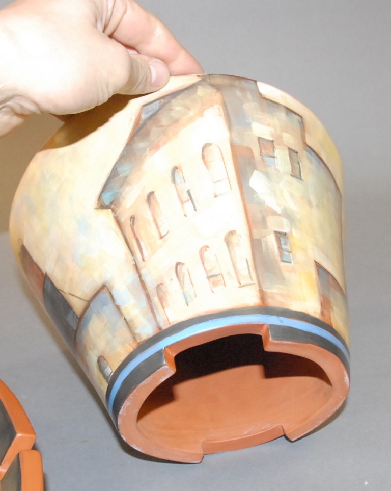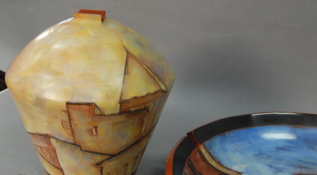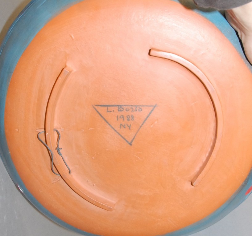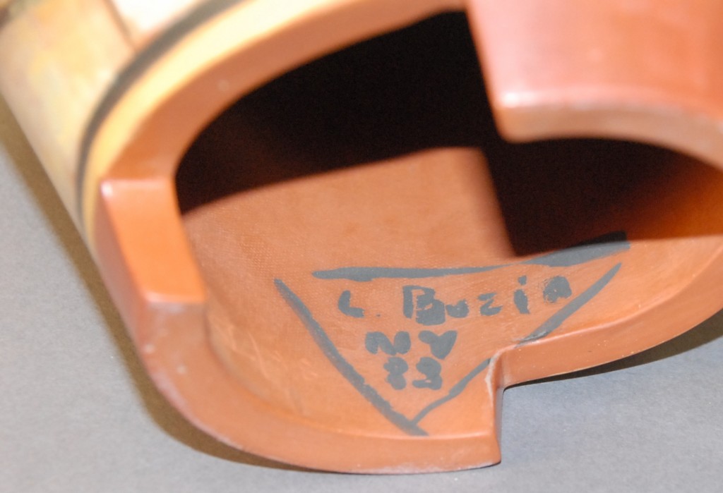 L. Buzio N.Y. three piece pottery lot to include a charger and two vases, circa 1988. Charger diameter 16in.