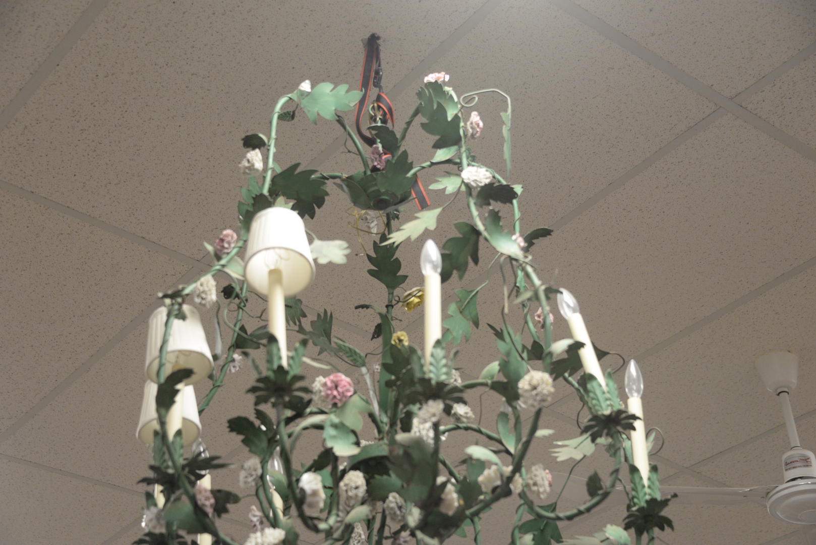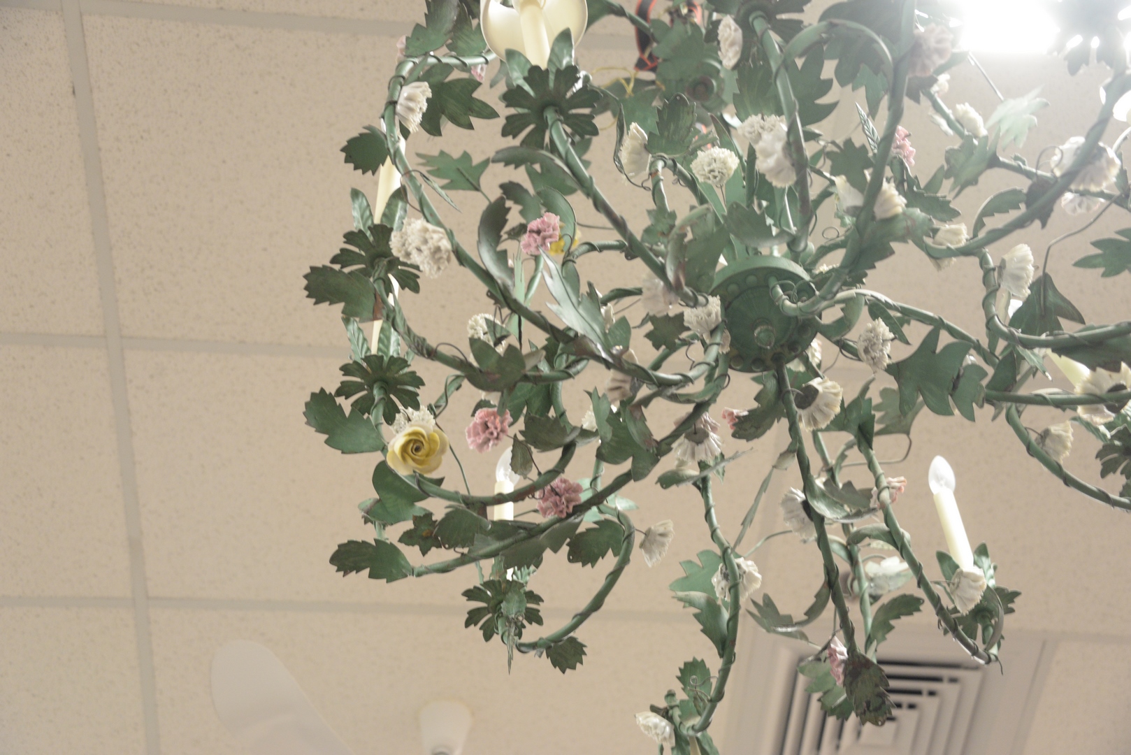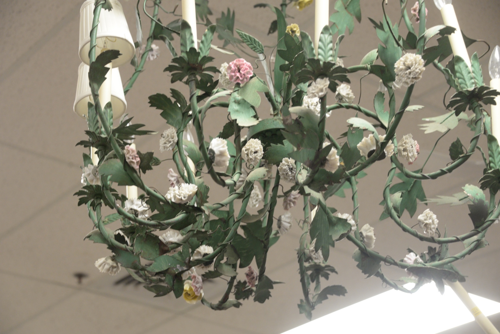 Lot 313: Louis XV Style Porcelain-Mounted Told Ten-Light Chandelier, height 4 feet, diameter 34 inches.