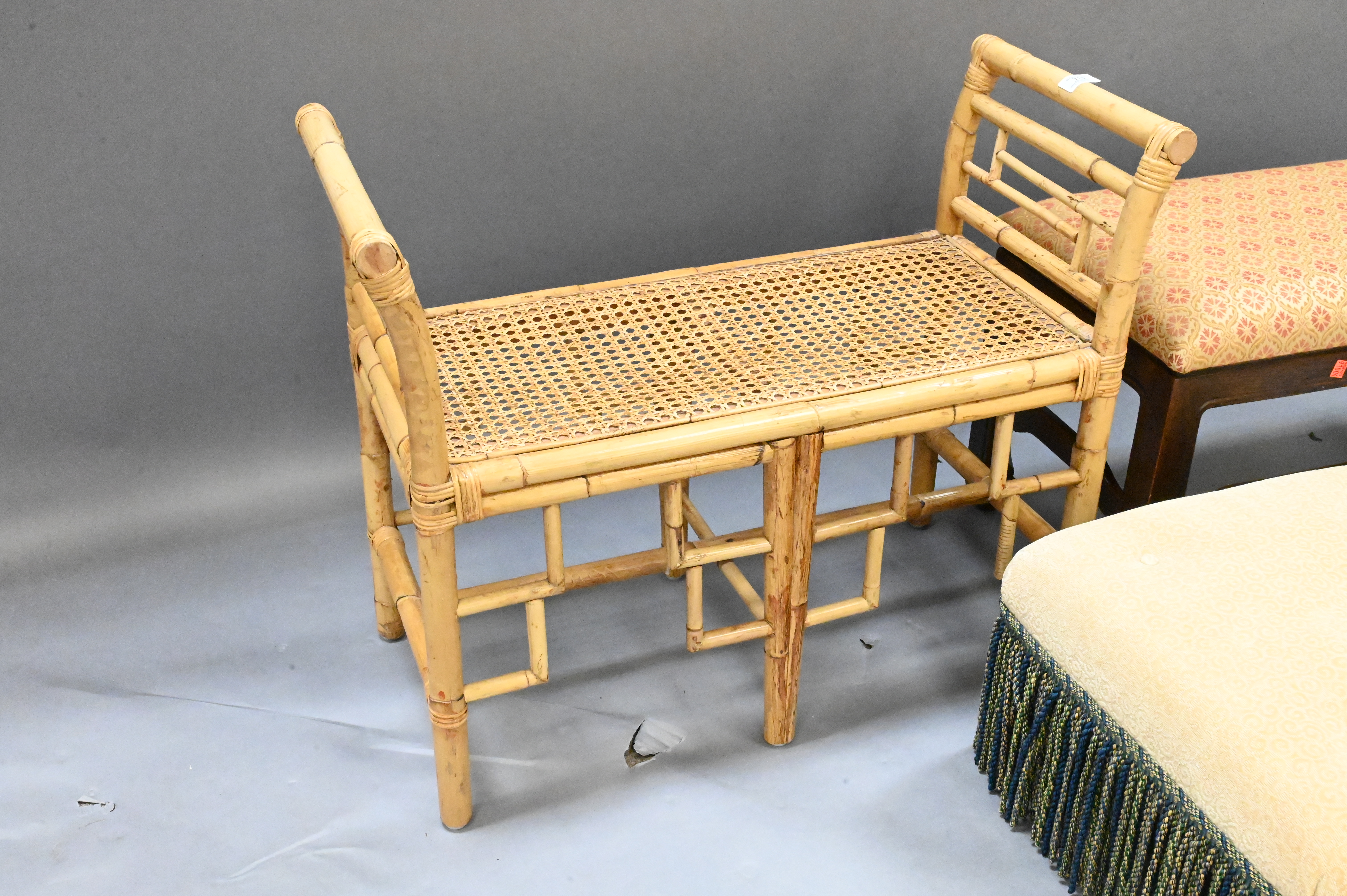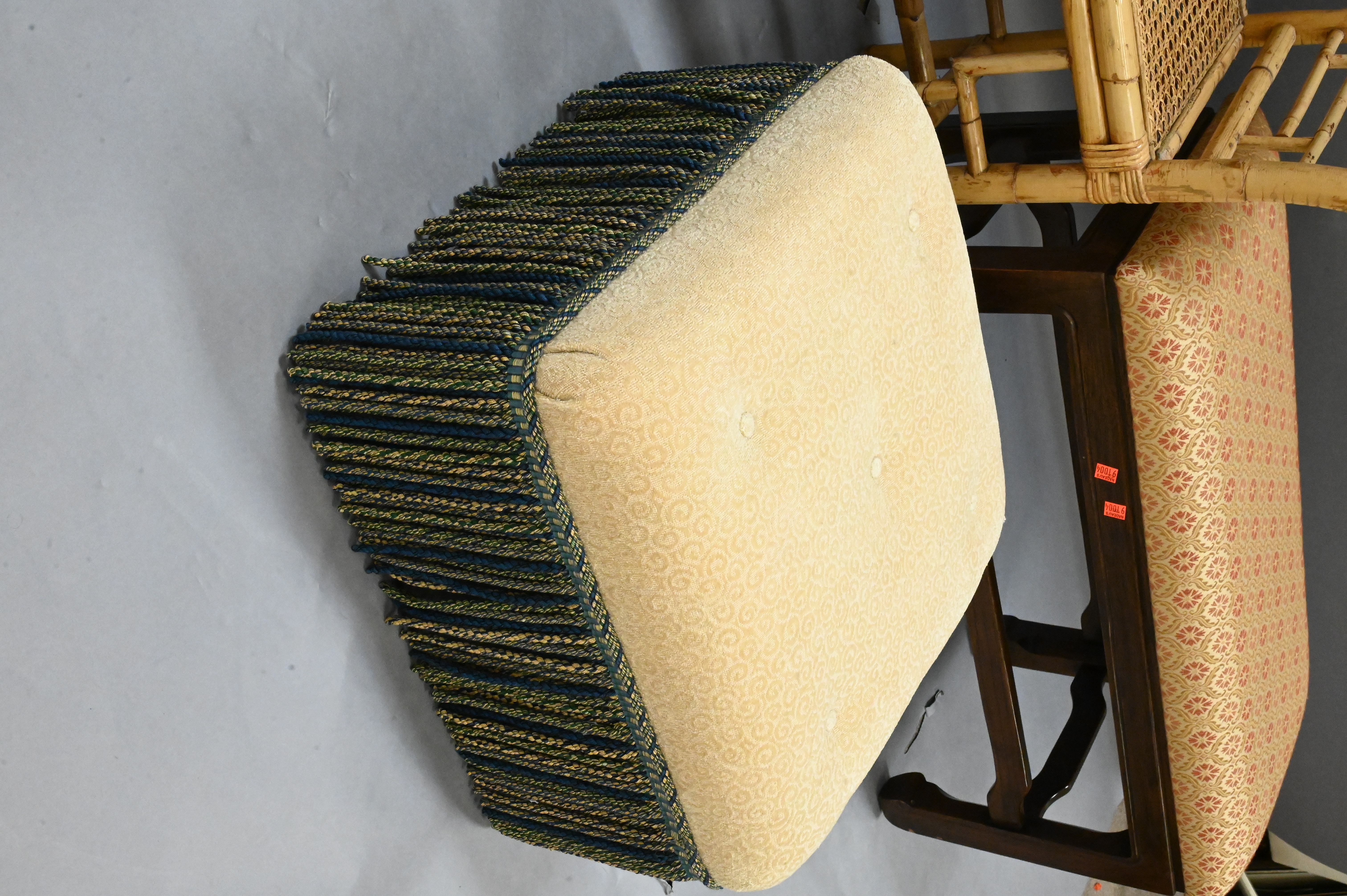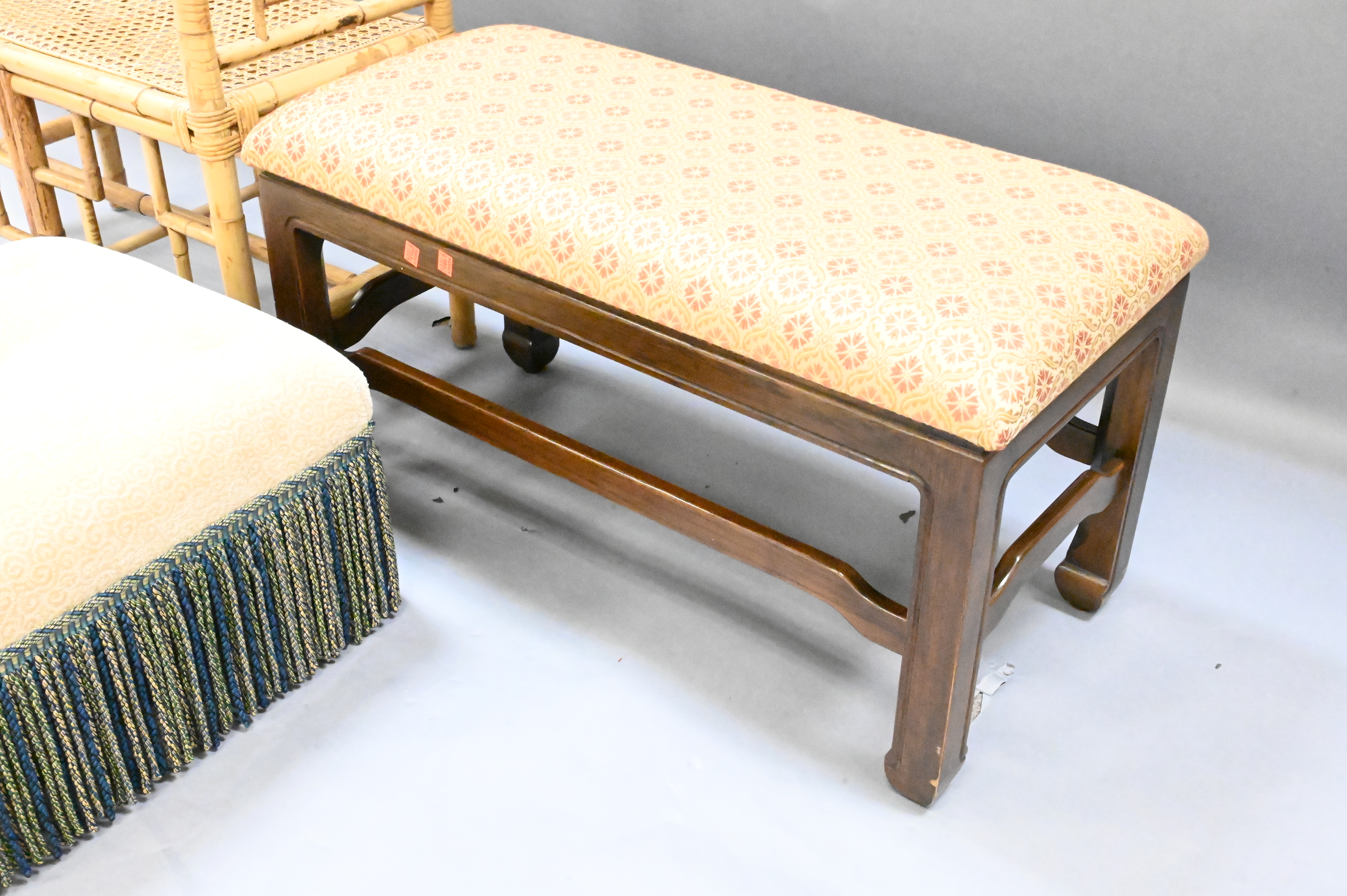 to include Chinese style bench, an ottoman with Brunschwig and Fils upholstery