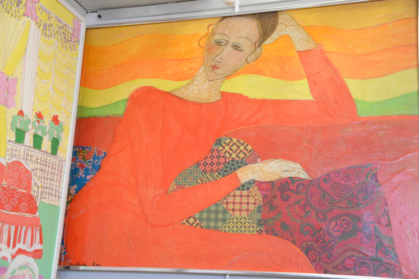 Lot 313: Two framed collages including Sylvia Fox modern collage of woman in a red dress signed lower left Sylvia Fox and Karl Mann b. 1930…