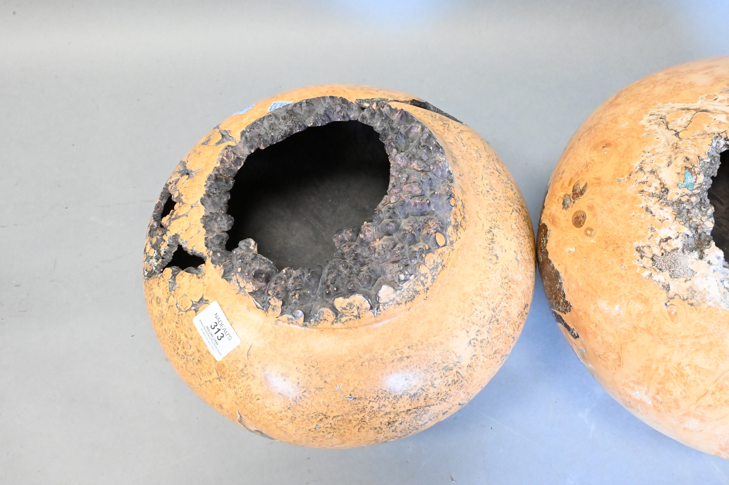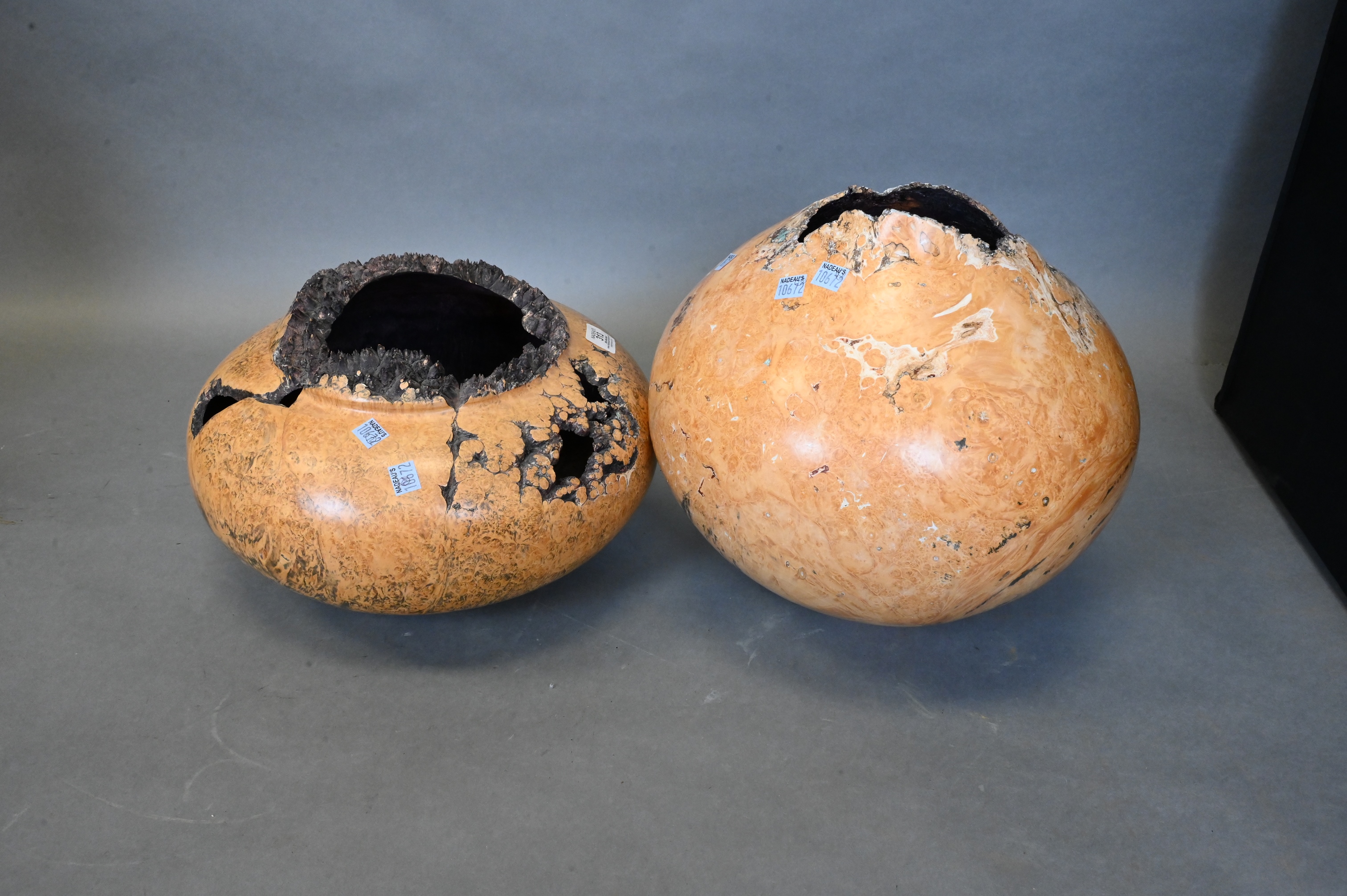 Lot 313: Two Marc Woe (American 1944-2002) Turned Box Elder Burl Wood Bowls