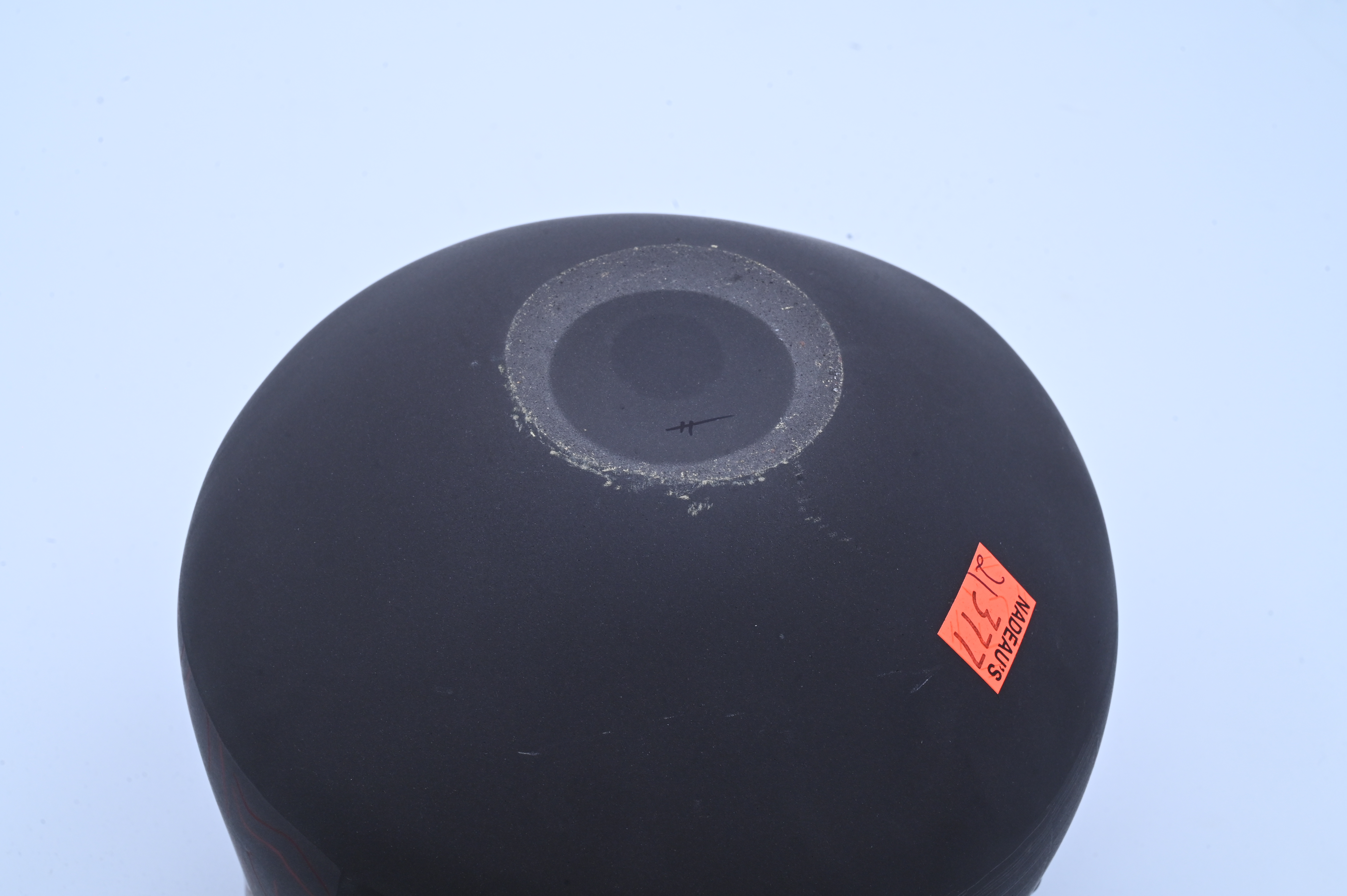 Nerikomi porcelain bowl signed on base “TH”, black porcelain plate having flower petals signed on base “TH”, blue gray porcelain plate having wave design signed on base “TH”