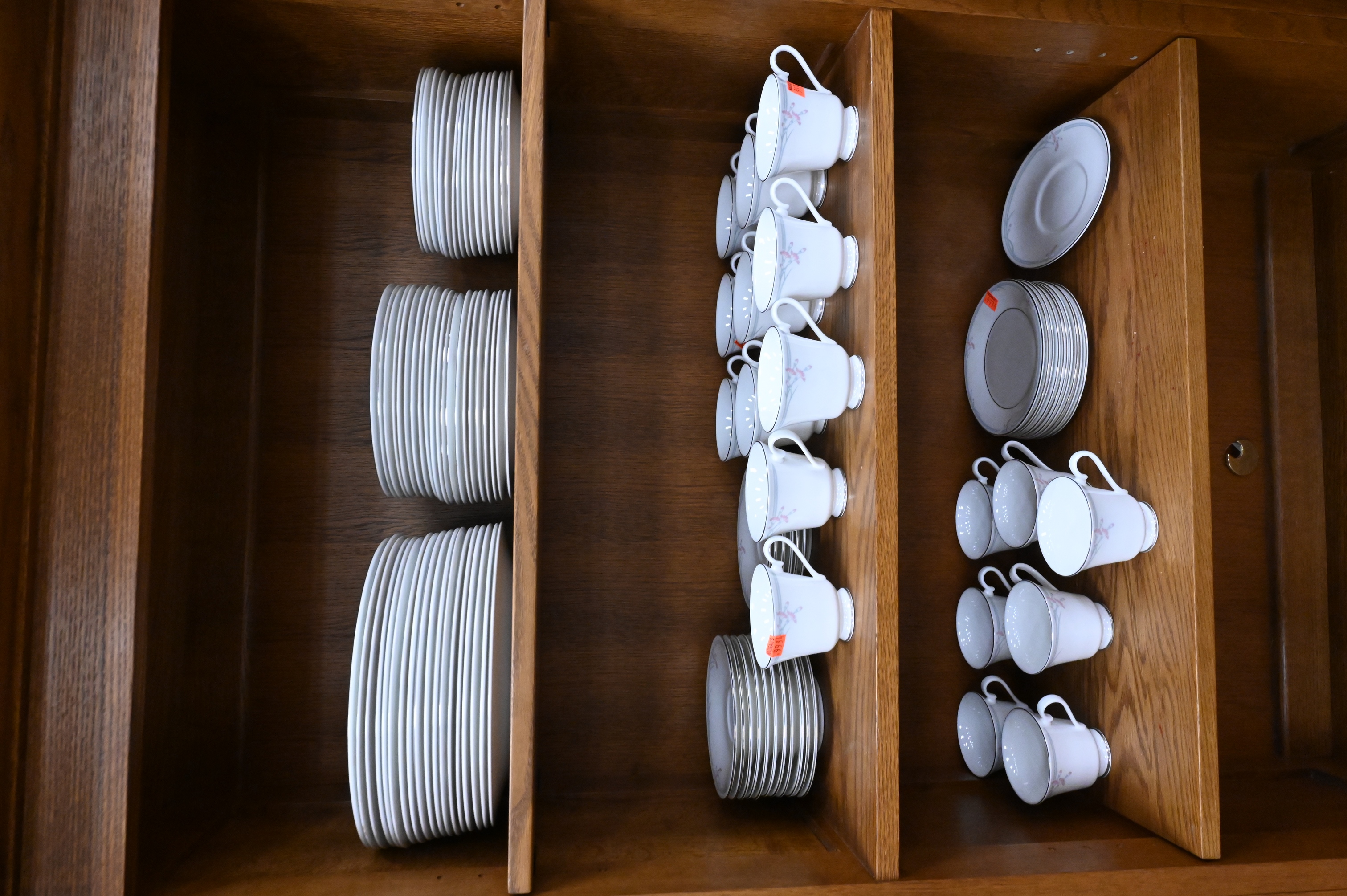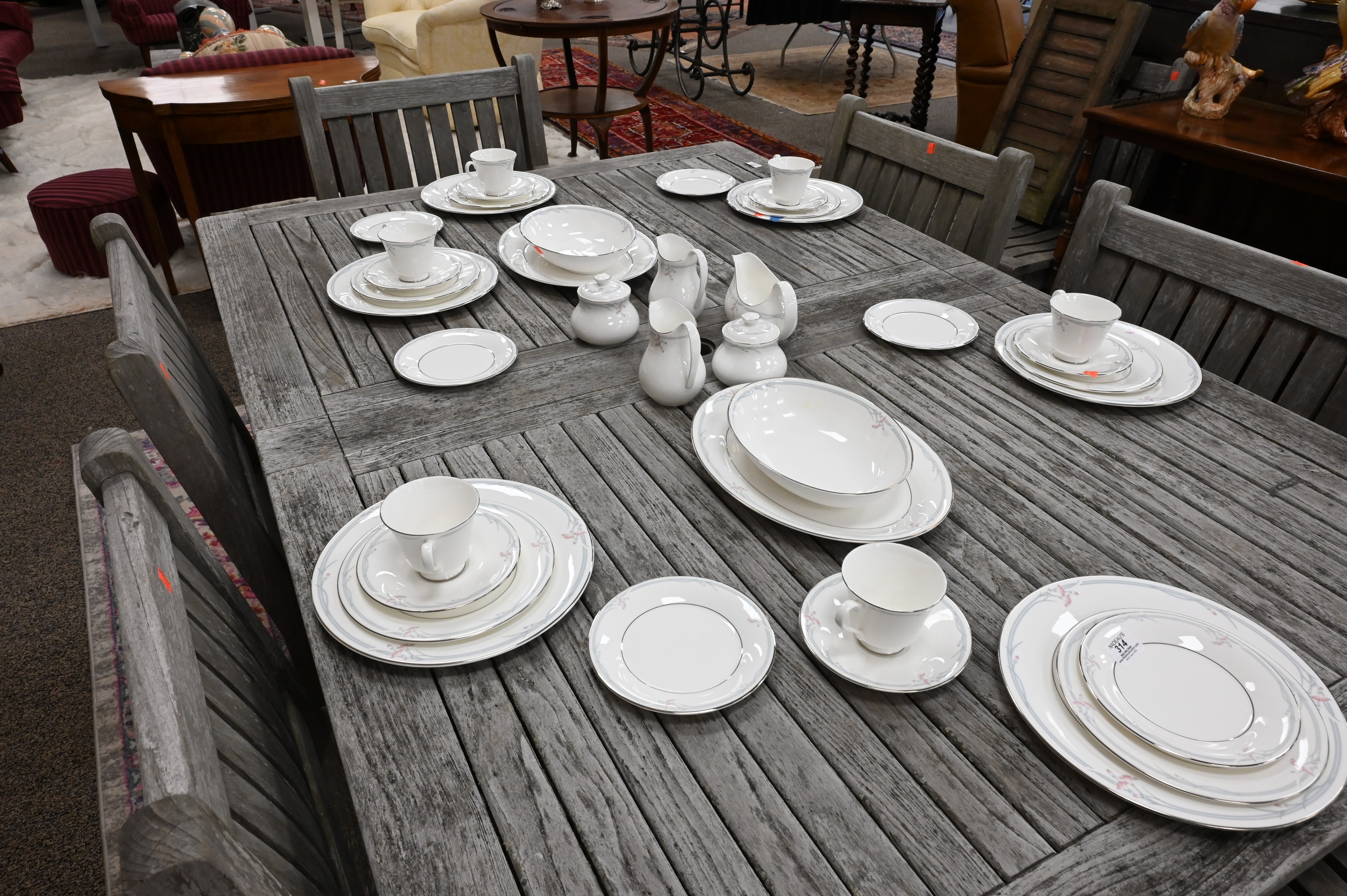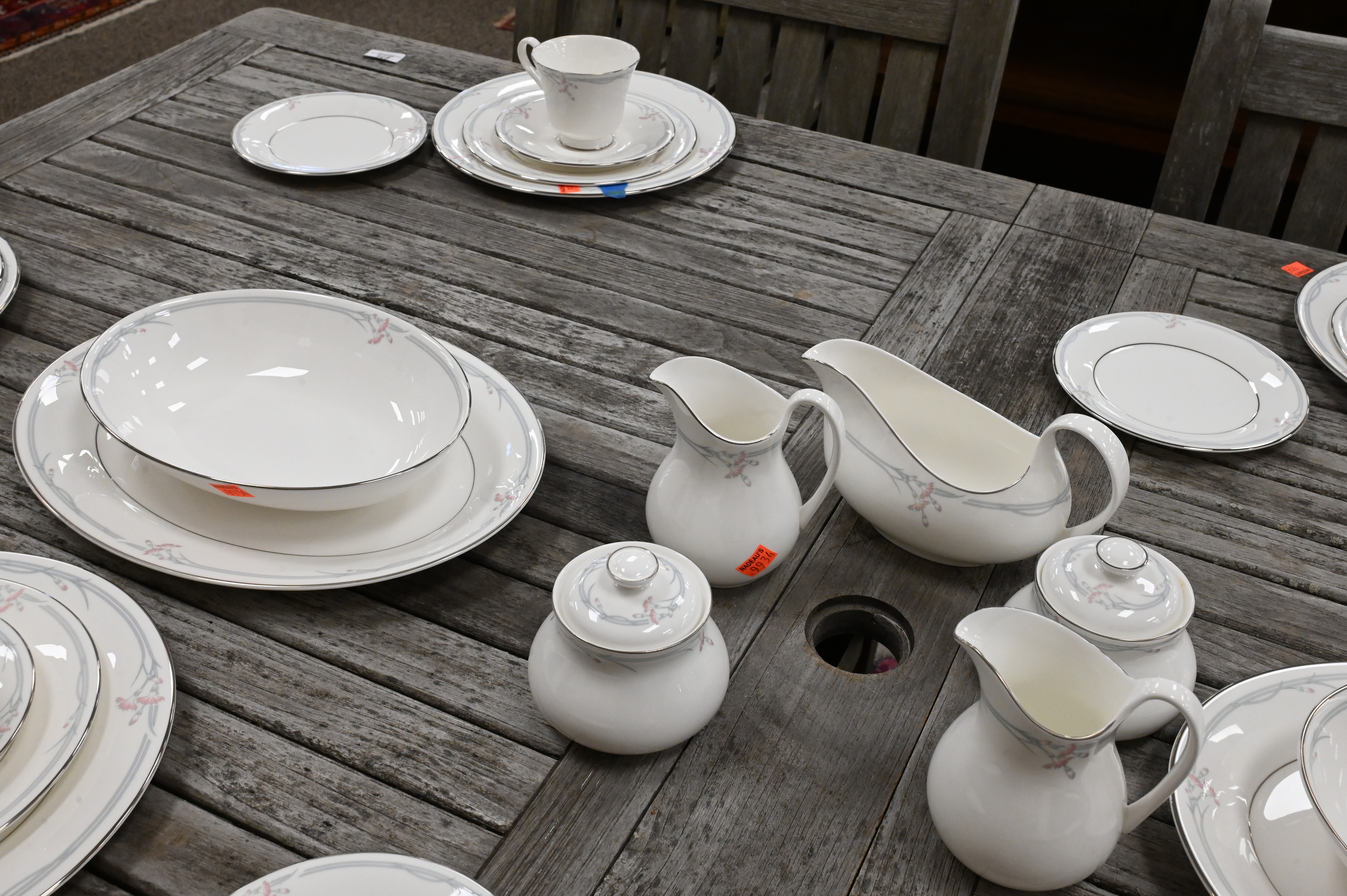 to include 24 dinner plates, 27 luncheon plates, 24 tea cups, 23 saucers, bread and butter plates, and one serving piece