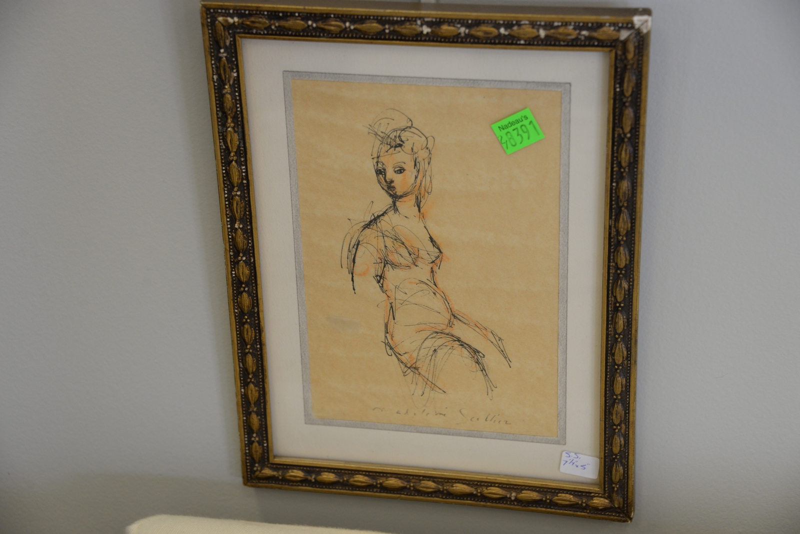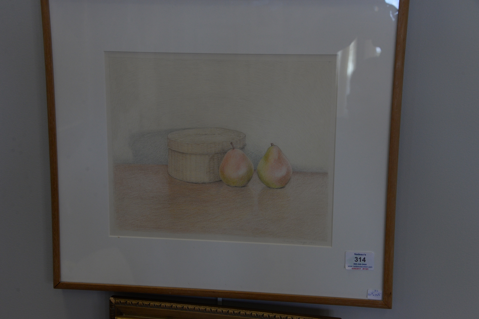 Four framed pieces including Daisy Craddock oil pastel on paper Study for Afternoon Silver Lake 15 x 16 1/2, Trester enamel copper girl at beach, Diane Mayo colored pencil still life, and Madeleine Sellier pen and ink sketch 7 x 5