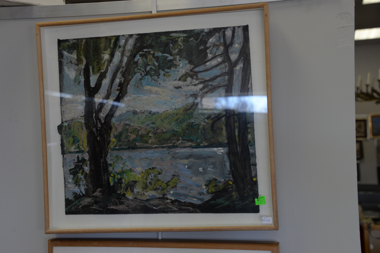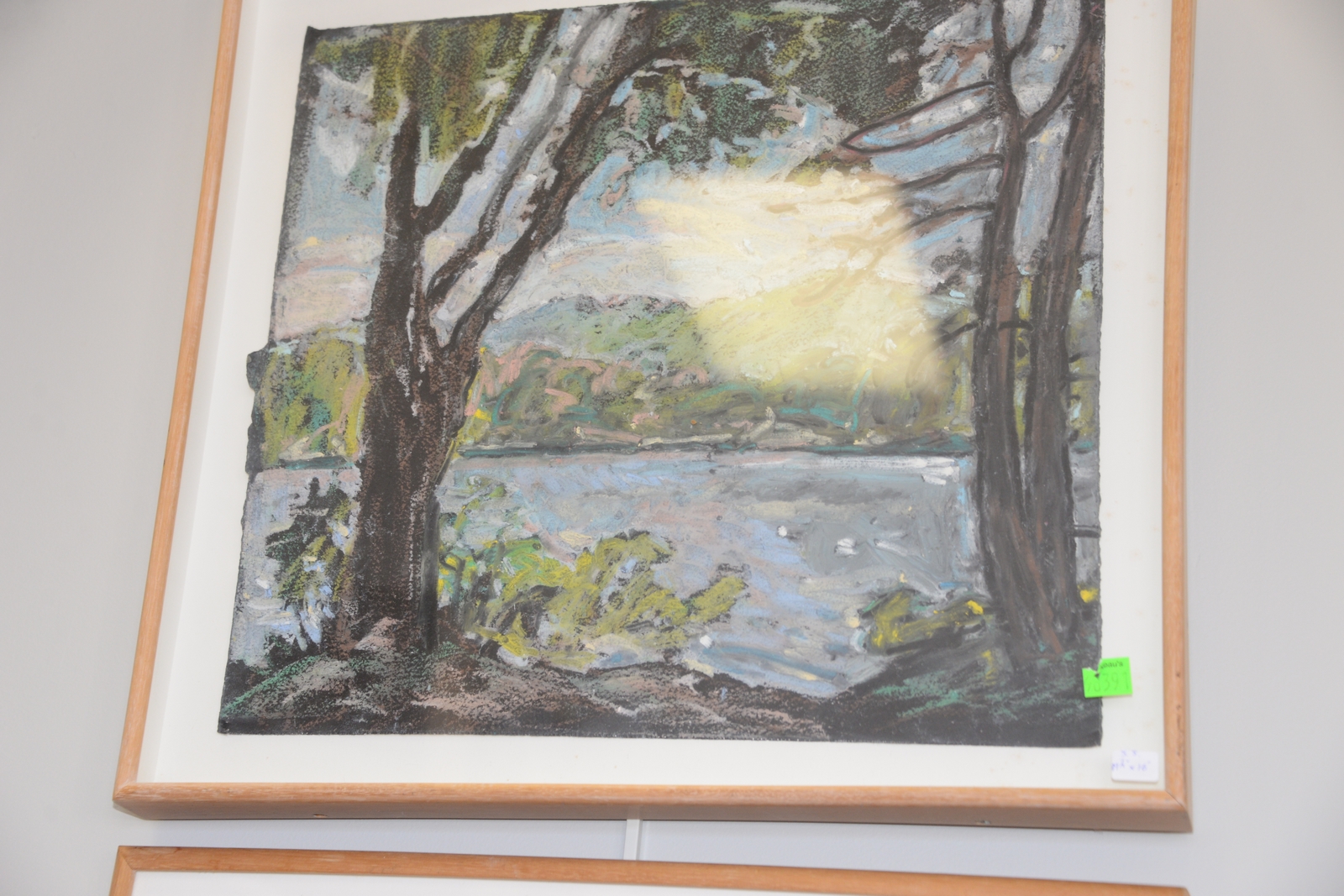 Lot 314: Four framed pieces including Daisy Craddock oil pastel on paper Study for Afternoon Silver Lake 15 x 16 1/2, Trester enamel cop…