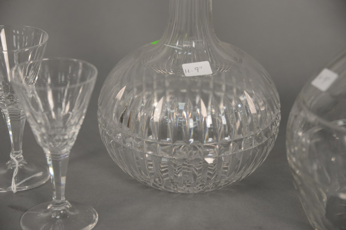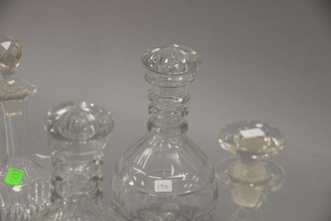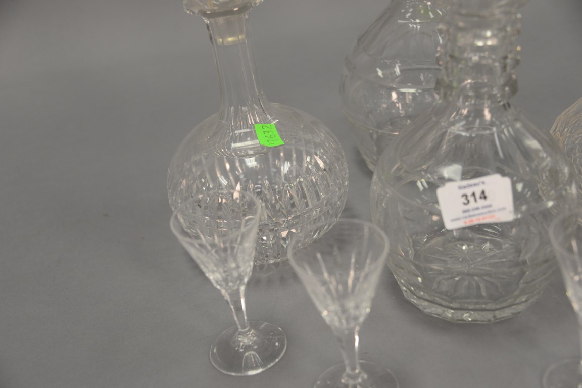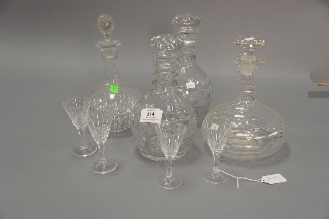Group of four cut glass bottle decanters, one having four matching glasses. ht. 9 in.