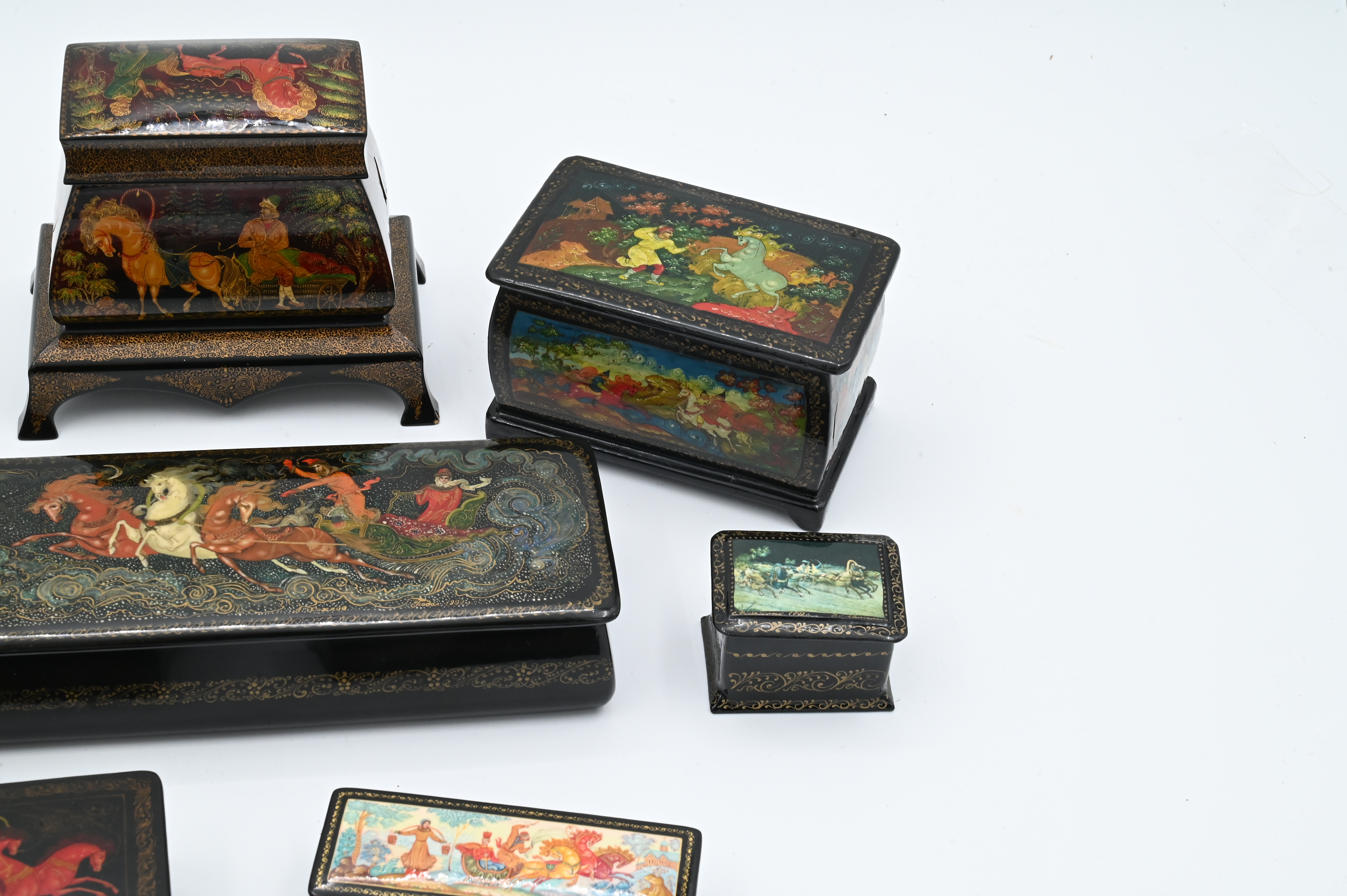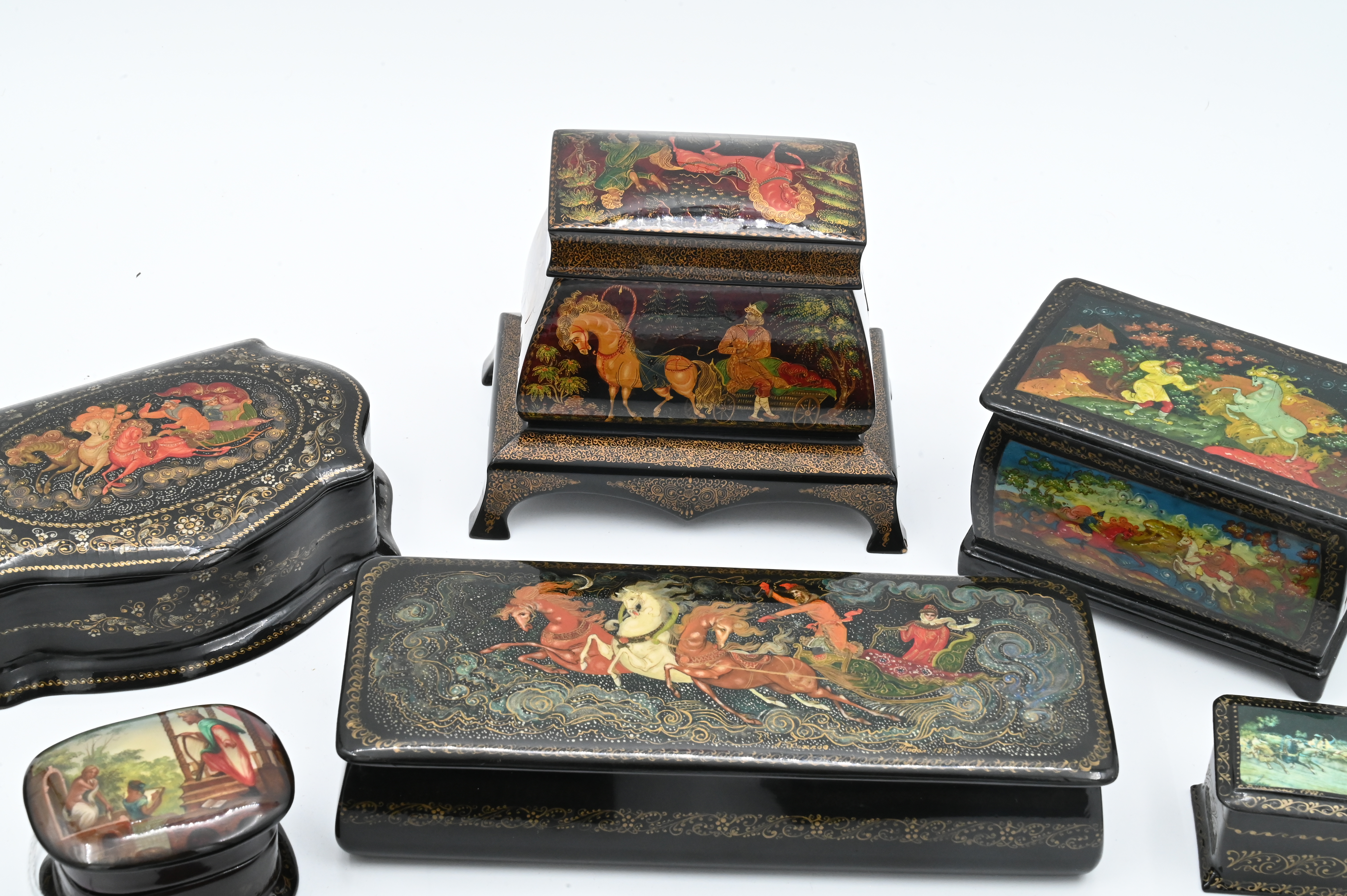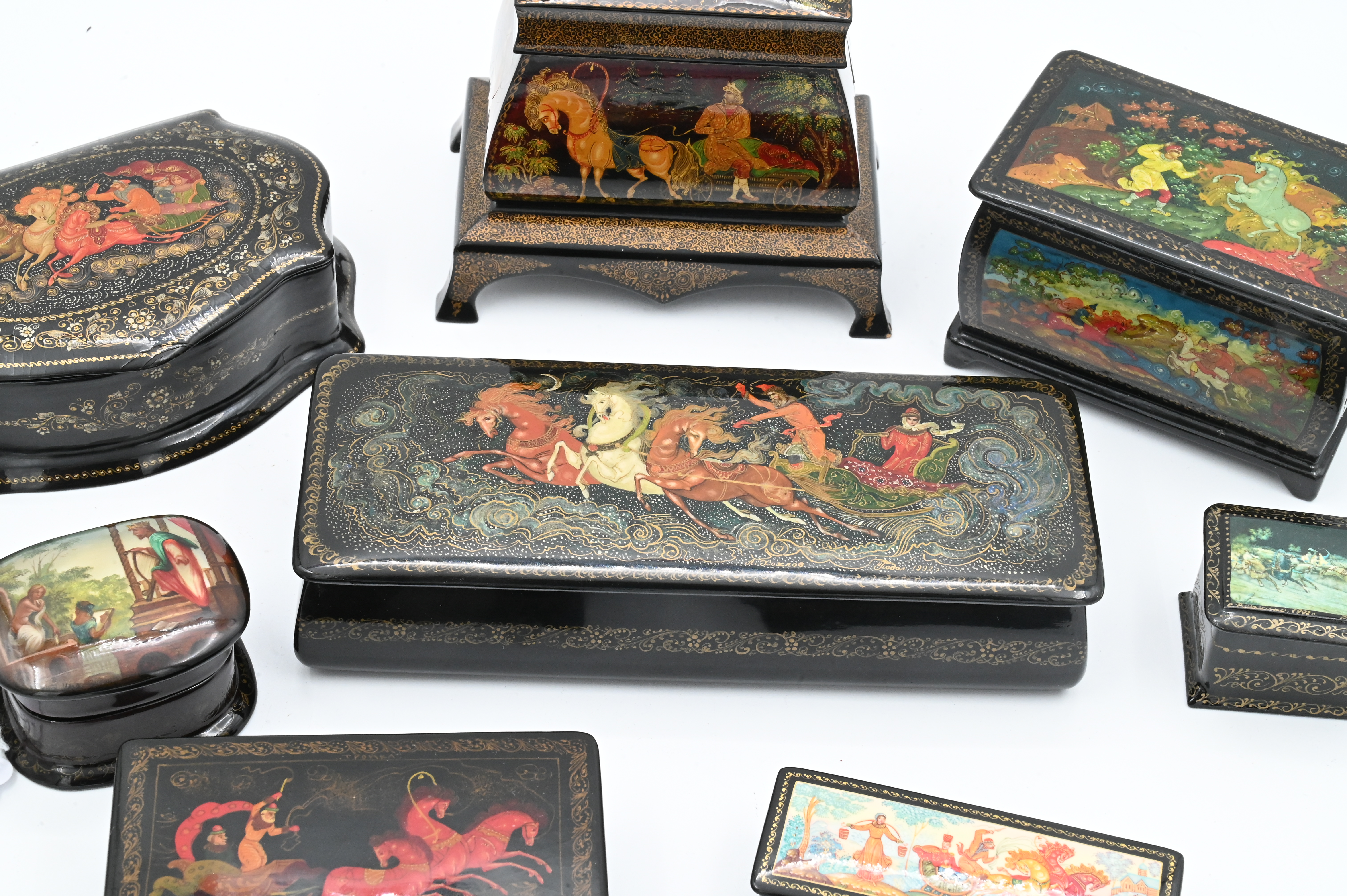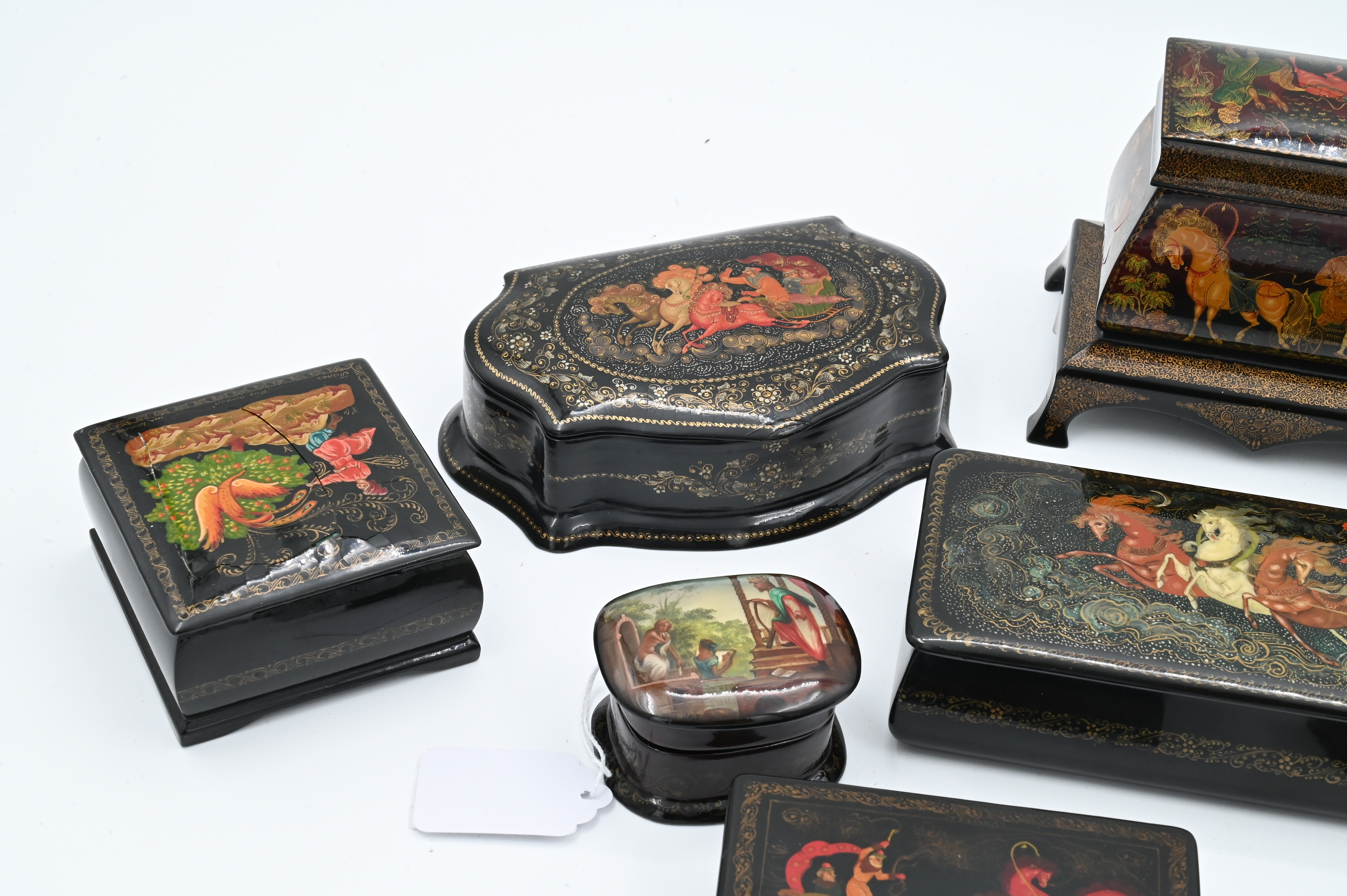 Lot 314: Group of Nine Russian Lacquer Boxes
