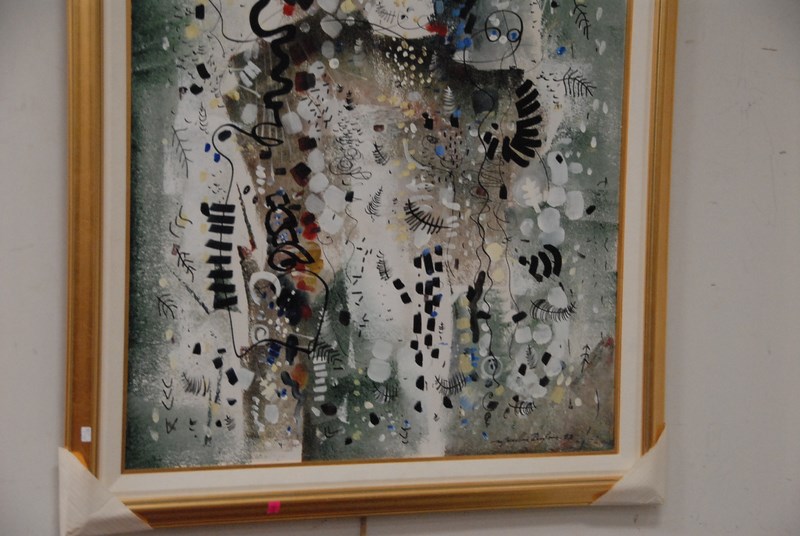 Lot 314: Group of three framed abstract paintings all signed indistinctly lower right.