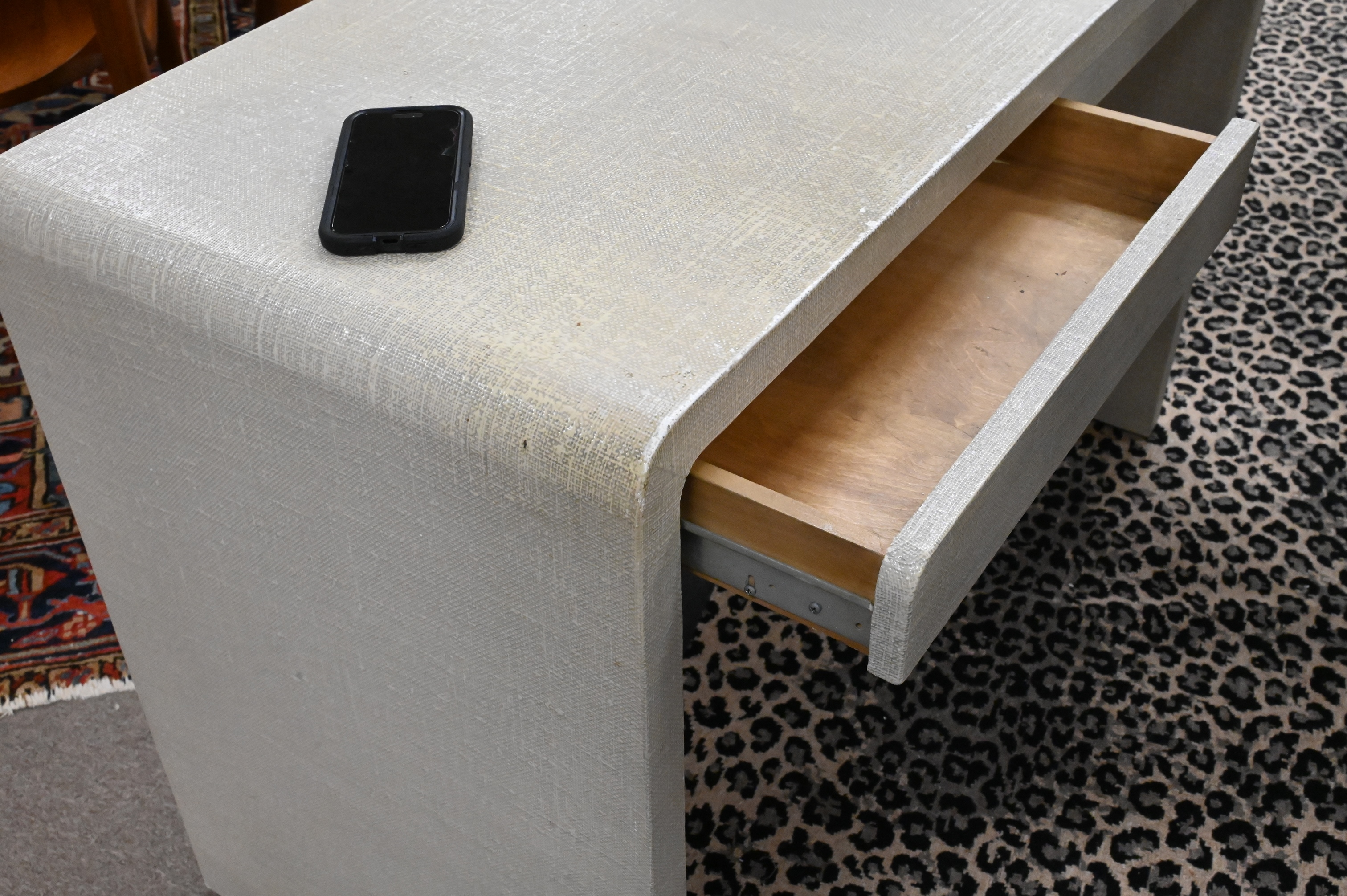 Karl Springer Style Linen Wrapped Waterfall Desk