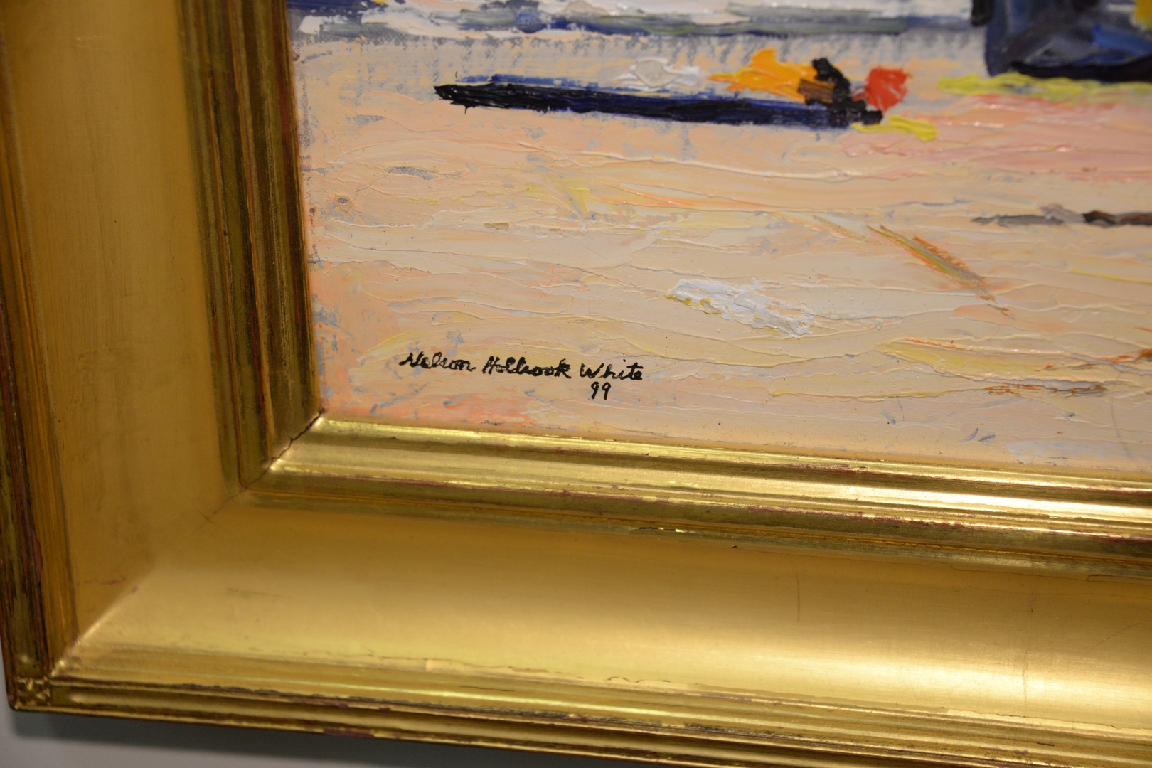 Lot 314: Nelson Holbrook White American, b. 1932 Viareggio, Italy, 1999 oil on canvas board signed and dated lower left, titled verso 11 3/…