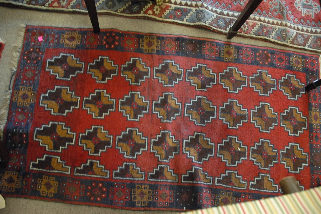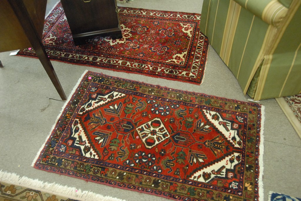Three Oriental scatter rugs, 2’3 x 3’10, 2’6 x 4’7, and 2’9 x 4’7.