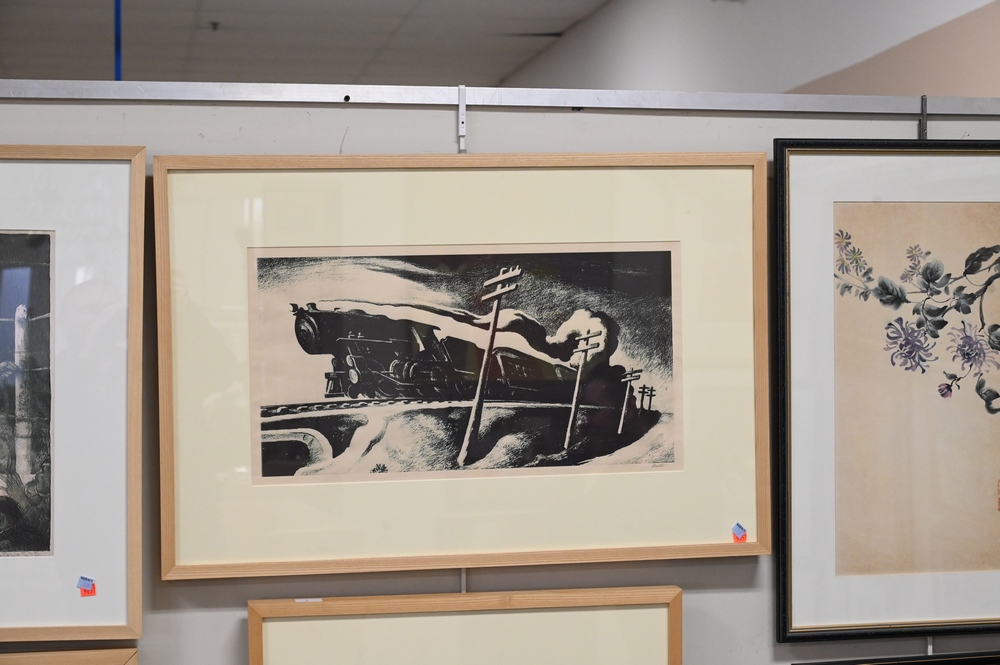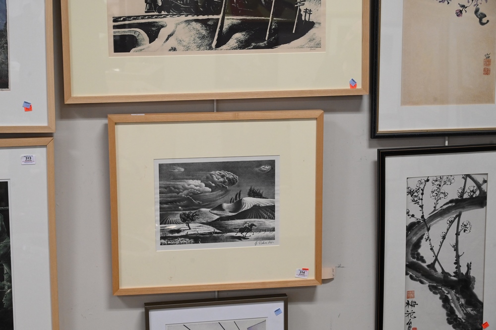 Lot 314: Two Framed Pieces, to include Georges Schreiber “Racing the Storm”, lithograph, pencil signed; along with a print after Thomas Bento…