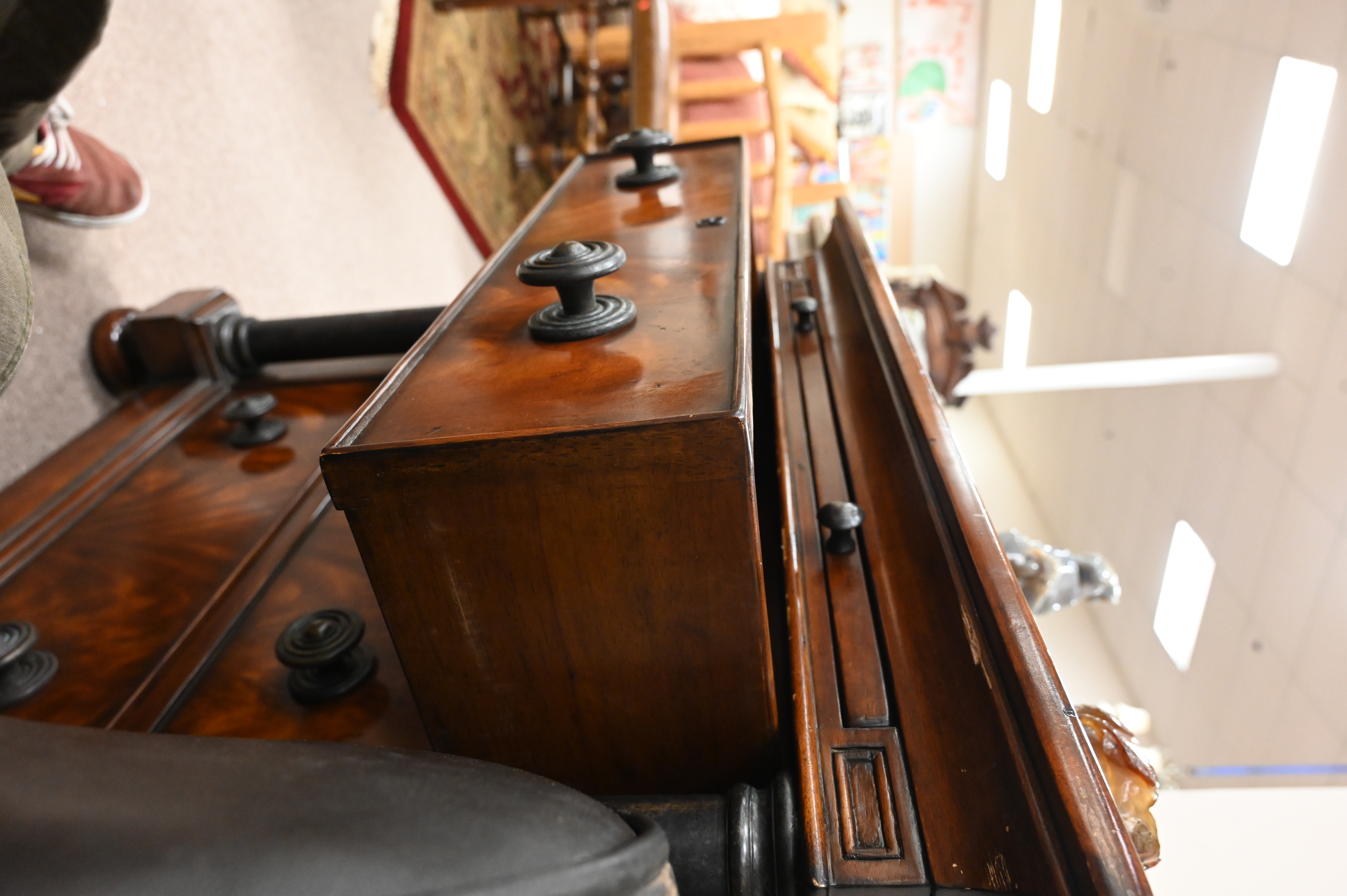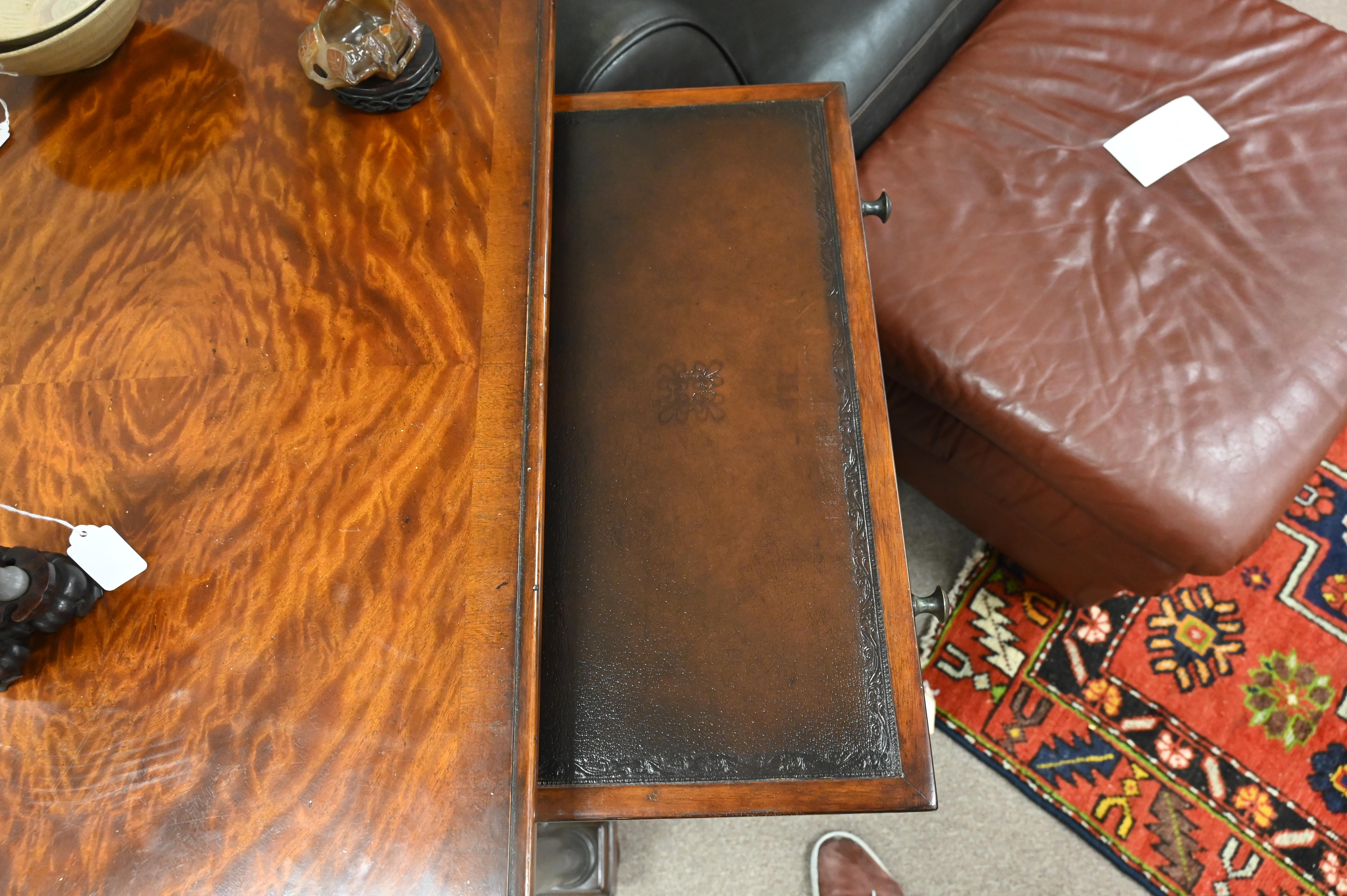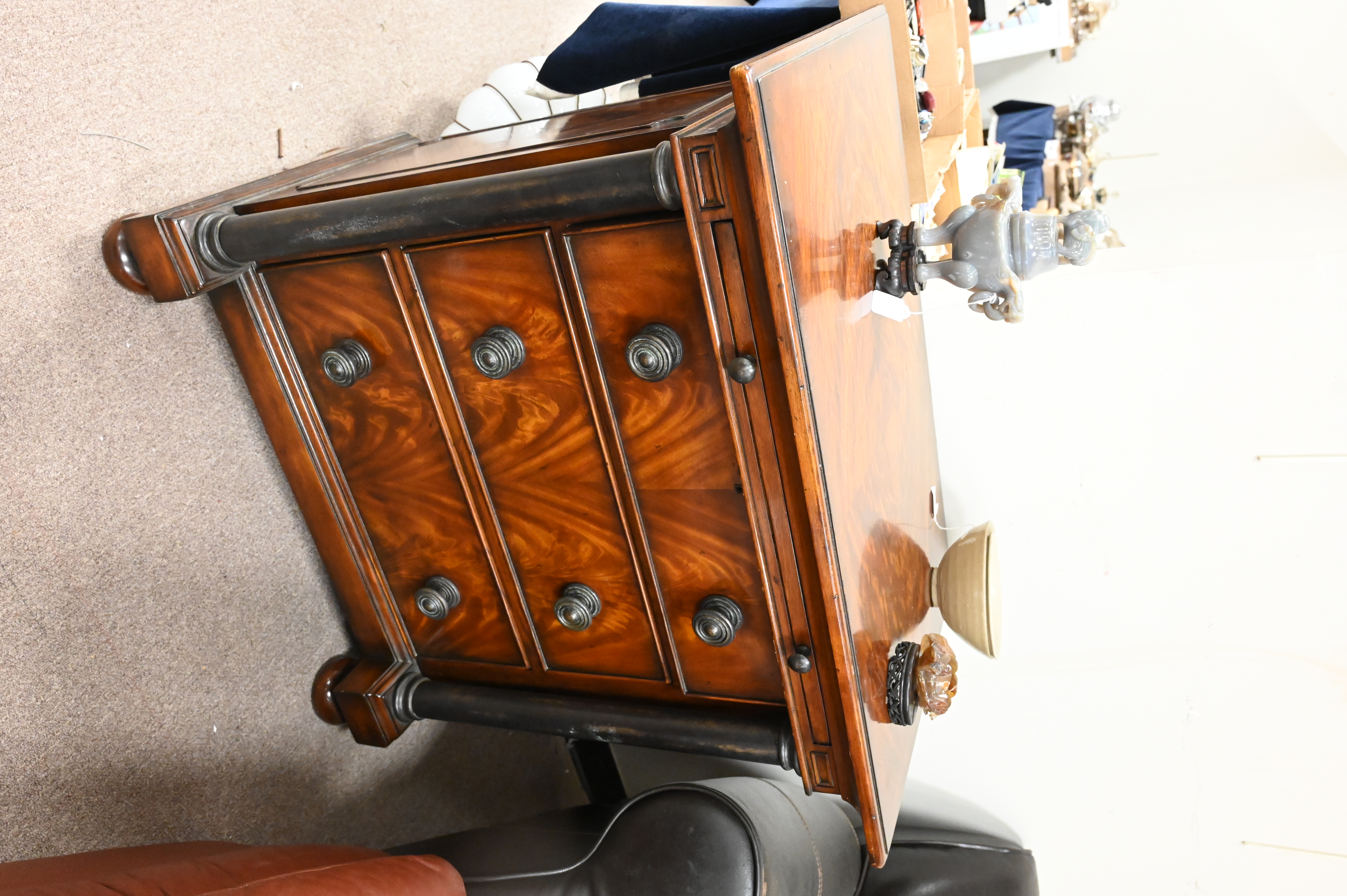 Two Mahogany Night Stands/Side Tables, each having three drawers, one marked Henredon, heights 30 and 31 inches, widths 32 and 32 1/2 inches.