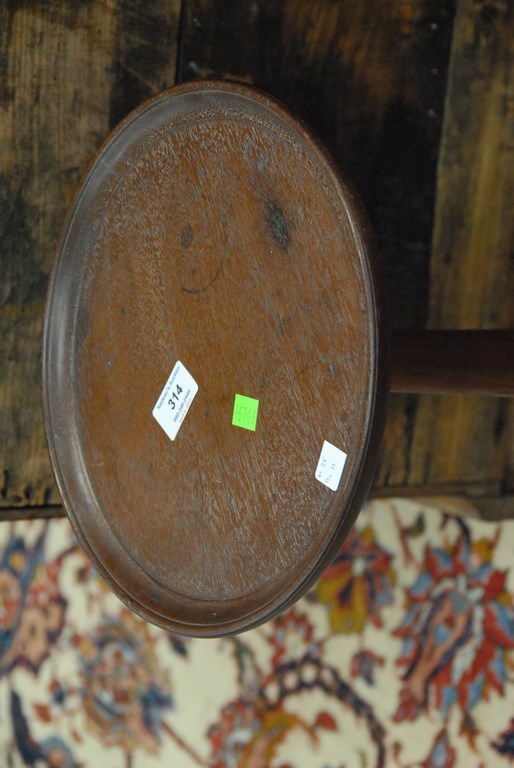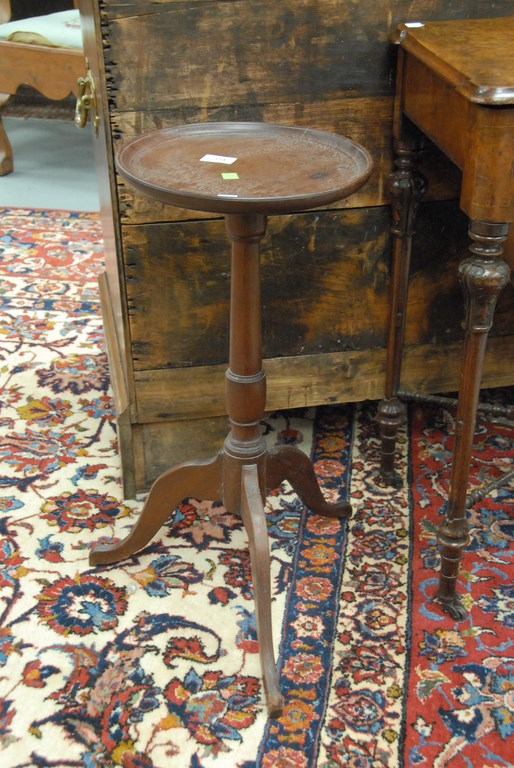 Lot 314: Walnut candlestand with round dished top and turned shaft on tripod base. ht. 26in. dia. 12in. Provenance: Estate of Nancy Sachse, …