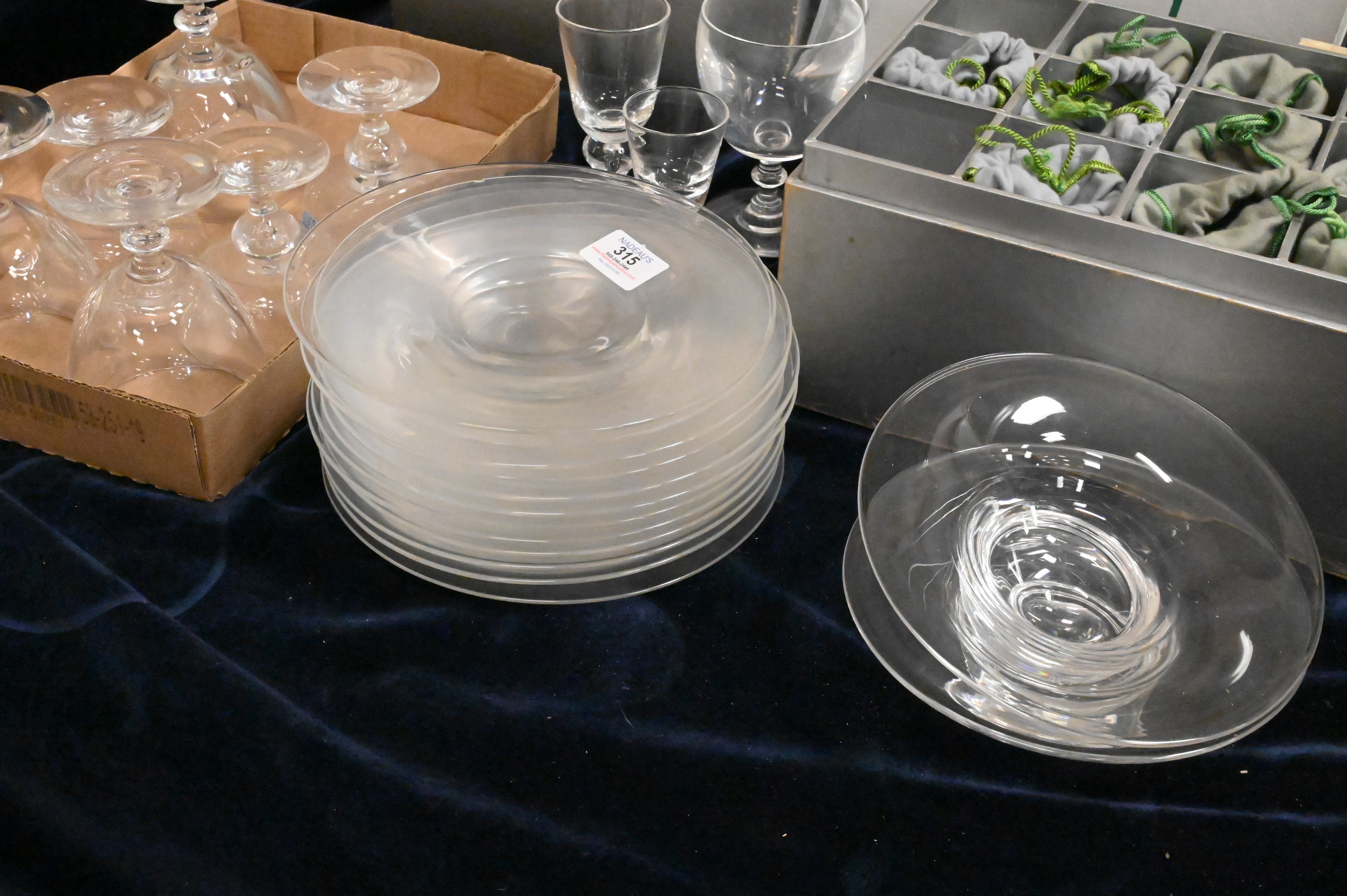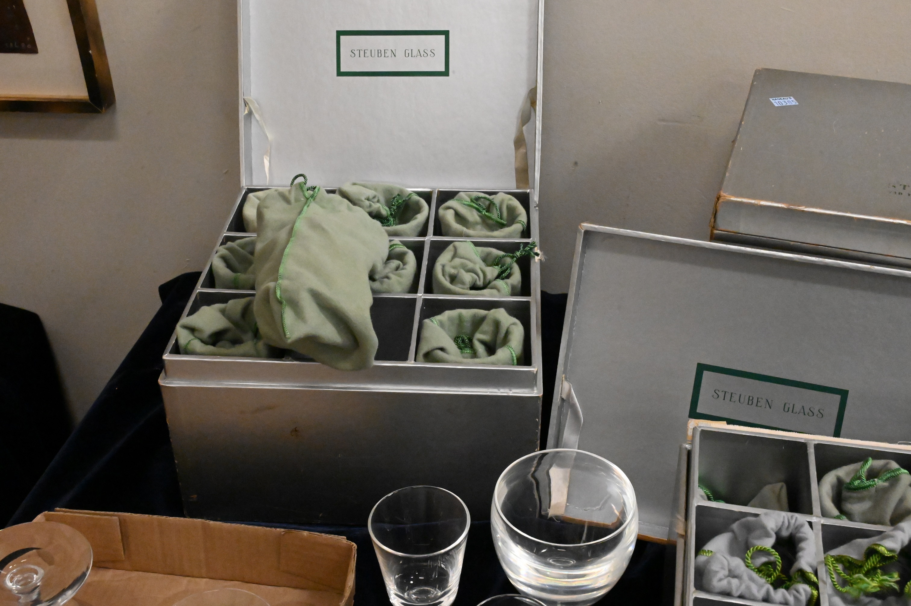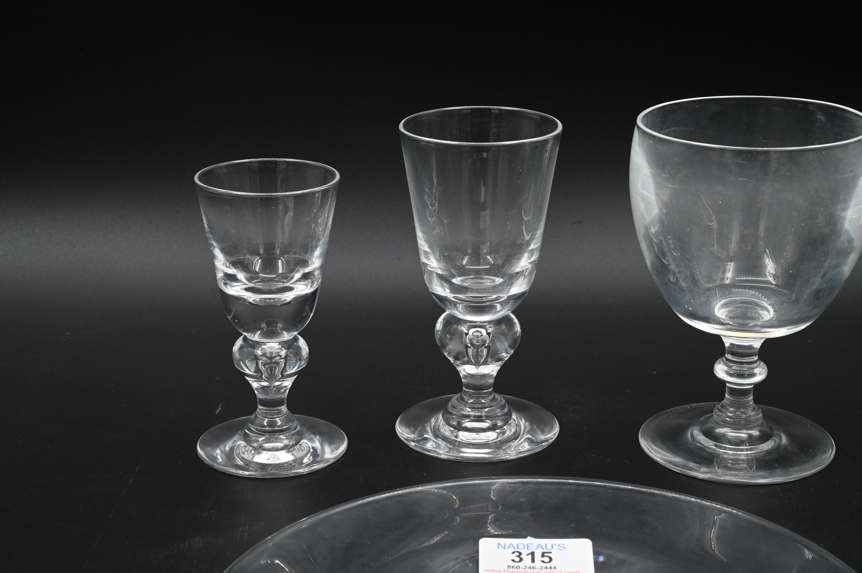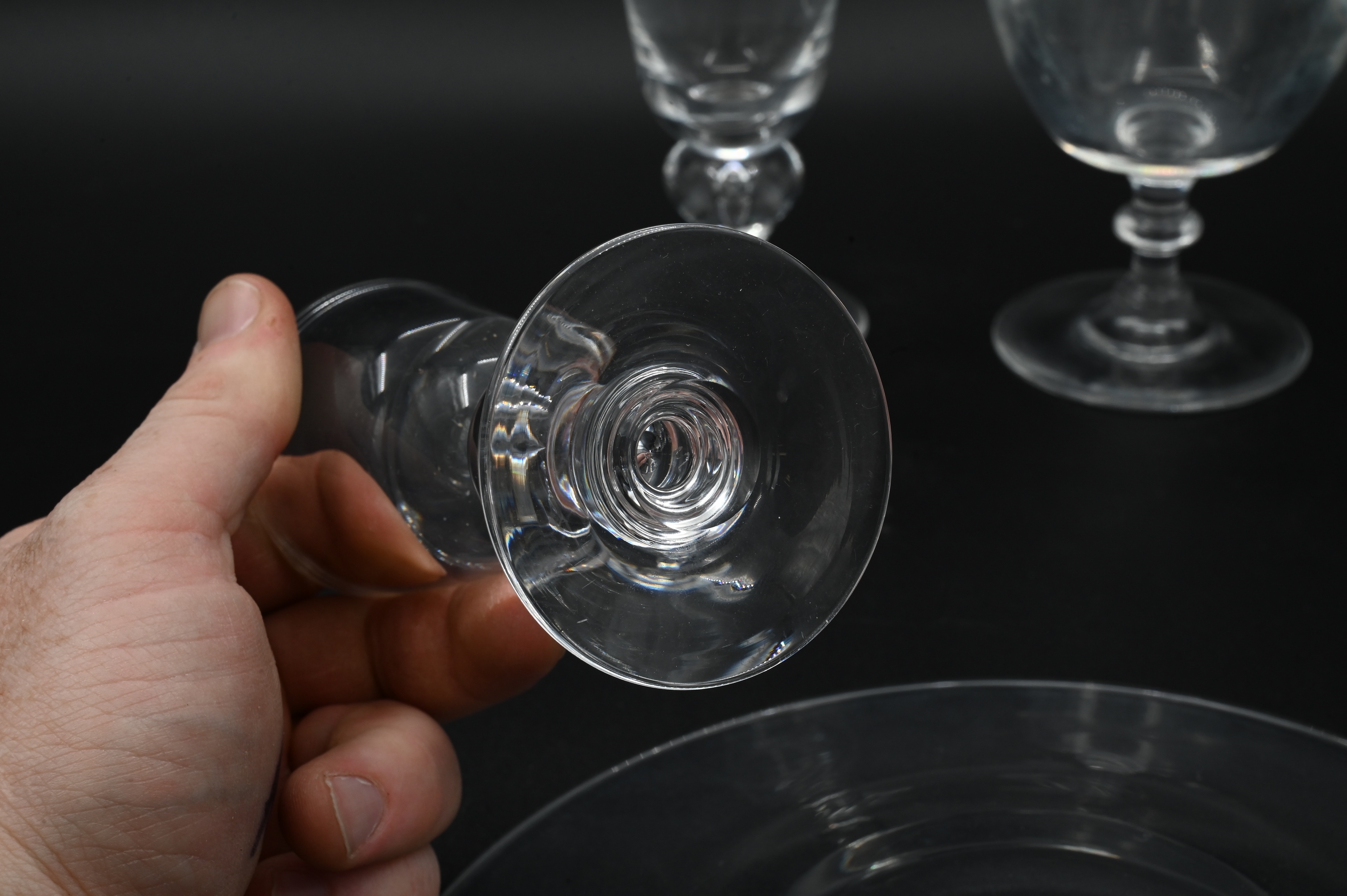 to include 12 plates, nine white wine stems, 12 cordial stems in fitted box, 10 miscellaneous stems, along with plates