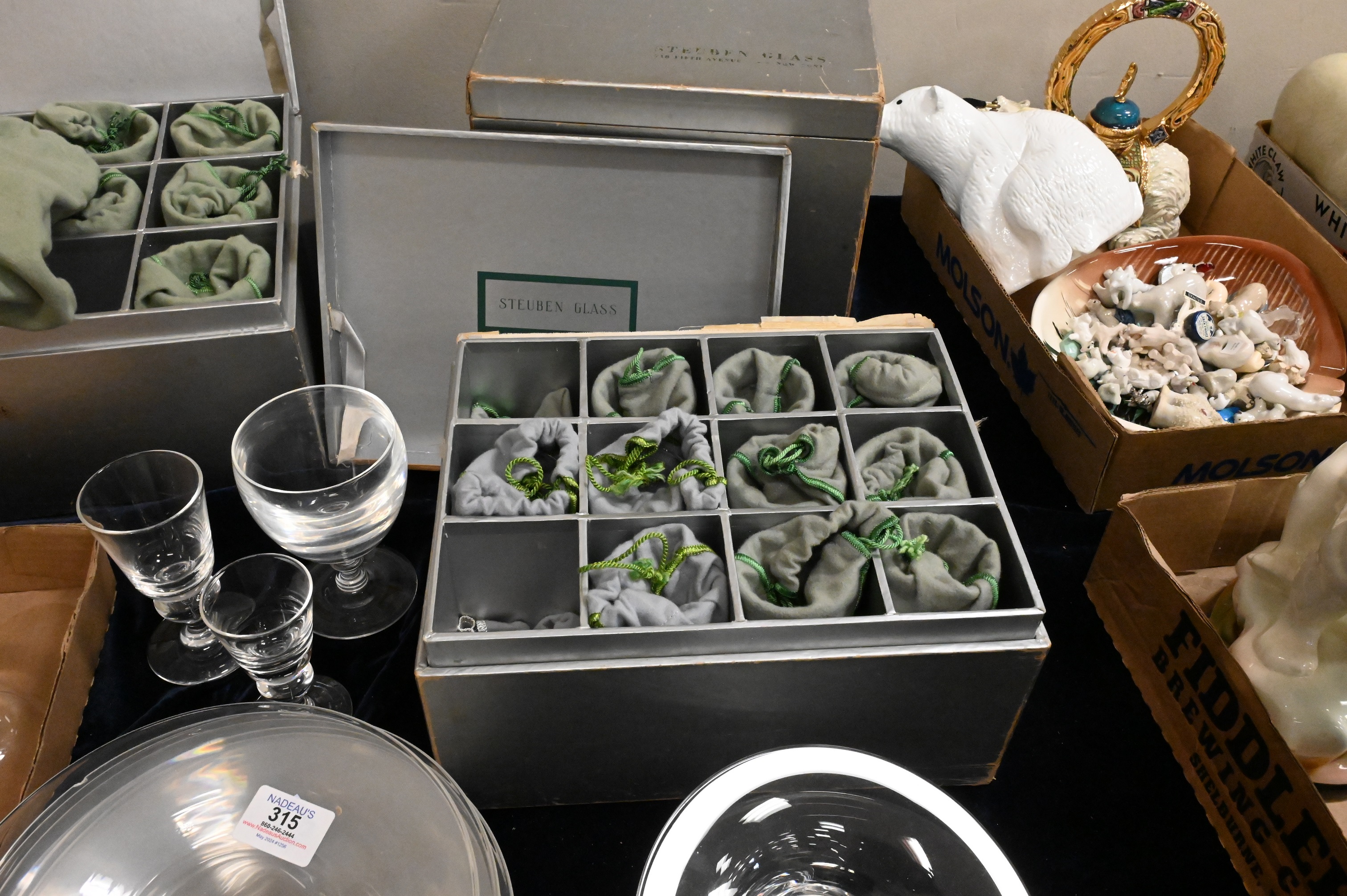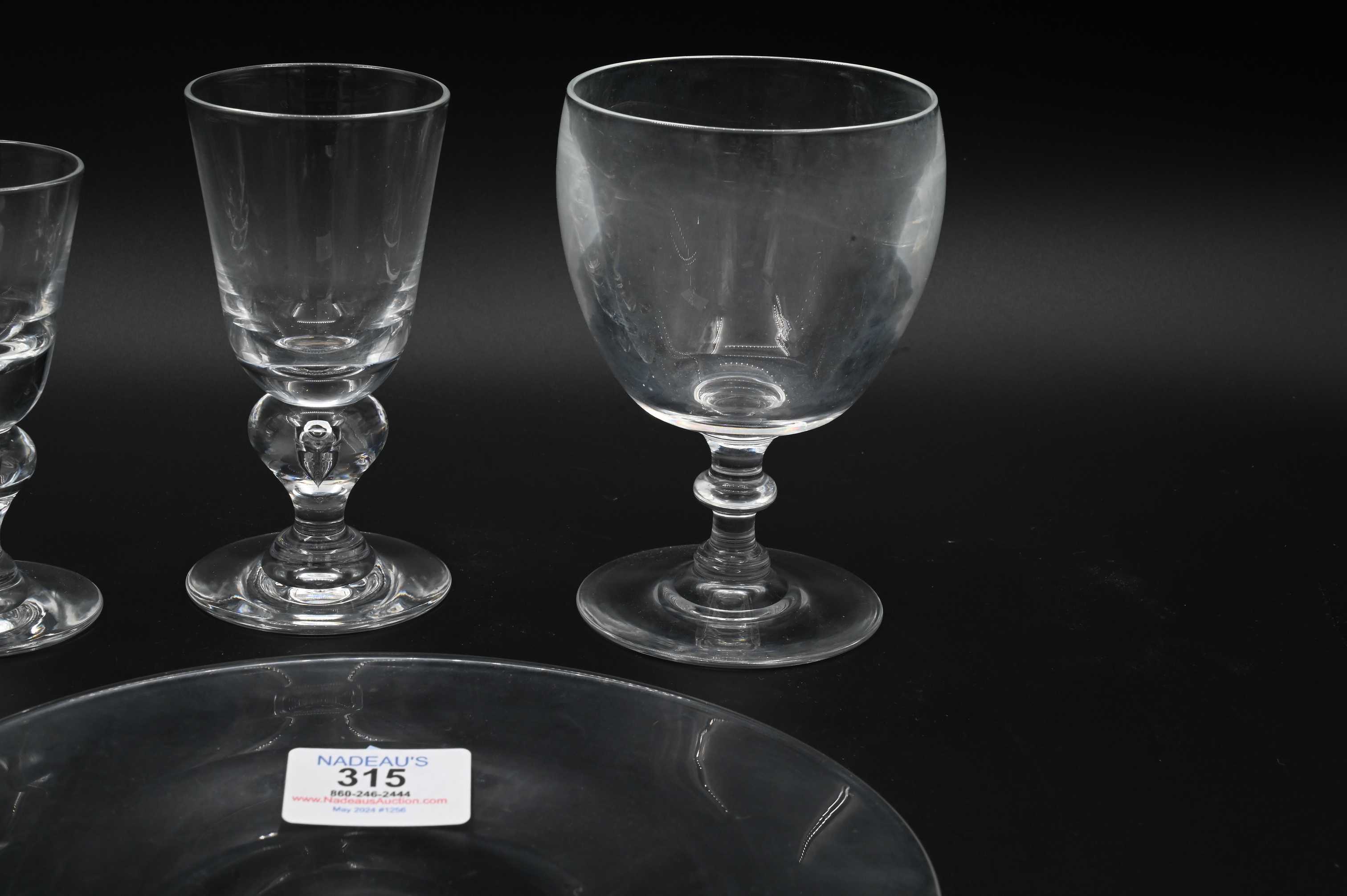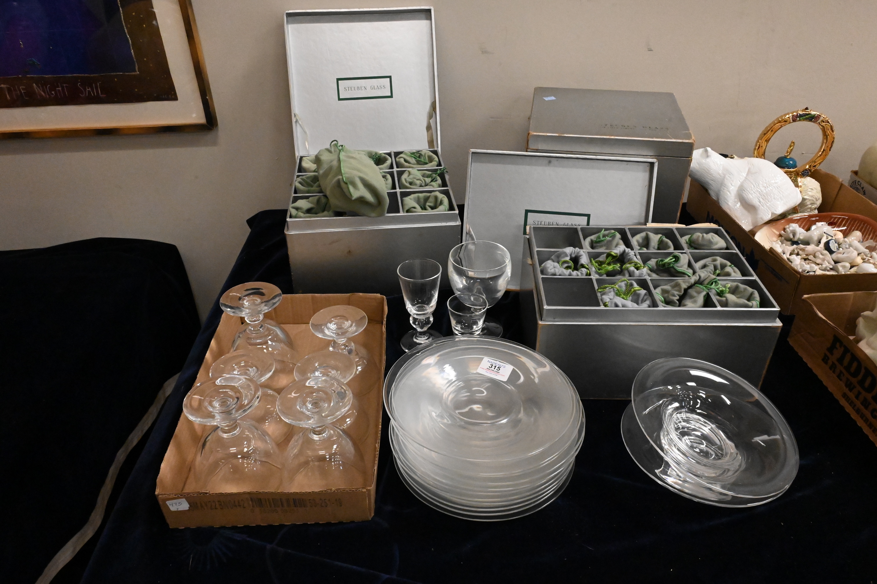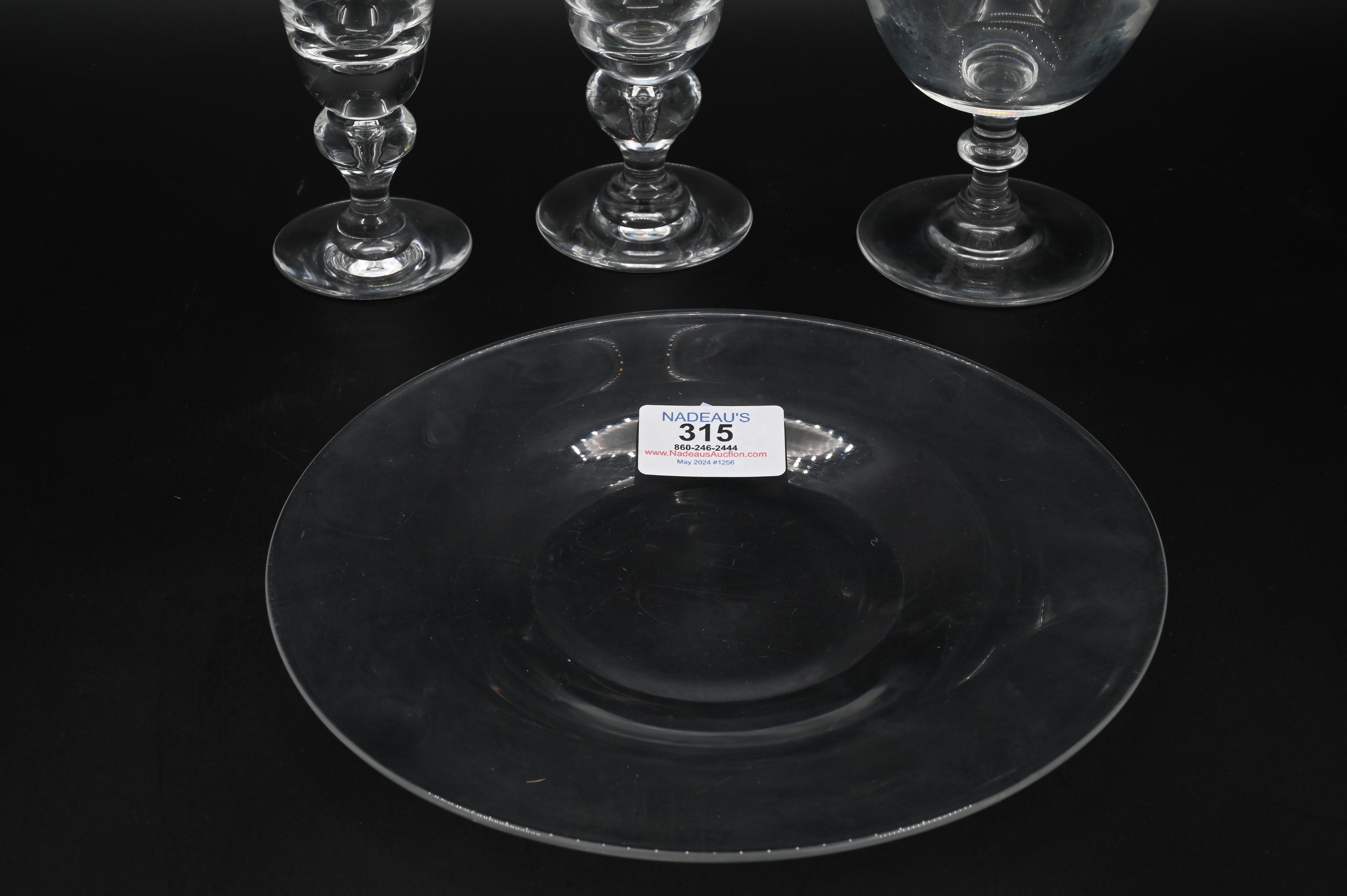 to include 12 plates, nine white wine stems, 12 cordial stems in fitted box, 10 miscellaneous stems, along with plates