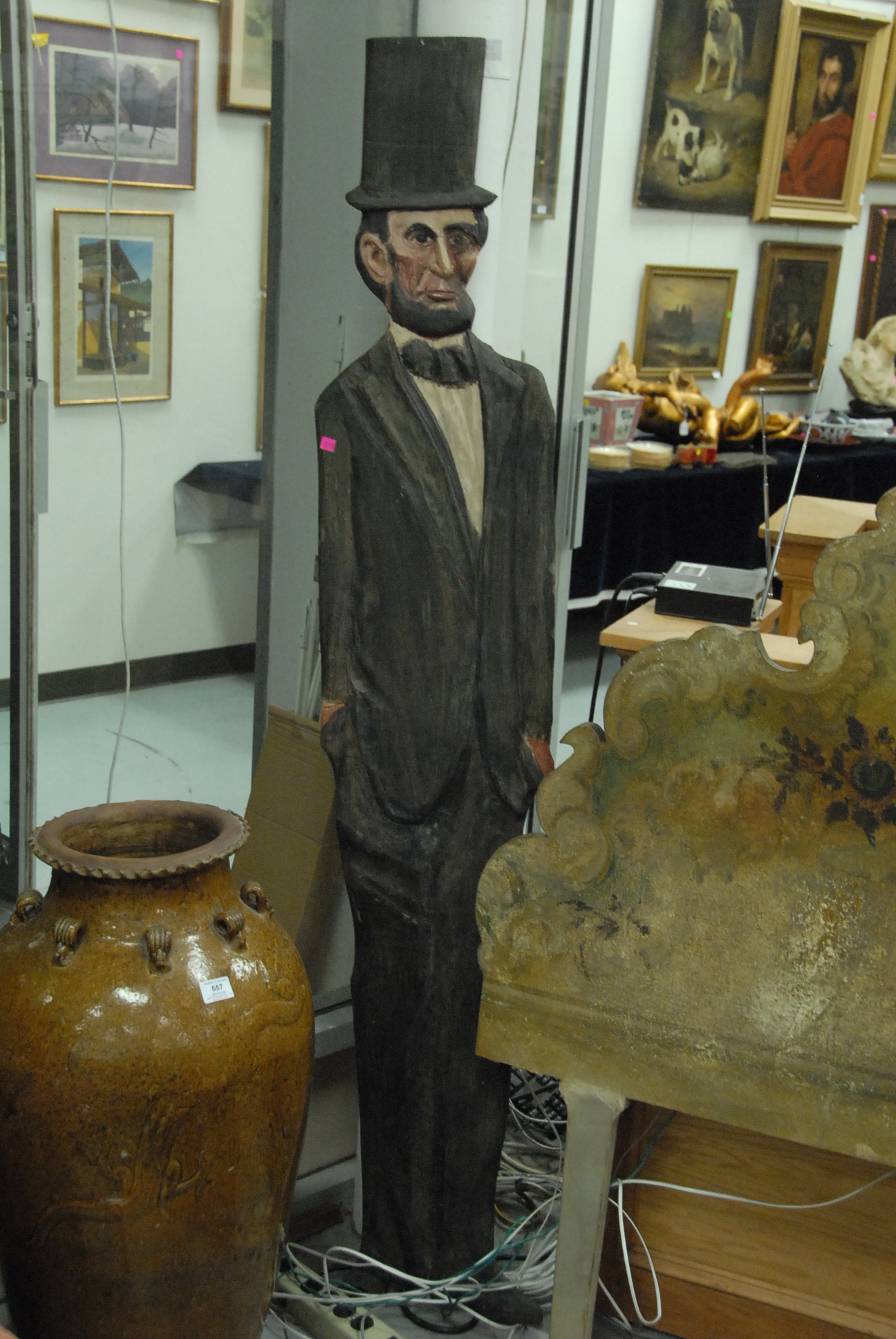Folk Art carving of Abraham Lincoln, 20th century. ht. 71in.