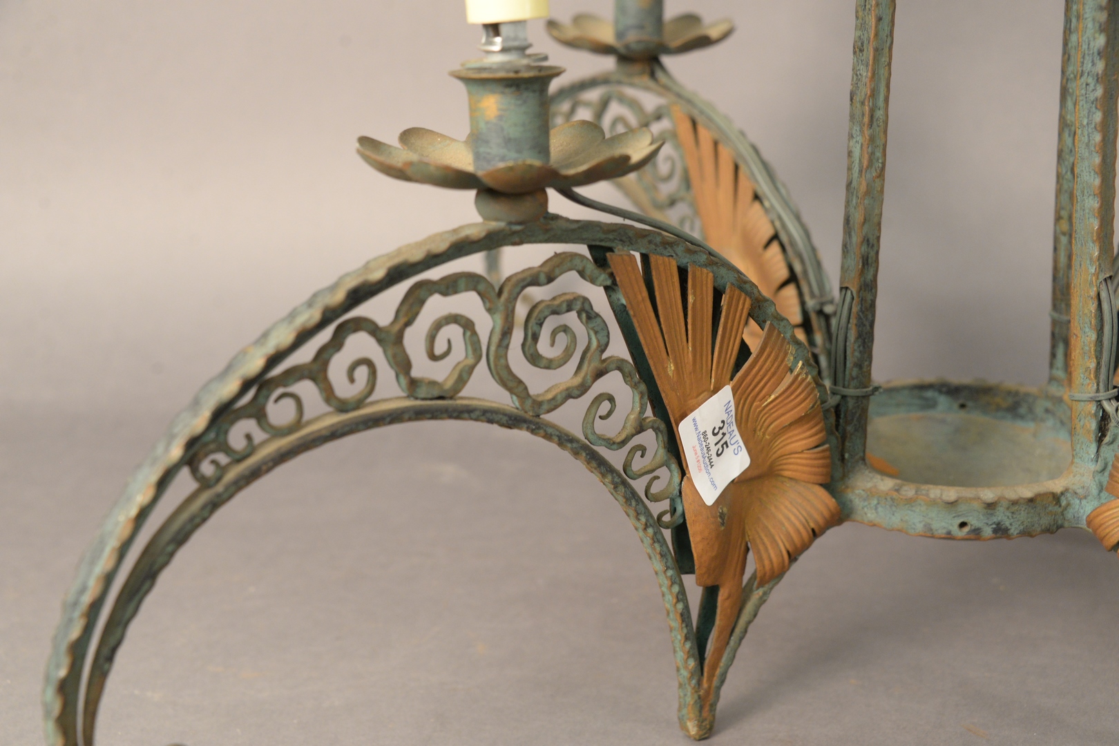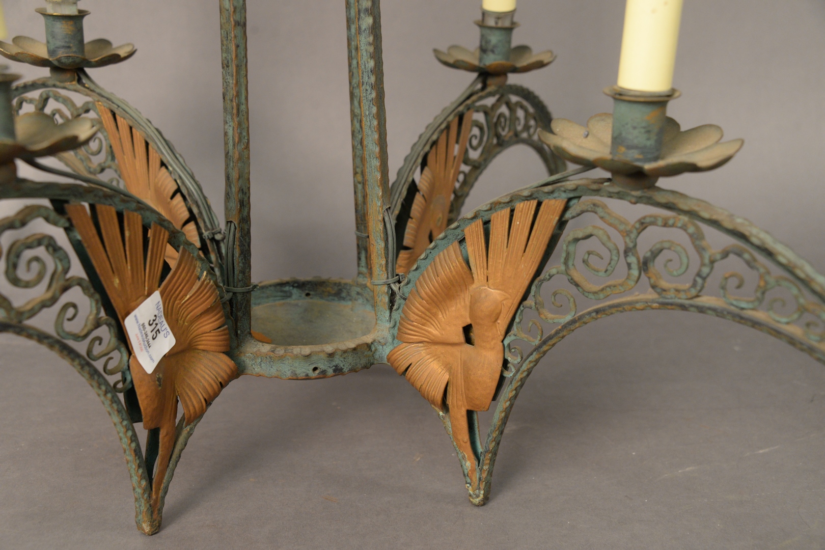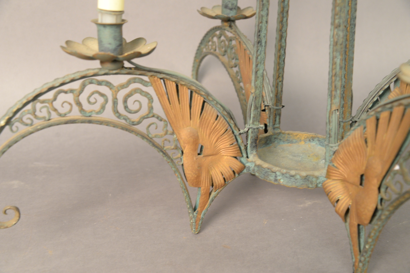 Lot 315: French Art Deco Chandelier, having four lights on scrolling arms, height 30 inches, diameter 28 inches.