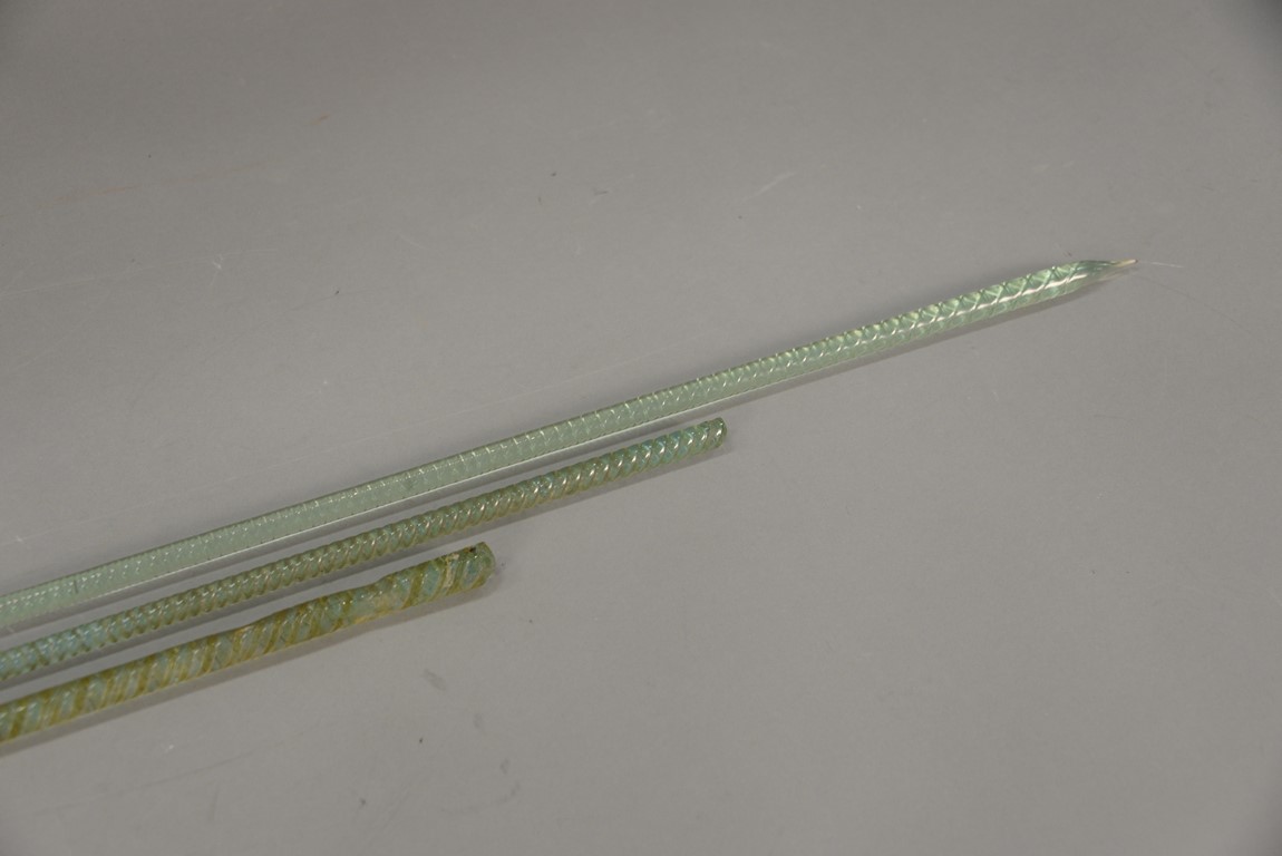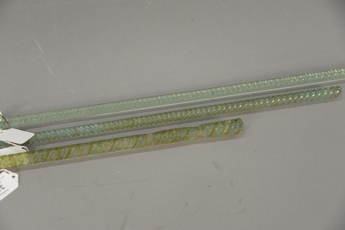 Lot 315: Group of three American art glass parade canes, all swirl clear glass. lg. 29 in., lg. 39 in., and lg. 54 in.