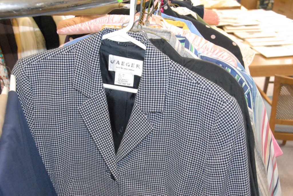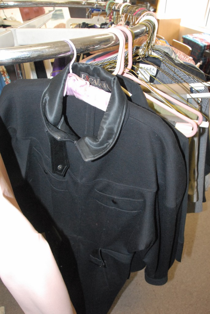 Large grouping of clothing Jaeger jackets, Ellen Tracy pieces, Chico, purple leather and black leather skirts and jackets etc.