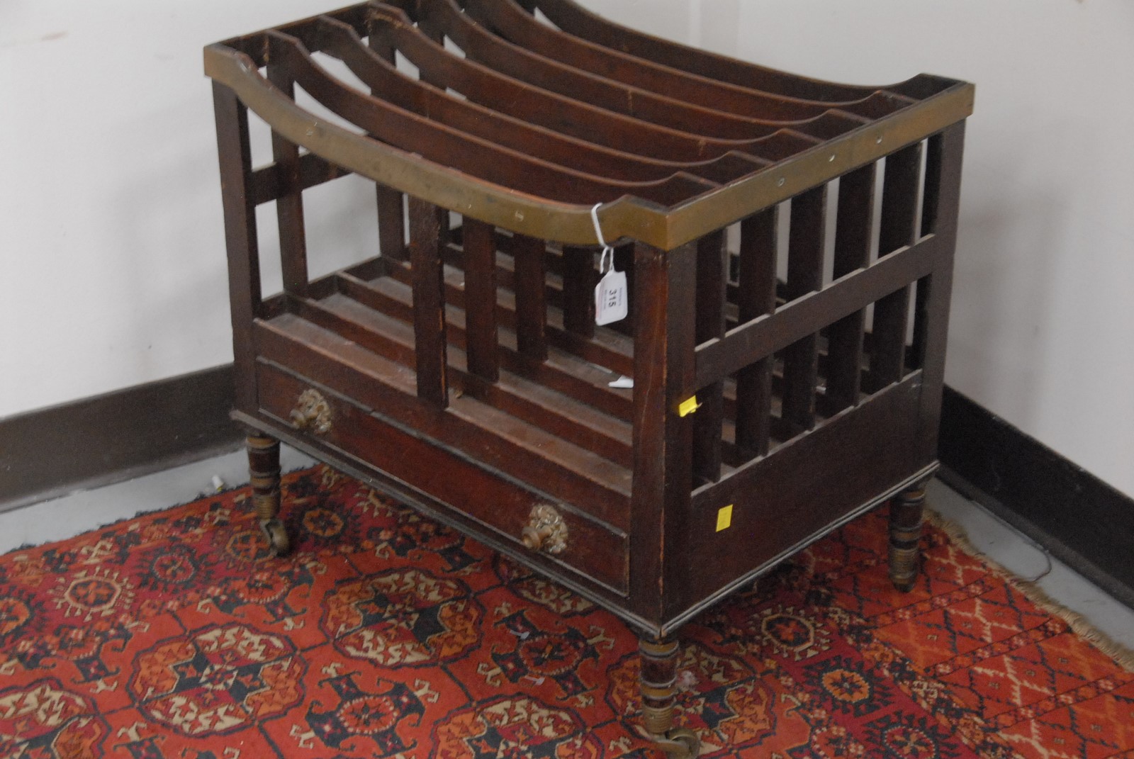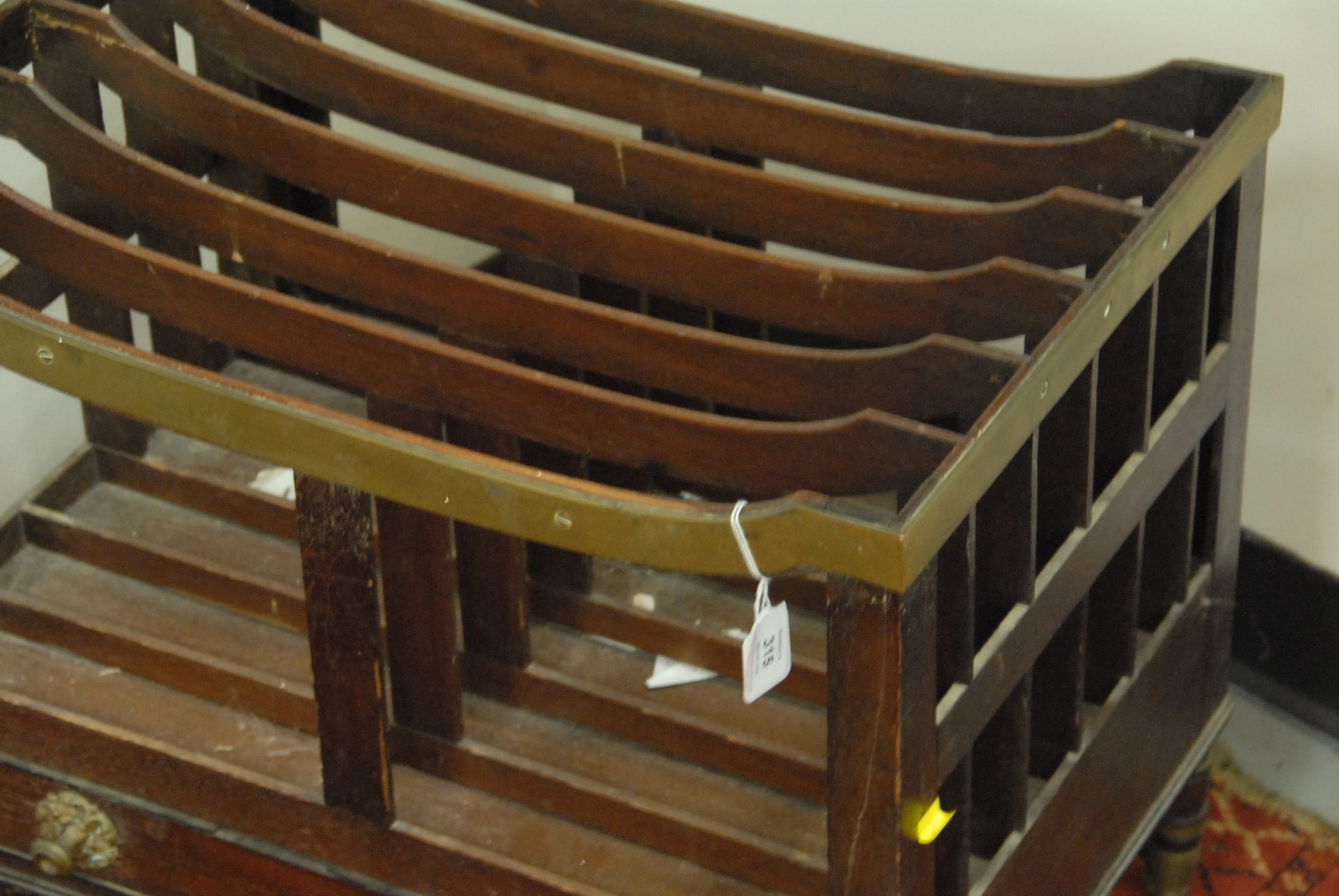 Mahogany canterbury having one drawer on turned legs, English 1830. ht. 30 1/2 in. wd. 22 in. dp. 15 in. Provenance: Property from The Estate of Margaret Oliphant of Old Lyme, Connecticut
