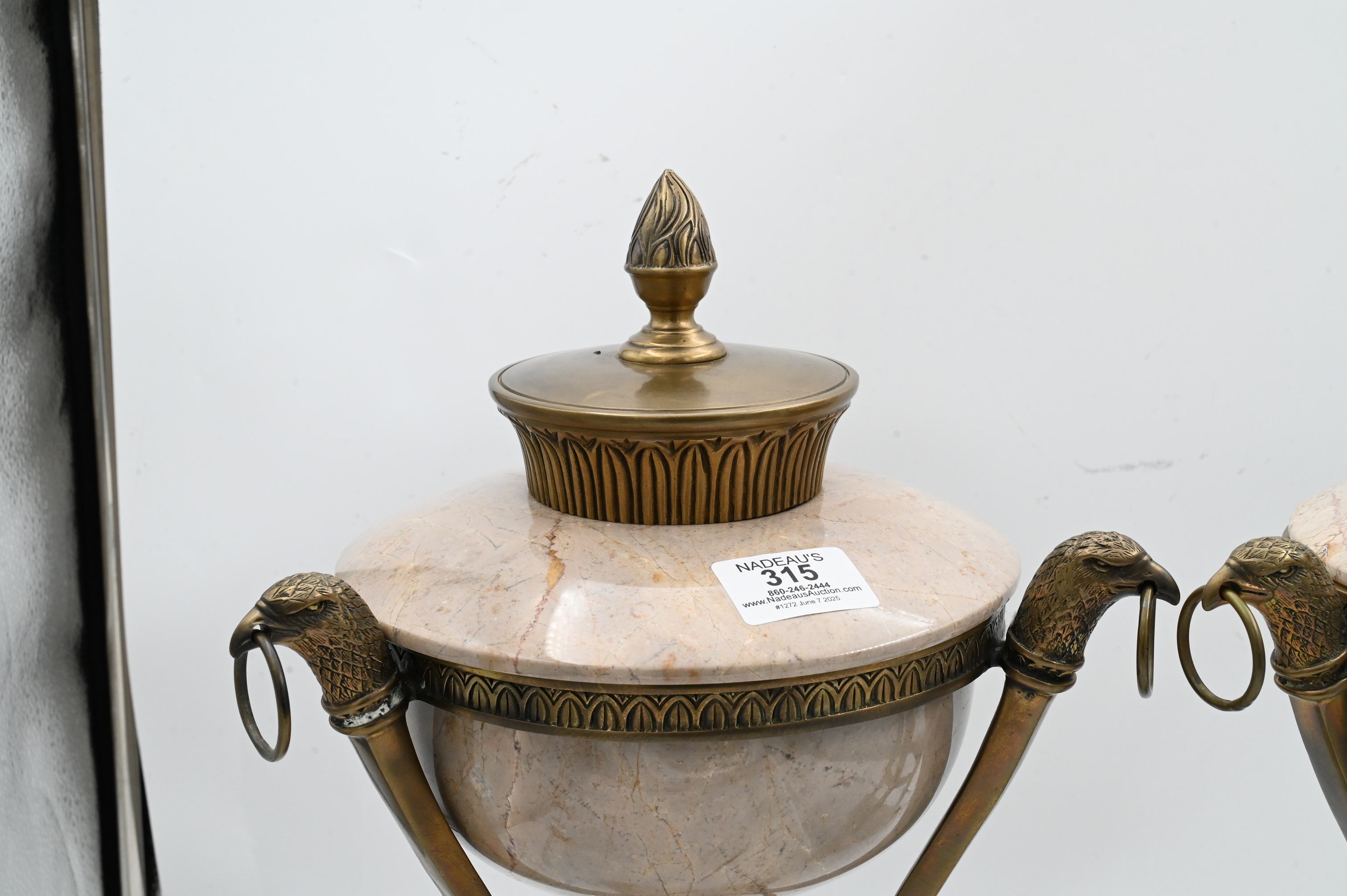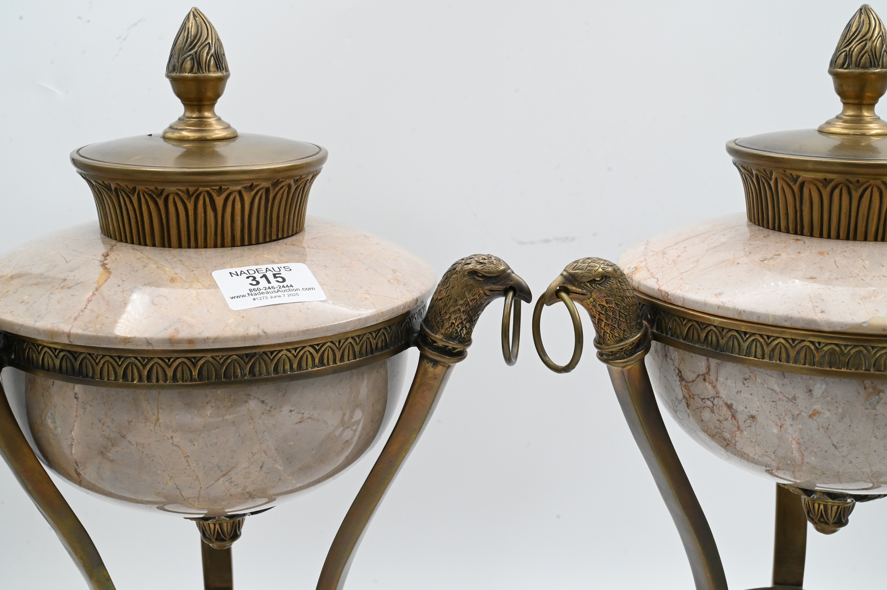 Lot 315: Pair Empire Style Marble Tripod Urns