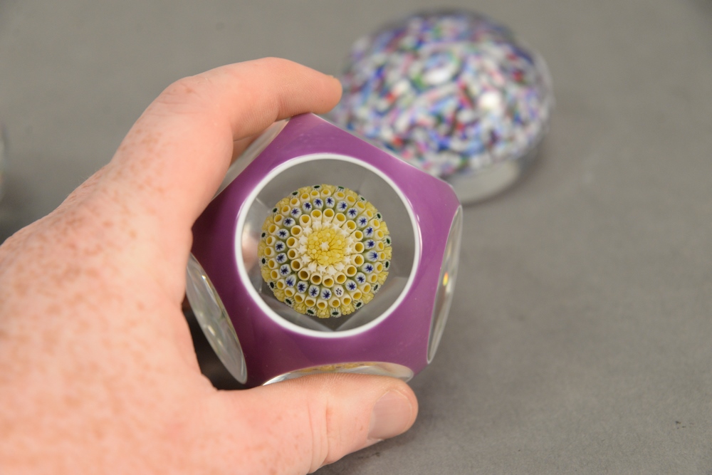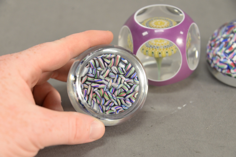 Lot 315: Three Baccarat Millefiori Glass Paperweights, to include a double overlay mushroom paperweight having purple exterior, numbered 137 …