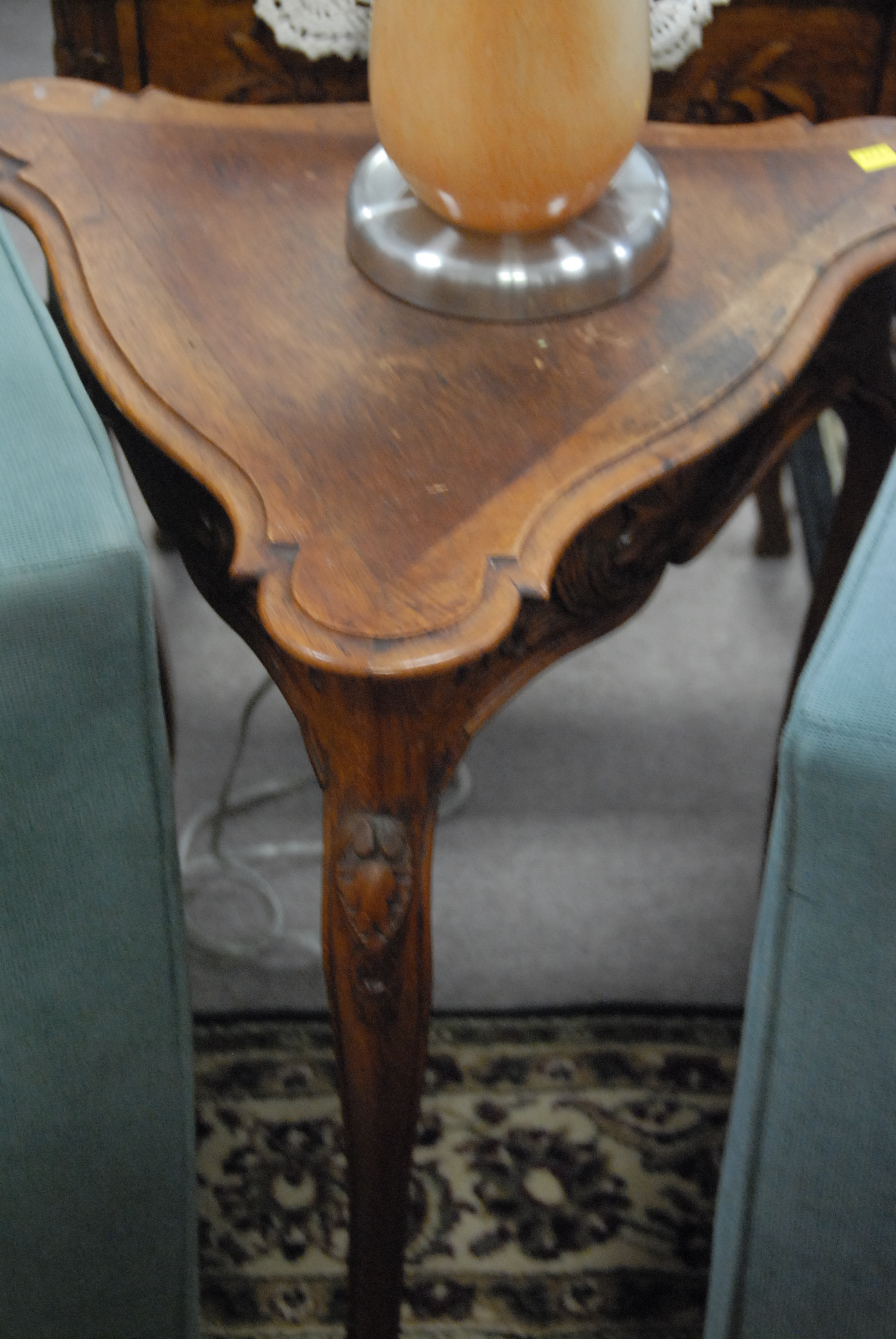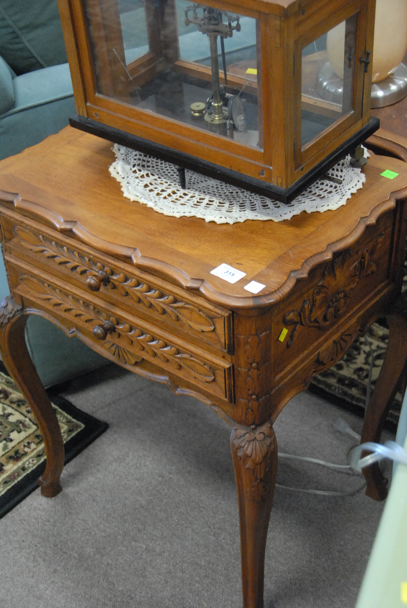 Lot 315: Three walnut tables including coffee table ht. 20in., triangular table ht. 25in., and two drawer stand ht. 26in.