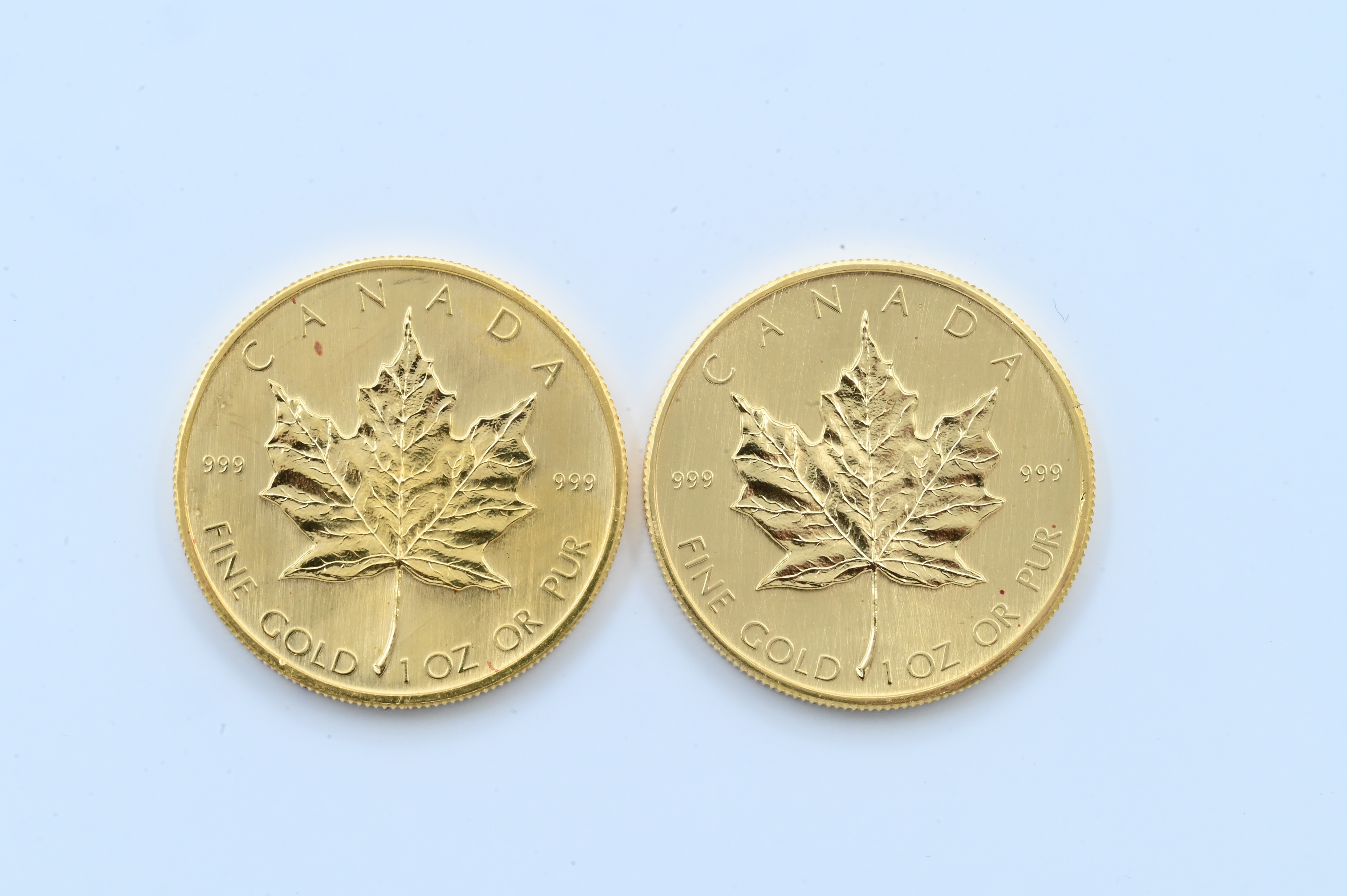 Two 1980 Canadian Maple Leaf 1 Ounce Gold Coins