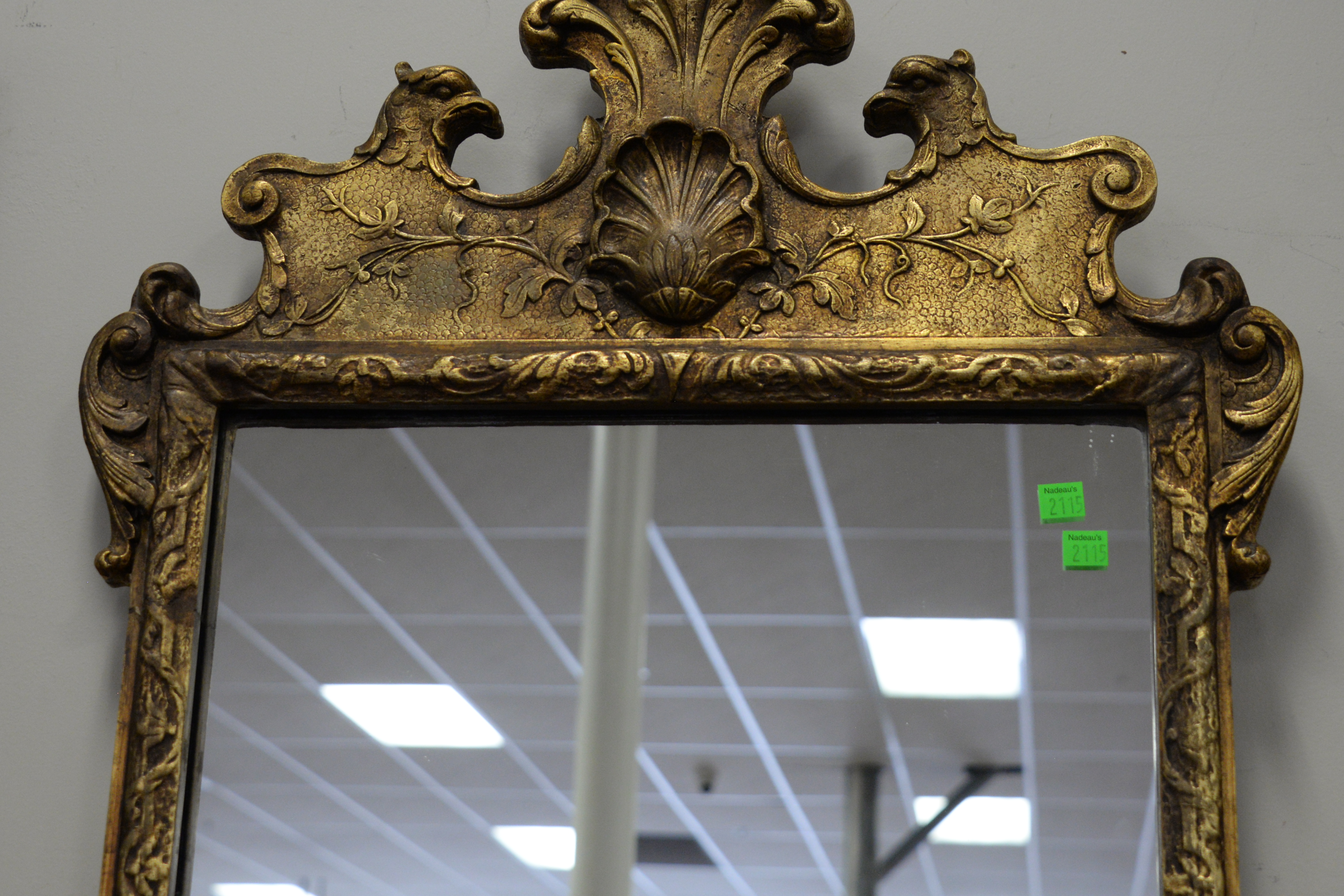 Contemporary Gilt Decorative Mirror, with eagle head and shell top, height 43 inches, width 24 inches
