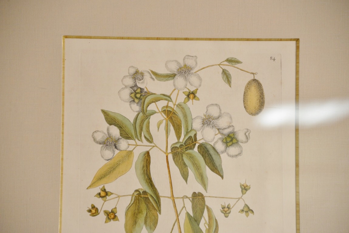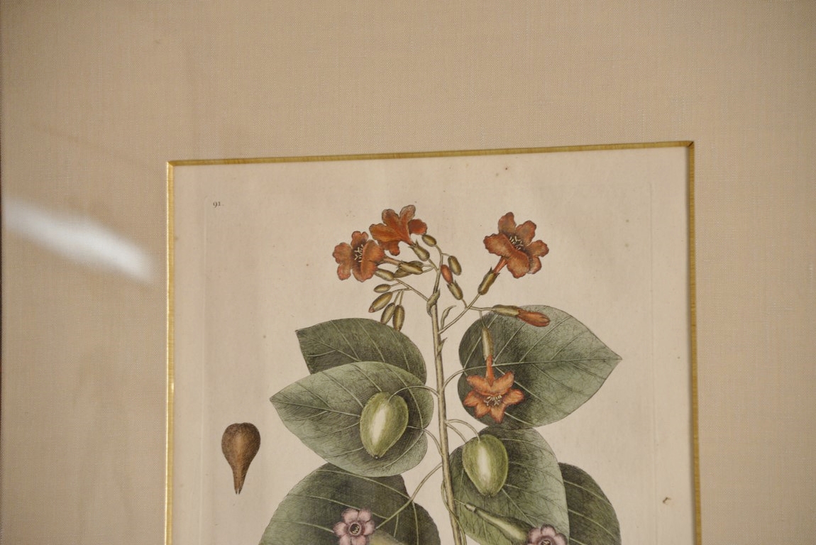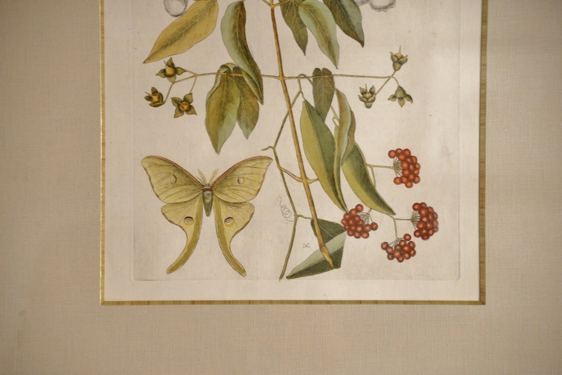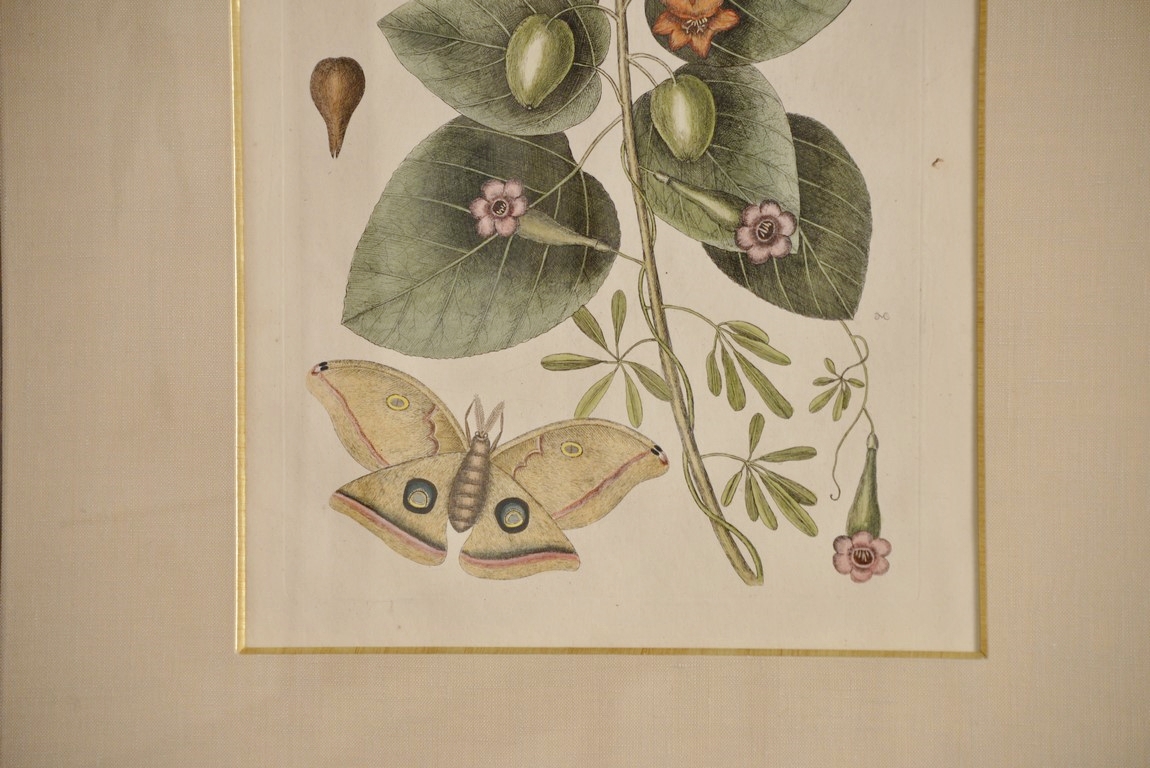 Mark Catesby 1679-1749 pair of hand colored copper plate engravings The Great Moth Phalaena Plate #91 and The Four Eye’d Night Butterfly Plate #84 From The Natural History of Carolina, Florida and the Bahama Islands framed by W. Graham Arader III sight size: 15 x 11 1/2 Provenance: Property from Credit Suisse’s Americana Collection