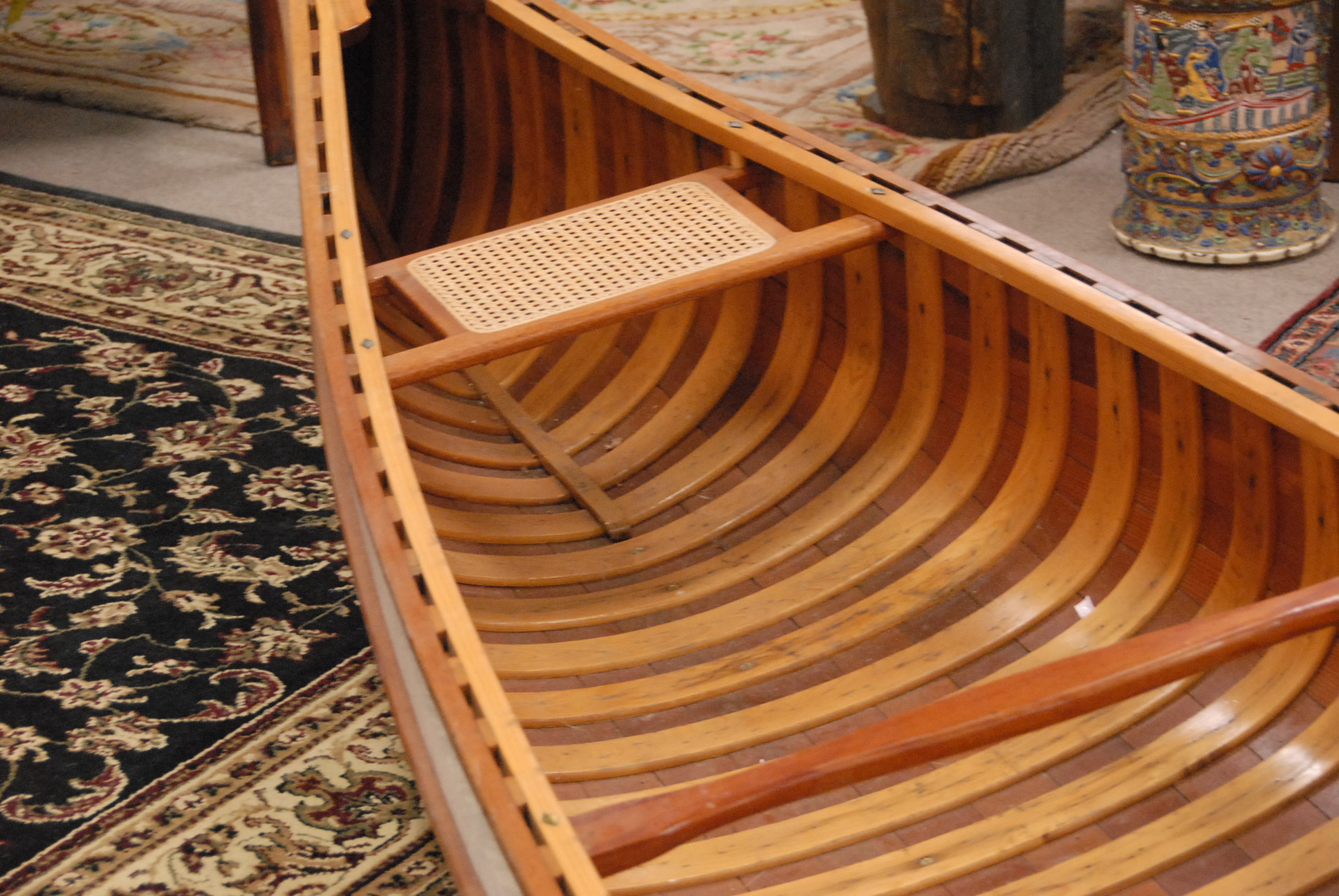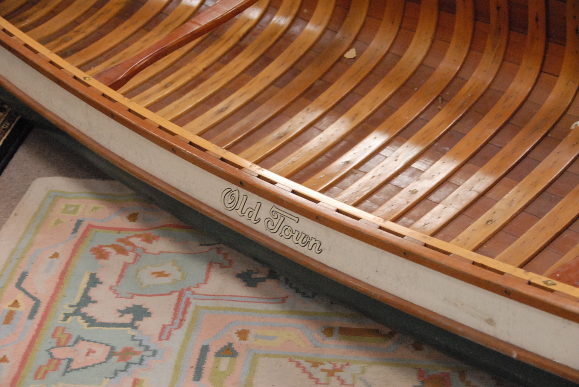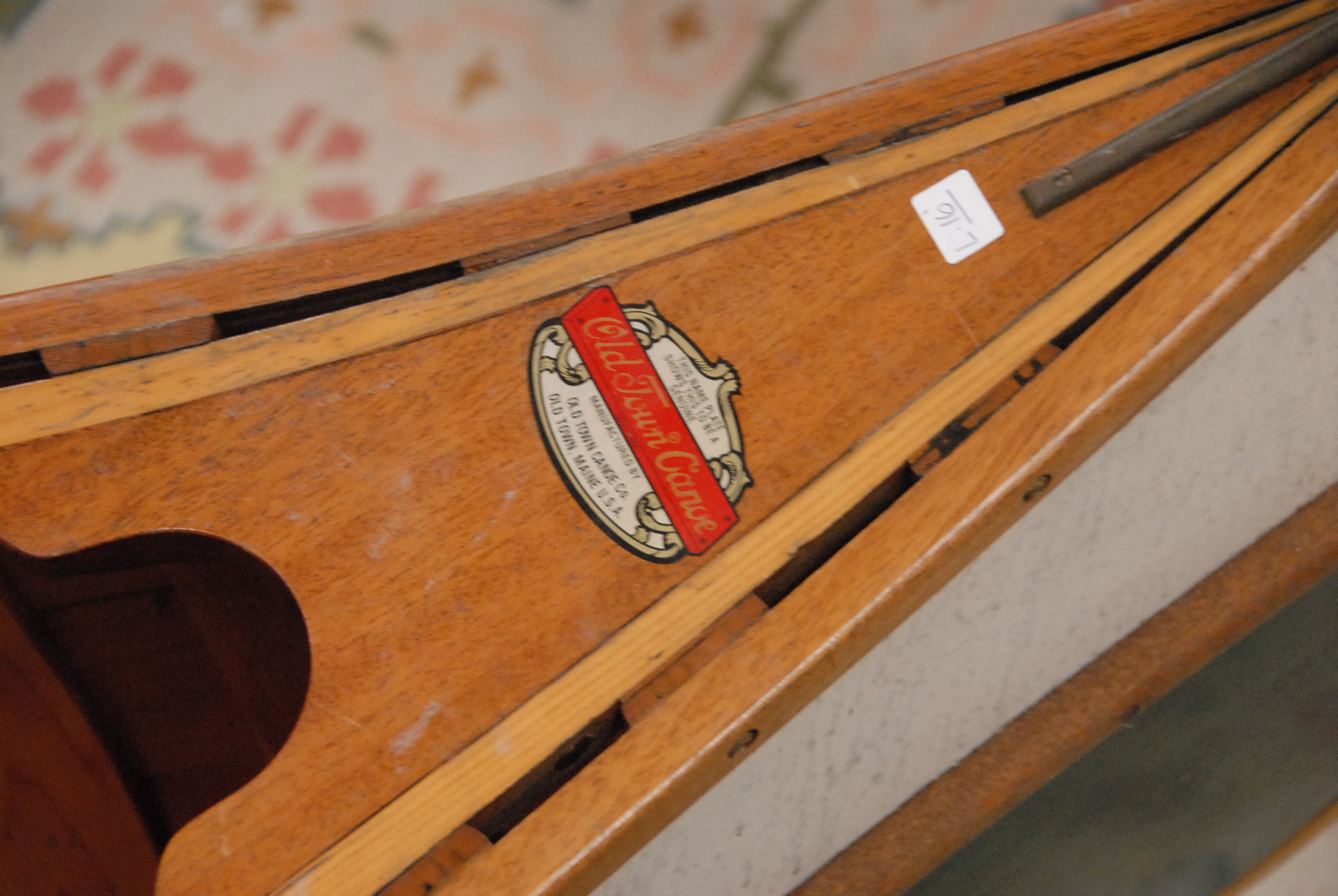 Old Town canoe, 16ft. fiberglass with wood strap interior.