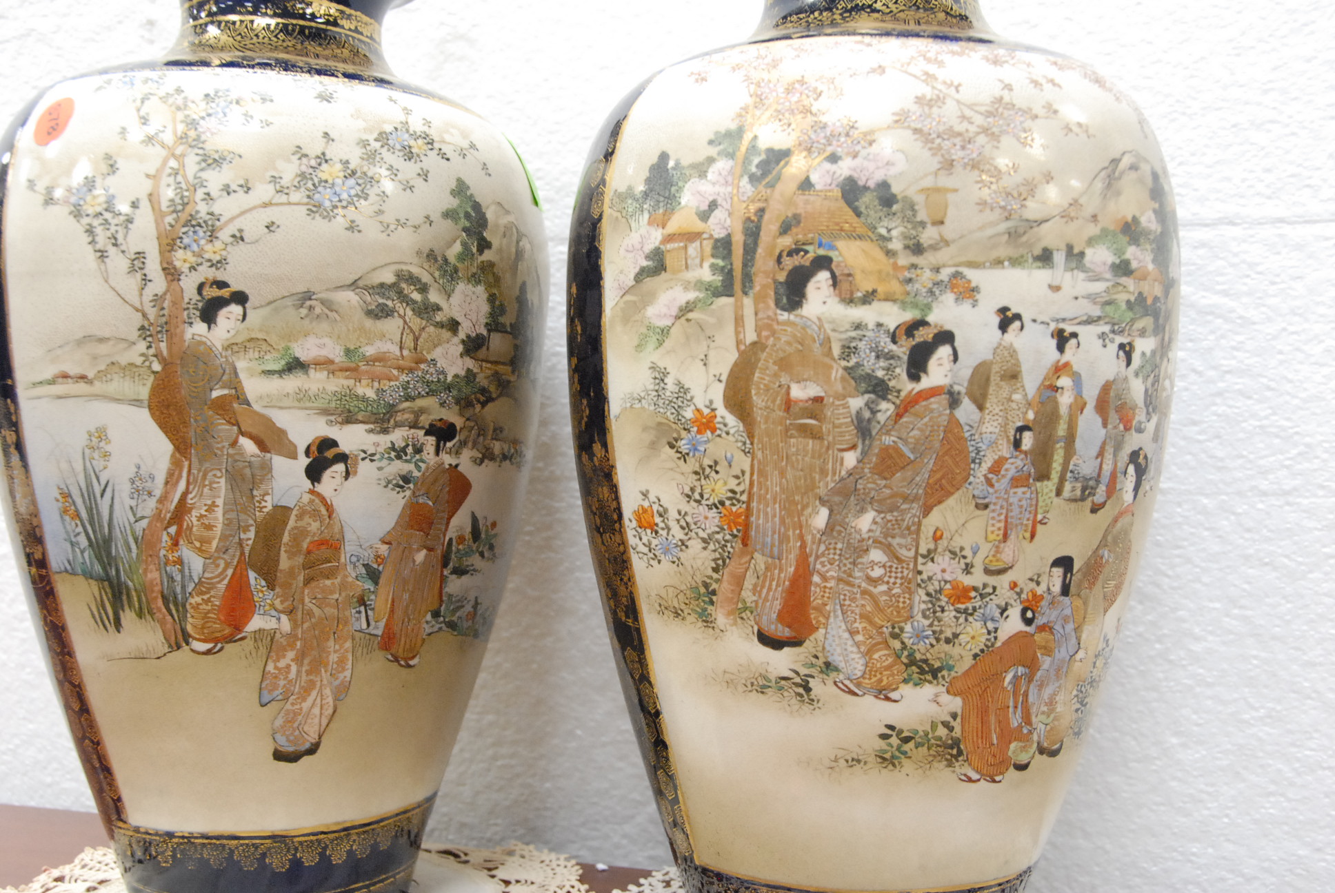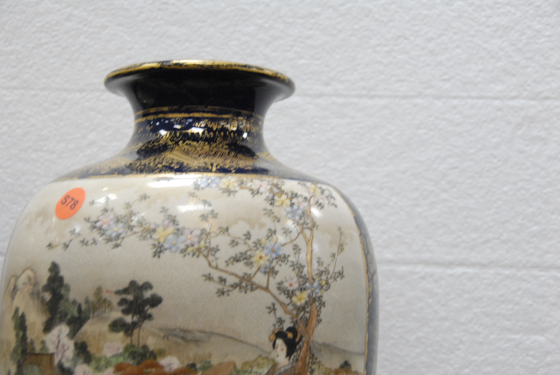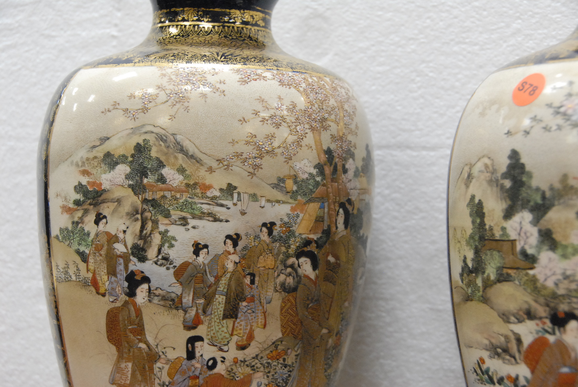 Lot 316: Pair of Satsuma vases with cobalt and gold