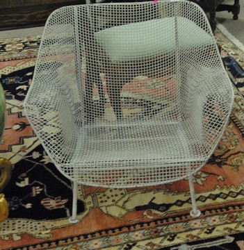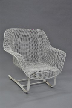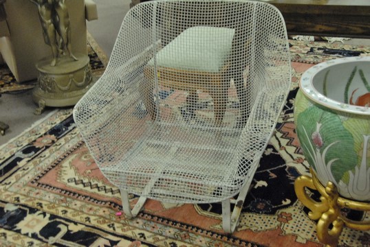 Lot 316: Pair of Woodard Furniture Sculptura Mid-Century modern wire mesh armchairs consisting of a rocker and a lounge chair.
