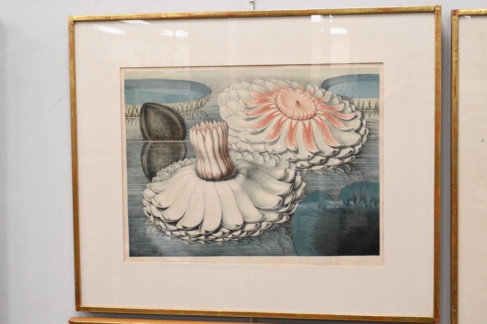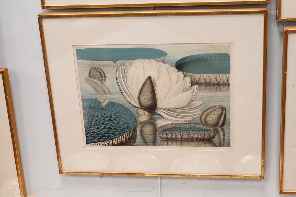 Set of Six John Fisk Allen & William Sharp, Victoria Regia or The Great Water Lily of America, rare complete set of six chromolithographs on woven paper, 19th century, printed by Sharp & Sons, Boston,1854, image size 15″ x 21″.