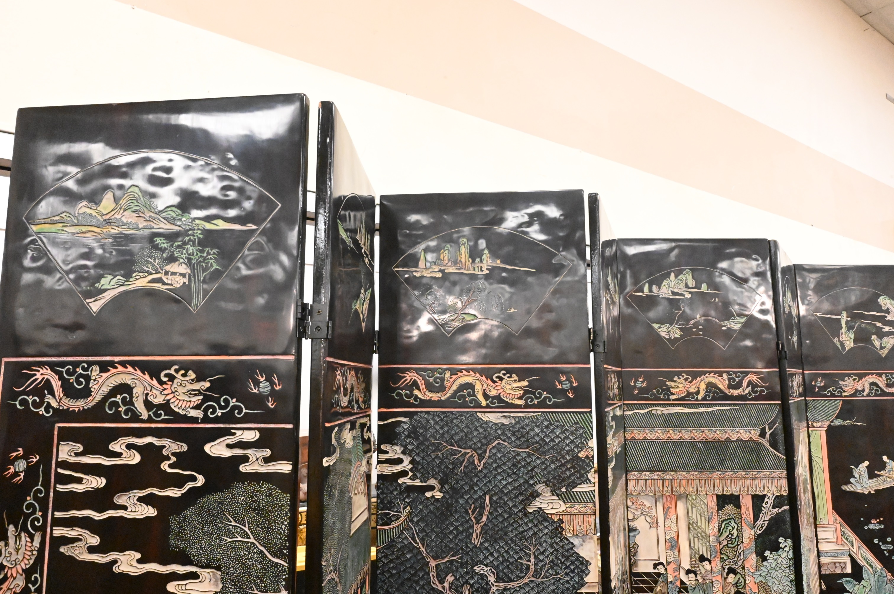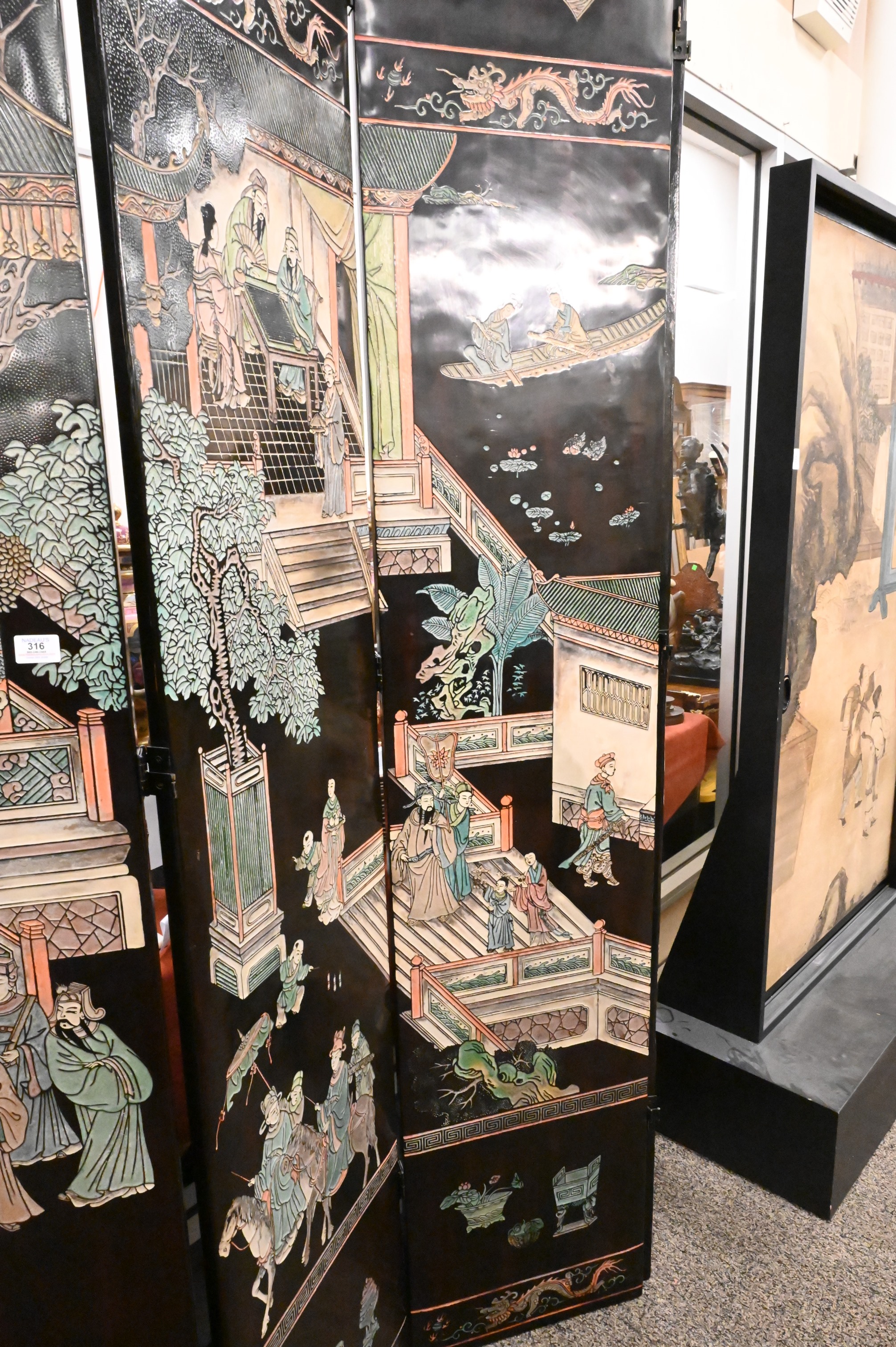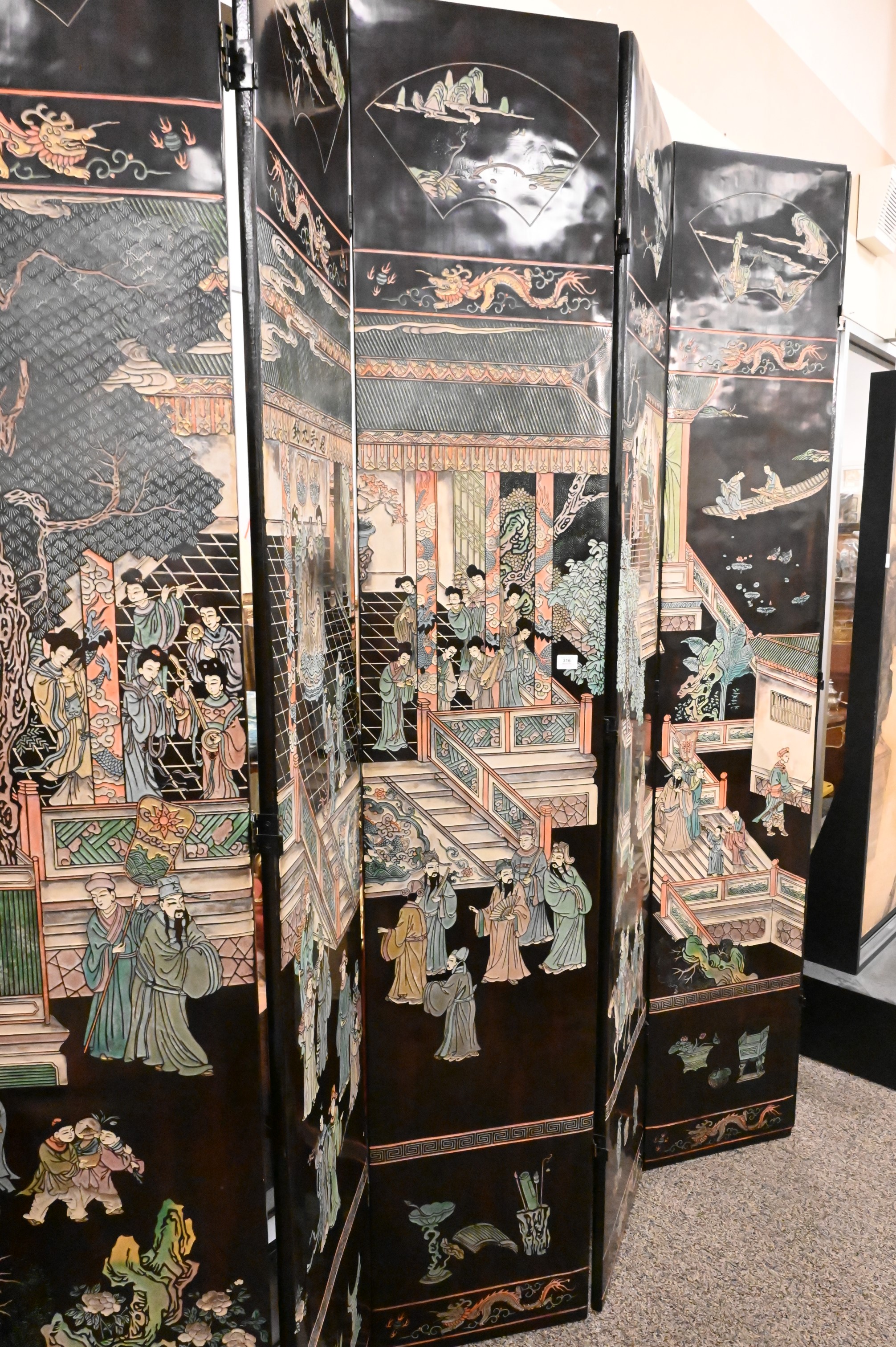 Lot 316: Tall Eight Panel Chinese Figural Screen