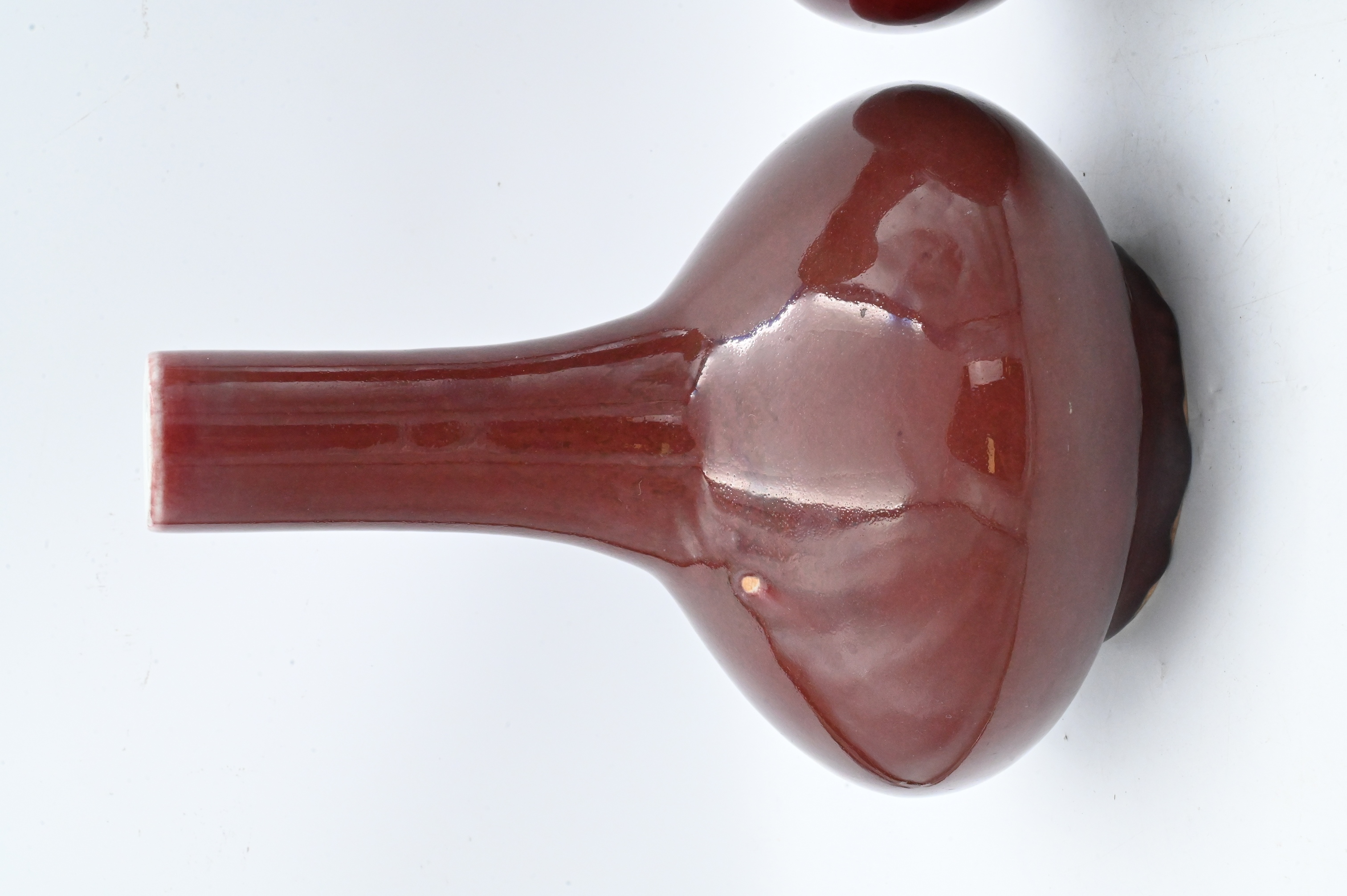 Two Chinese Monochrome Red Bottle Vases (Tianqiuping)
