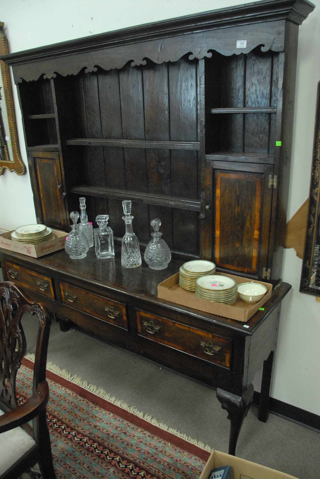 Welsh style cupboard in two parts.ht. 76 in. wd. 68 in. dp. 18 1/2 in.