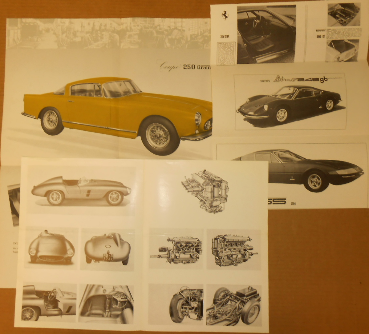 3 Ferrari broc – 500 Mondial, opens to 17 x 11, 365 GTB4, 246GT Chinetti fldr, 250 GT Boano, & 2 1949 repro
