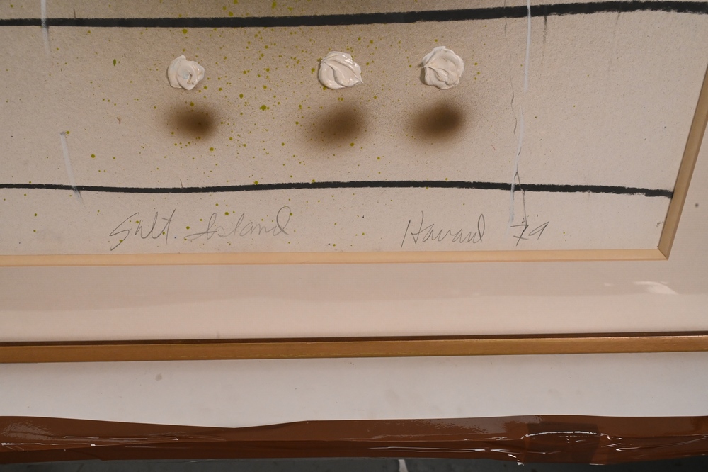 Lot 317: James Harvard (b.1937), Salt Island, 2/23/79, acrylic on paper, pencil signed and titled across bottom edge, 30″ x 20″. Provenance:…
