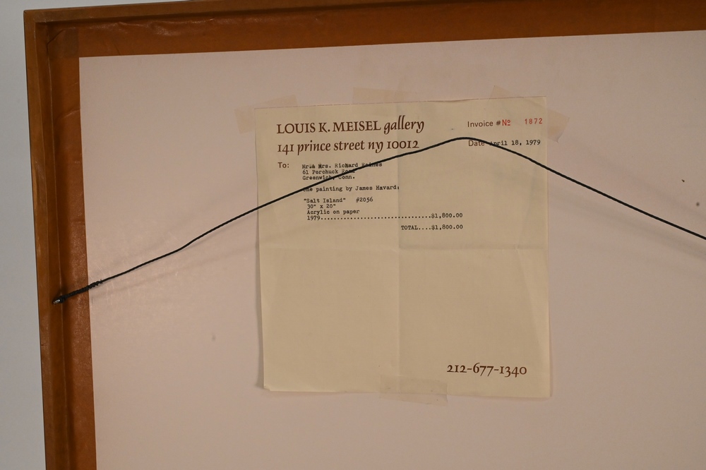 James Harvard (b.1937), Salt Island, 2/23/79, acrylic on paper, pencil signed and titled across bottom edge, 30″ x 20″. Provenance: Original Louis K. Meisel Gallery receipt, April 18, 1979.