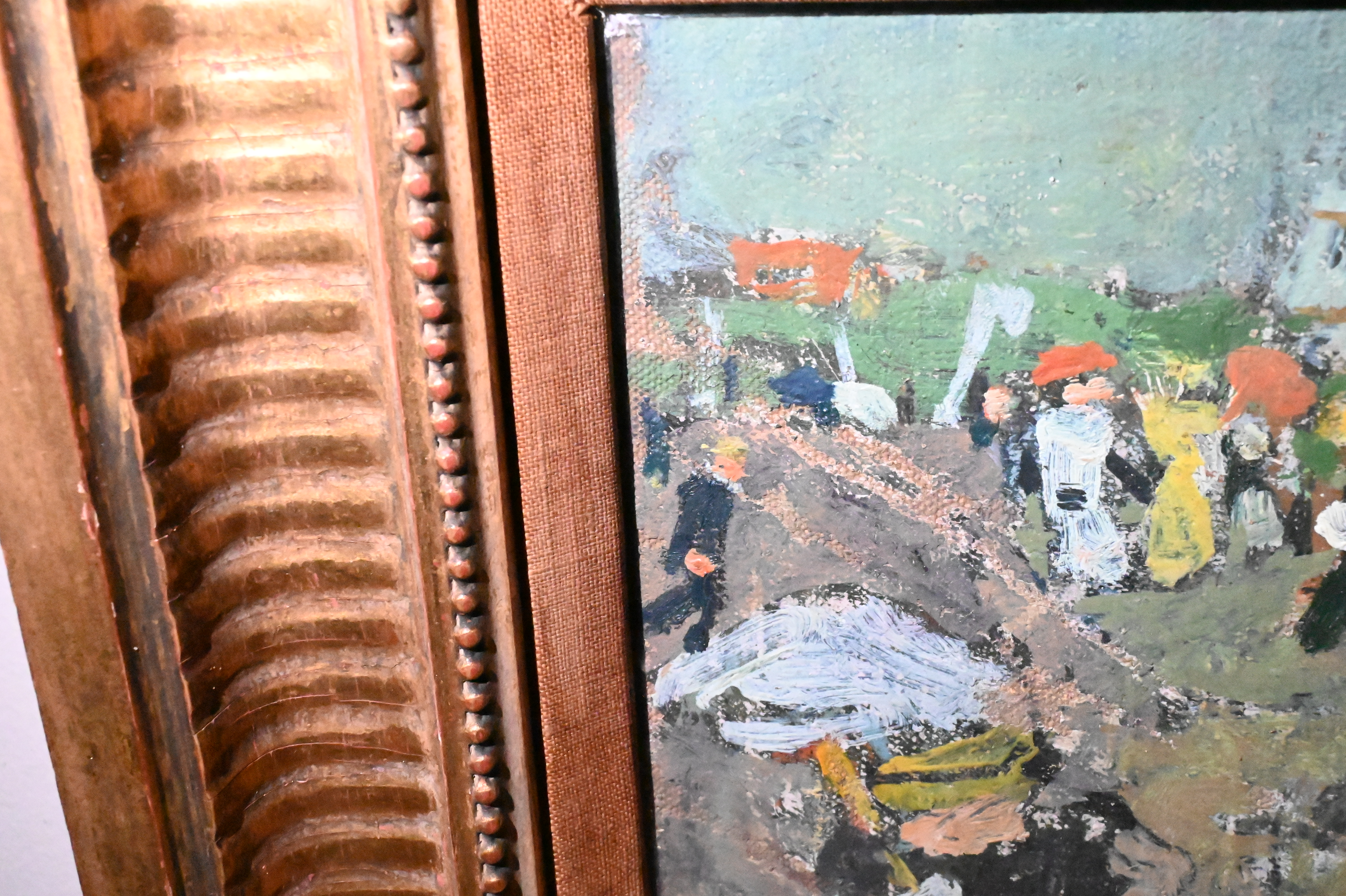 Framed under glass. Some surface grime. Artist left some exposed canvas. Fair condition