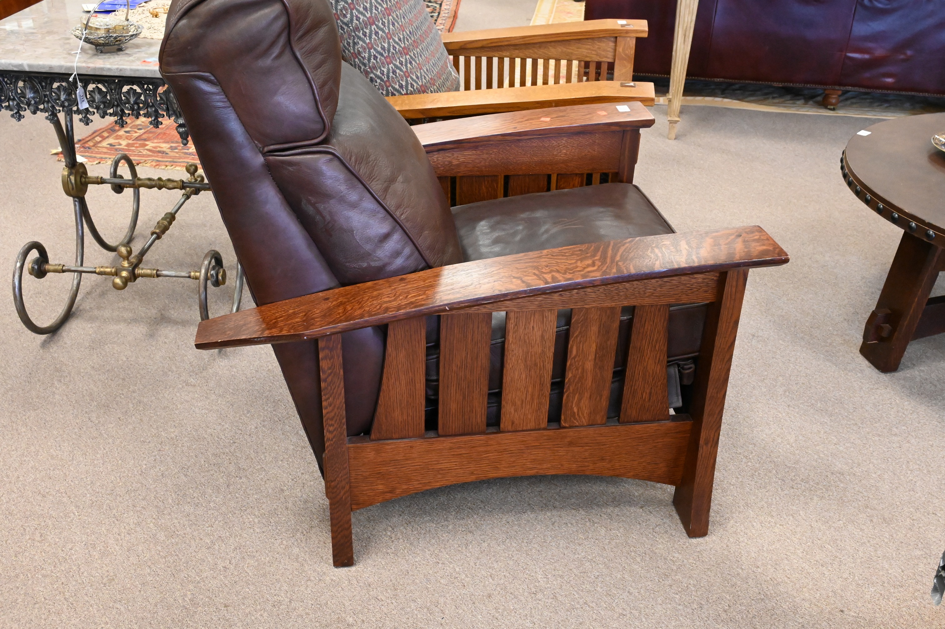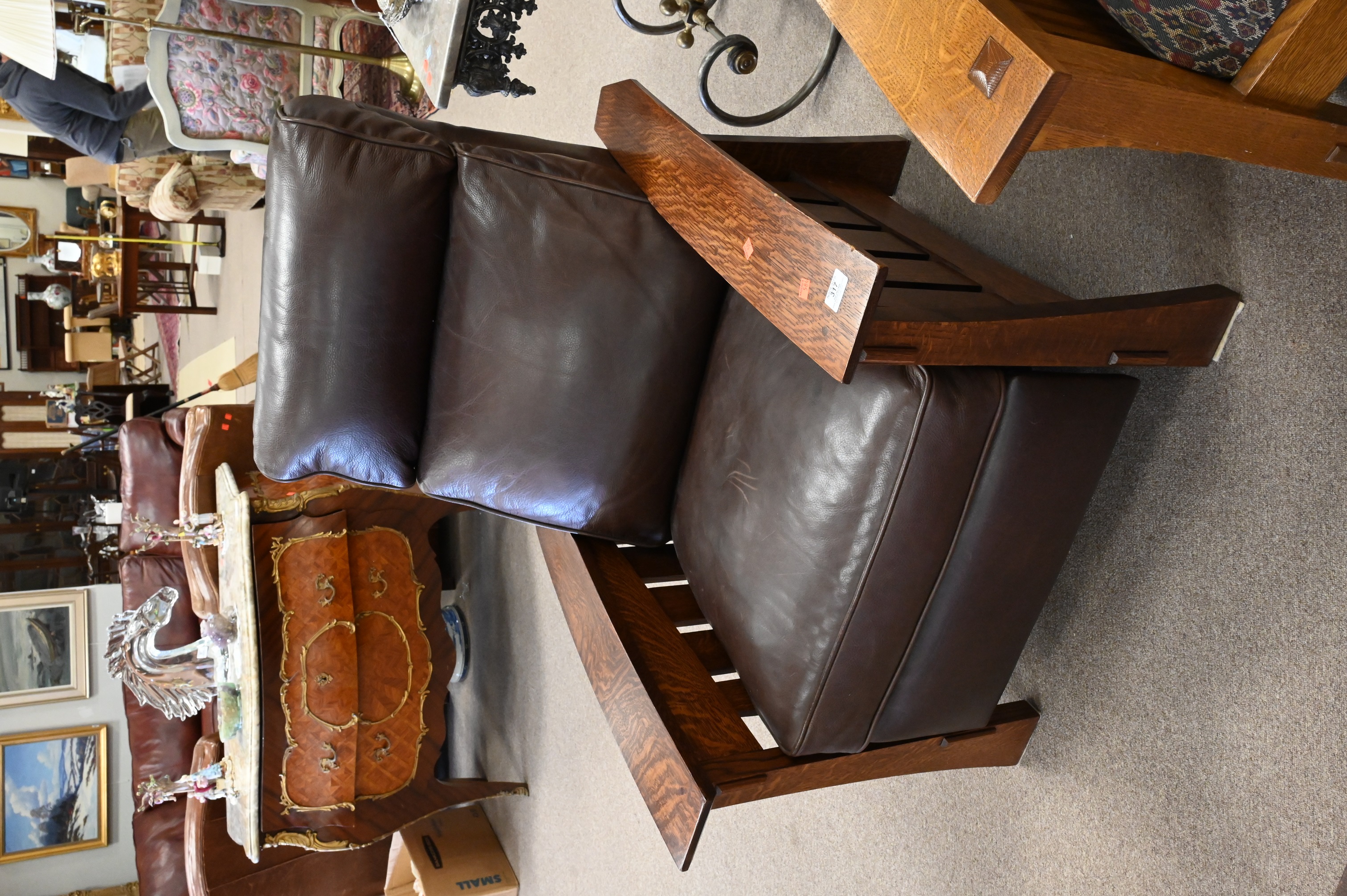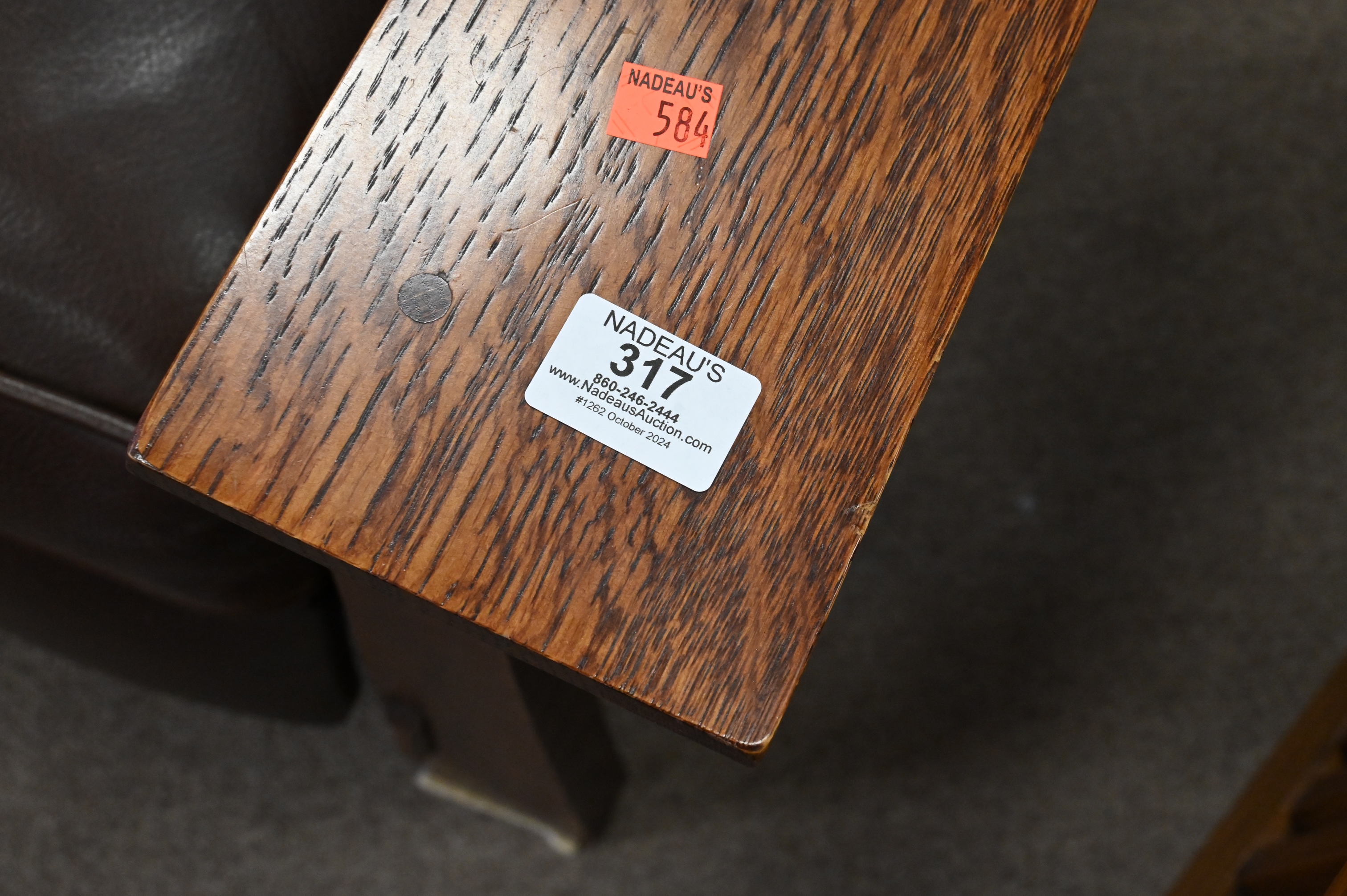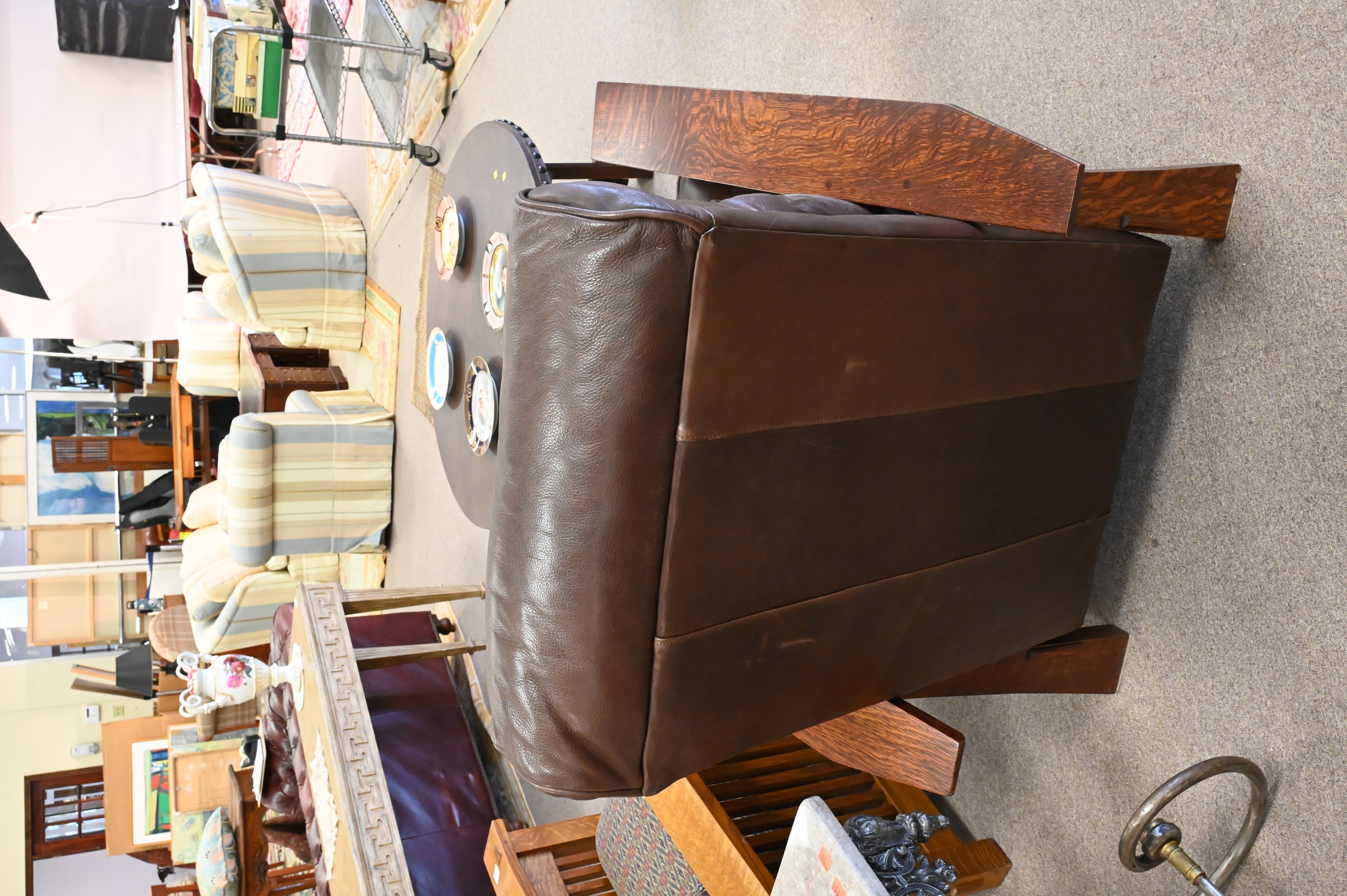 Lot 317: Mission Oak Style Reclining Chair having Brown Leather Upholstery