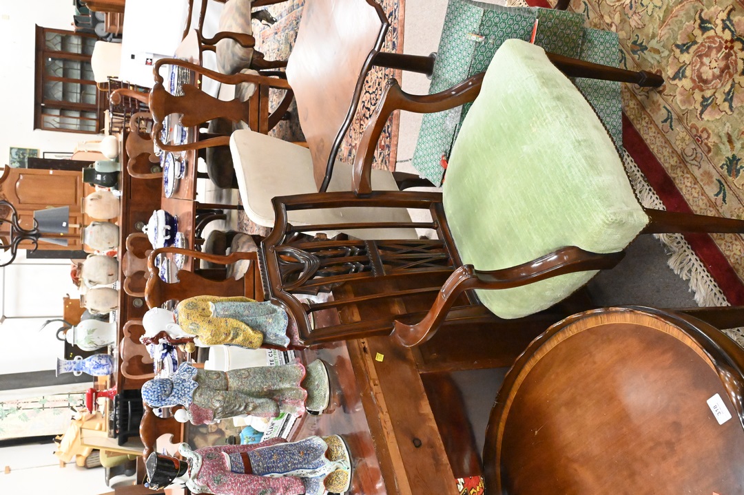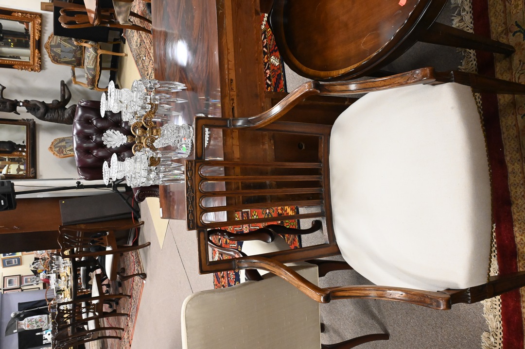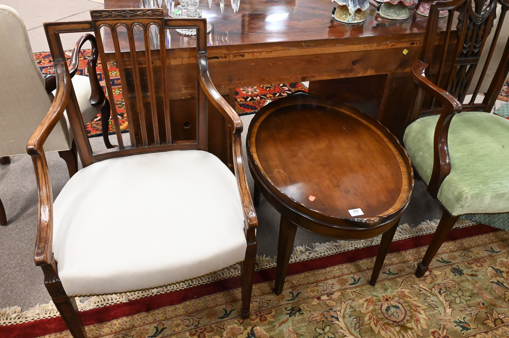 Four Piece Lot, to include a pair of Federal Style Mahogany Armchairs, a George III style trap top stand, table height 19 inches, along with a Hickory Chair Company drop leaf table.