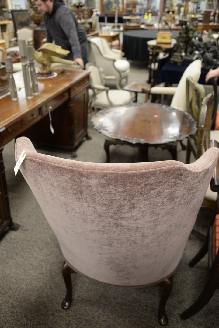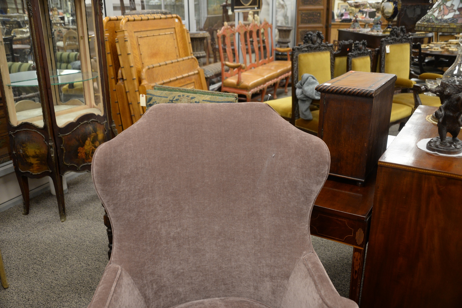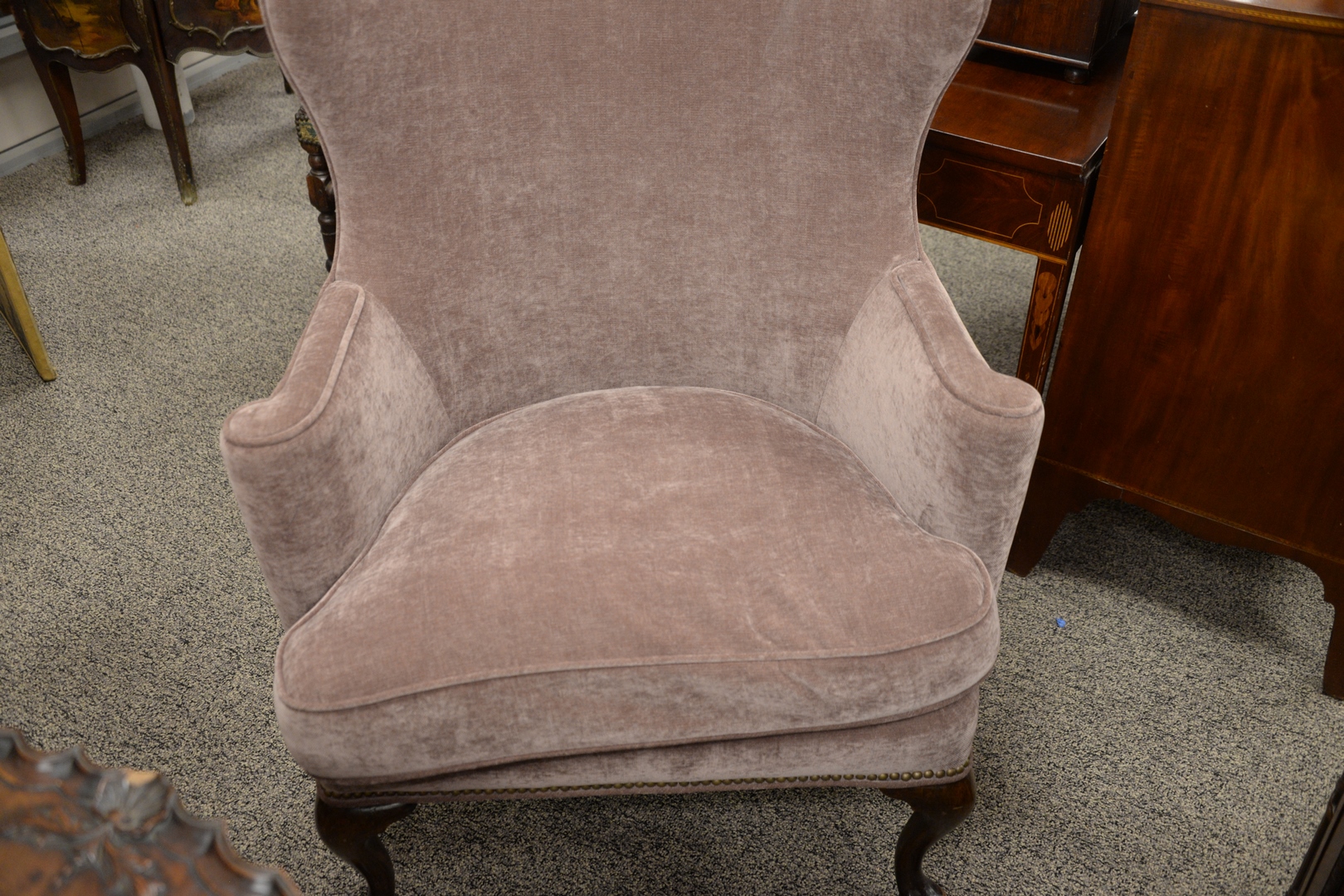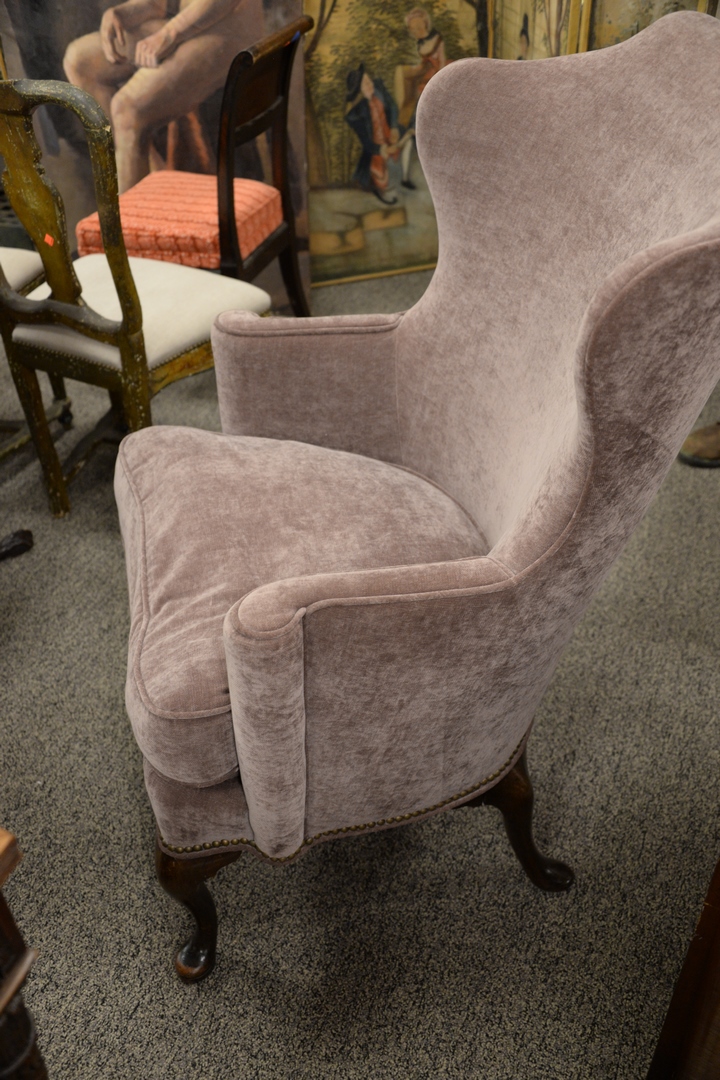 Georgian Upholstered Wing Chair, height 43 inches, width 30 1/2 inches.